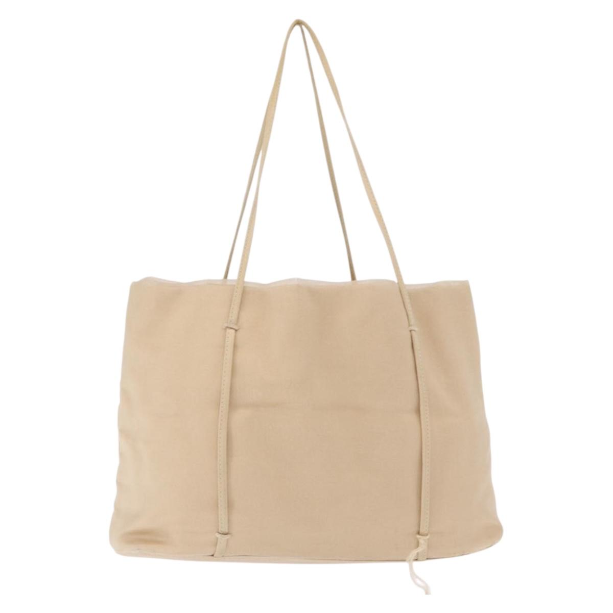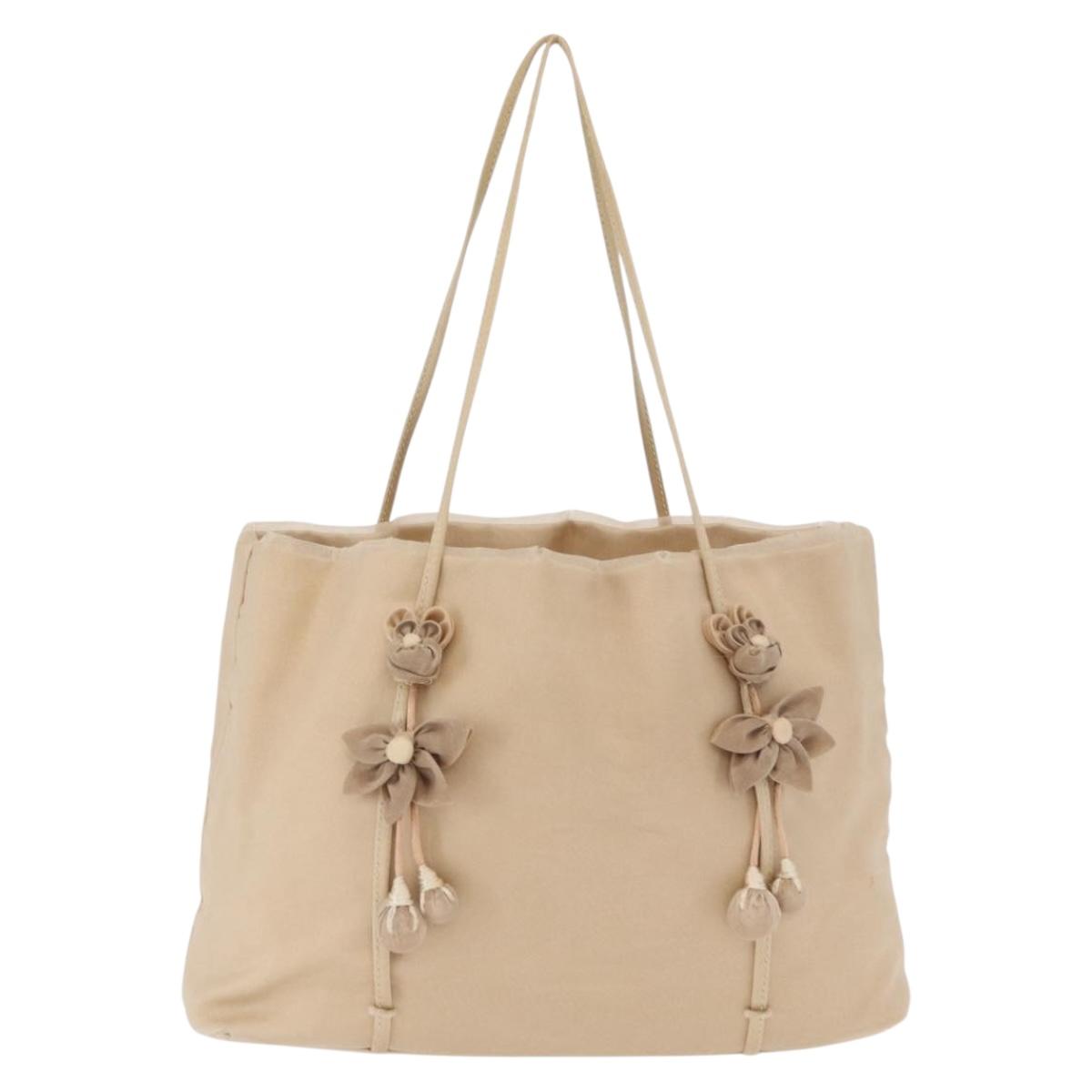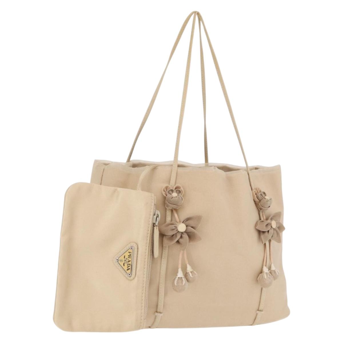 PRADA Hand Bag Satin Beige Auth 166753