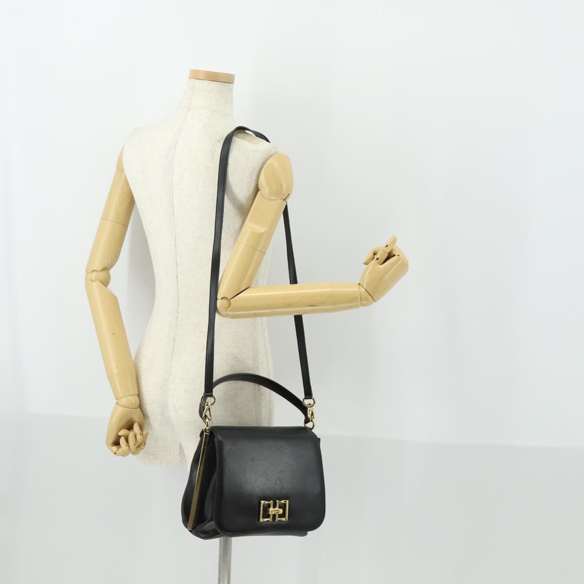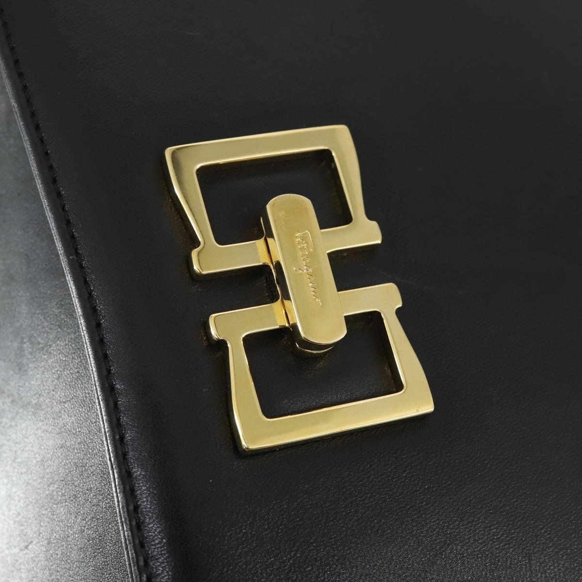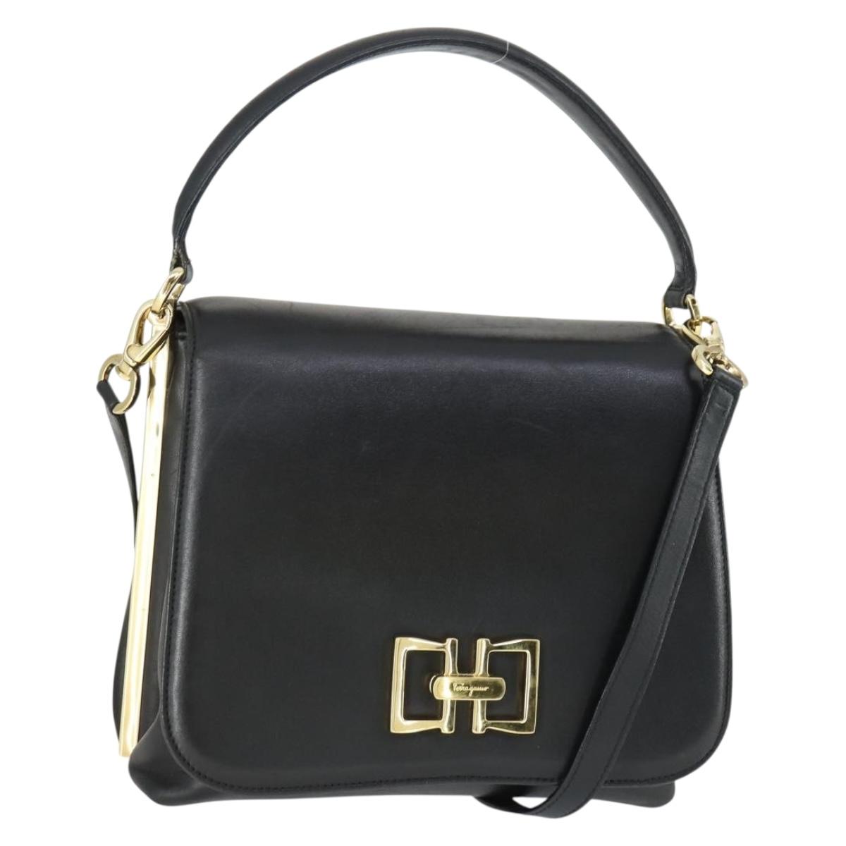 Salvatore Ferragamo Hand Bag Leather 2way Black Gold Auth 159828
