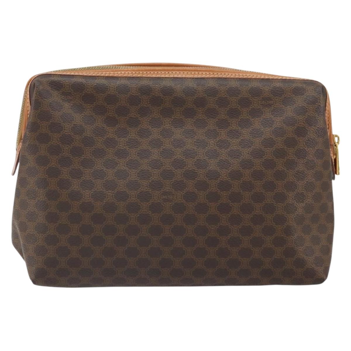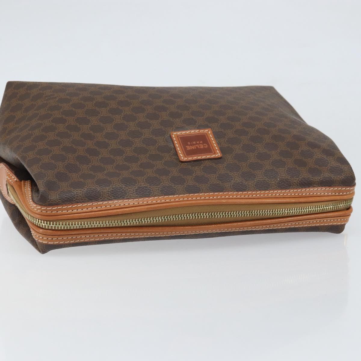 CELINE Macadam Canvas Clutch Bag PVC Brown Gold Auth 170470