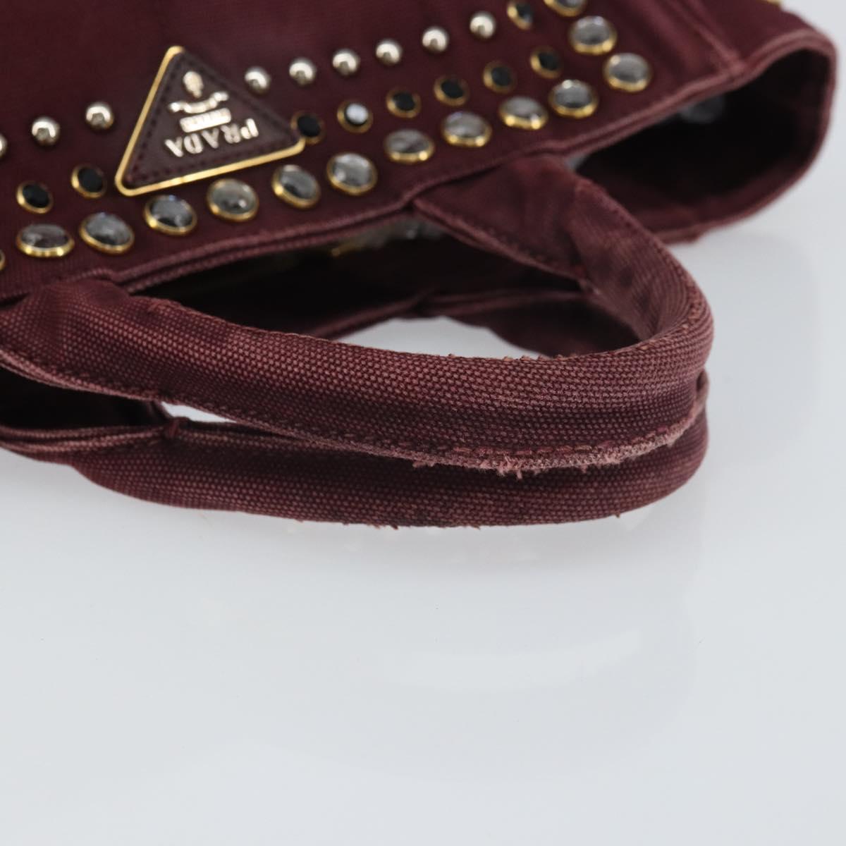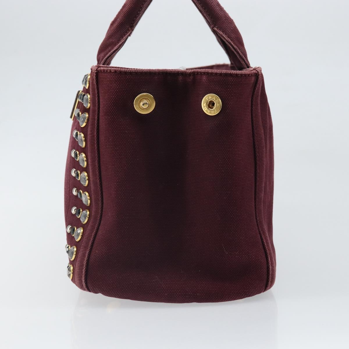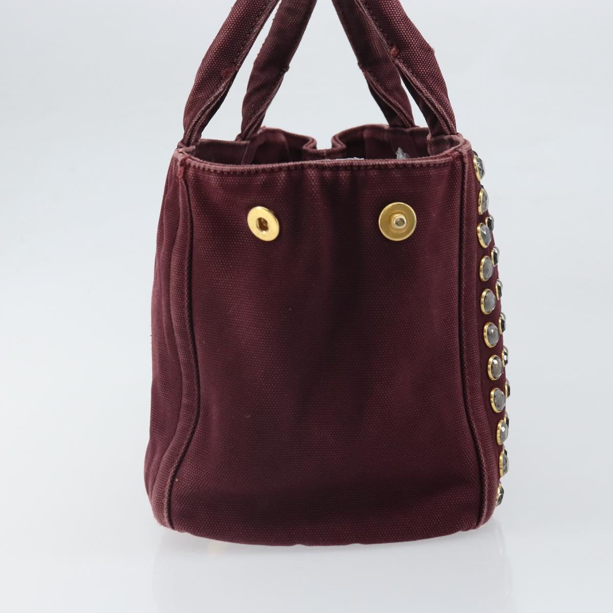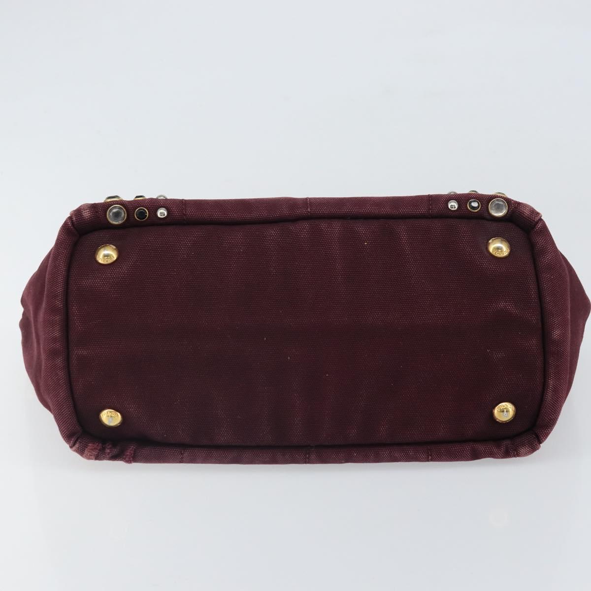 PRADA Canapa Mini Hand Bag Canvas Bordeaux Gold Auth 169015