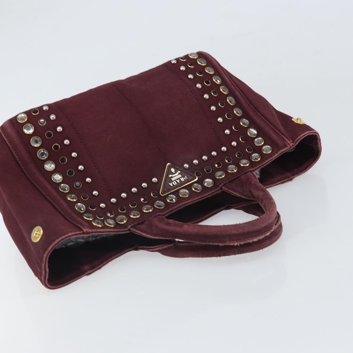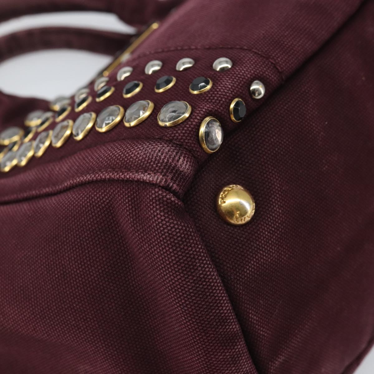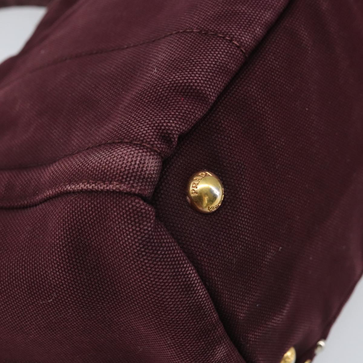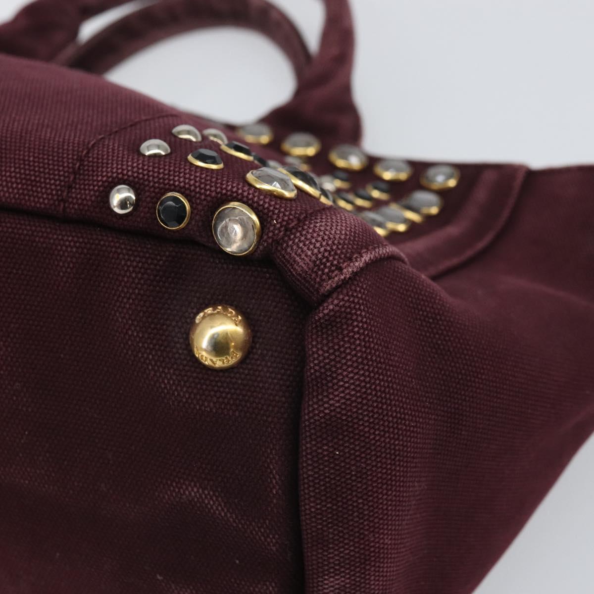 PRADA Canapa Mini Hand Bag Canvas Bordeaux Gold Auth 169015