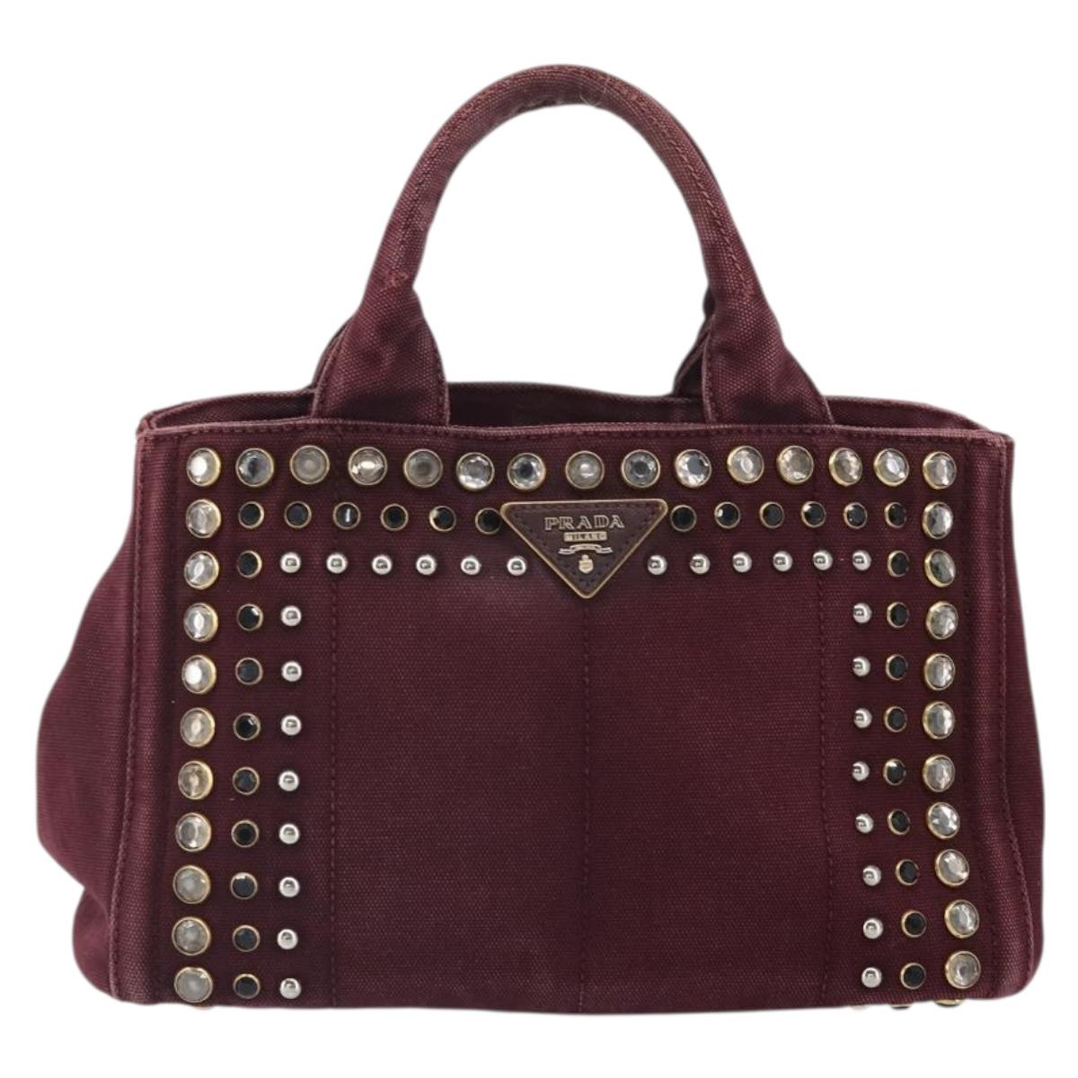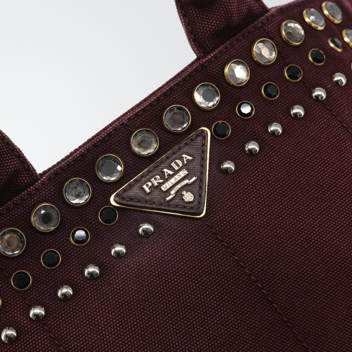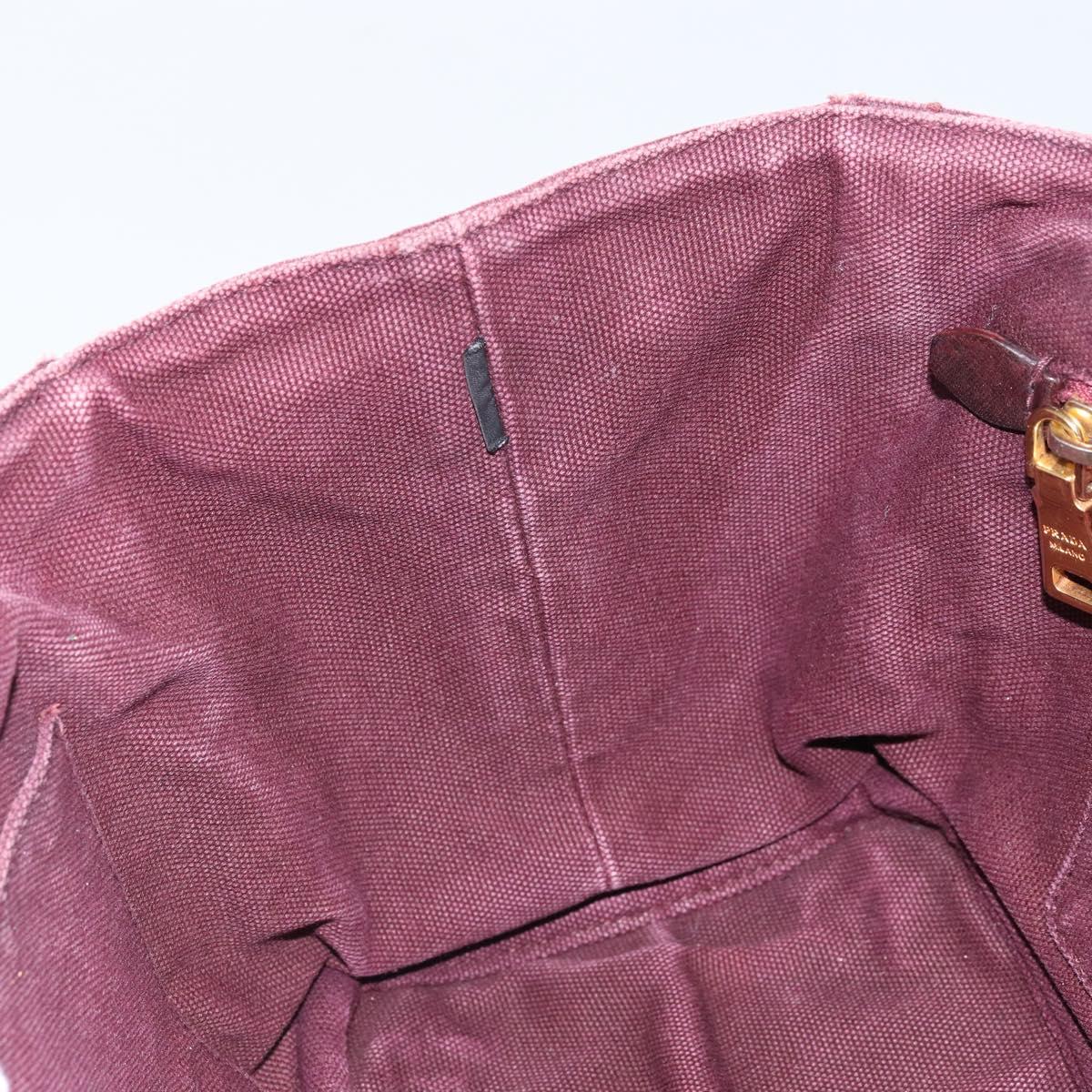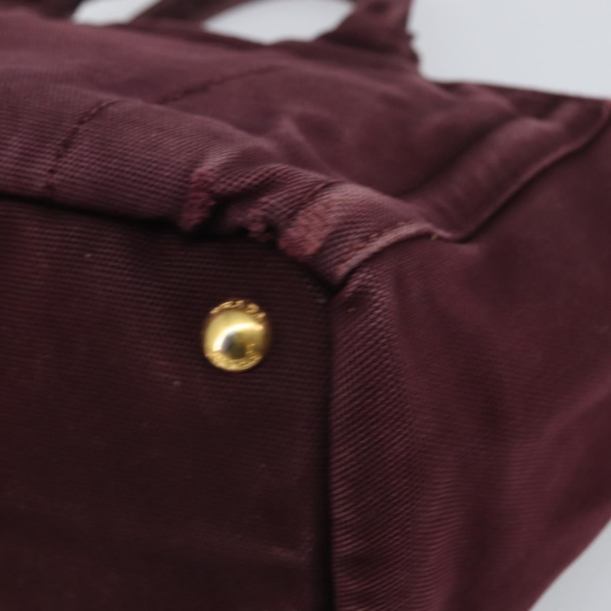 PRADA Canapa Mini Hand Bag Canvas Bordeaux Gold Auth 169015