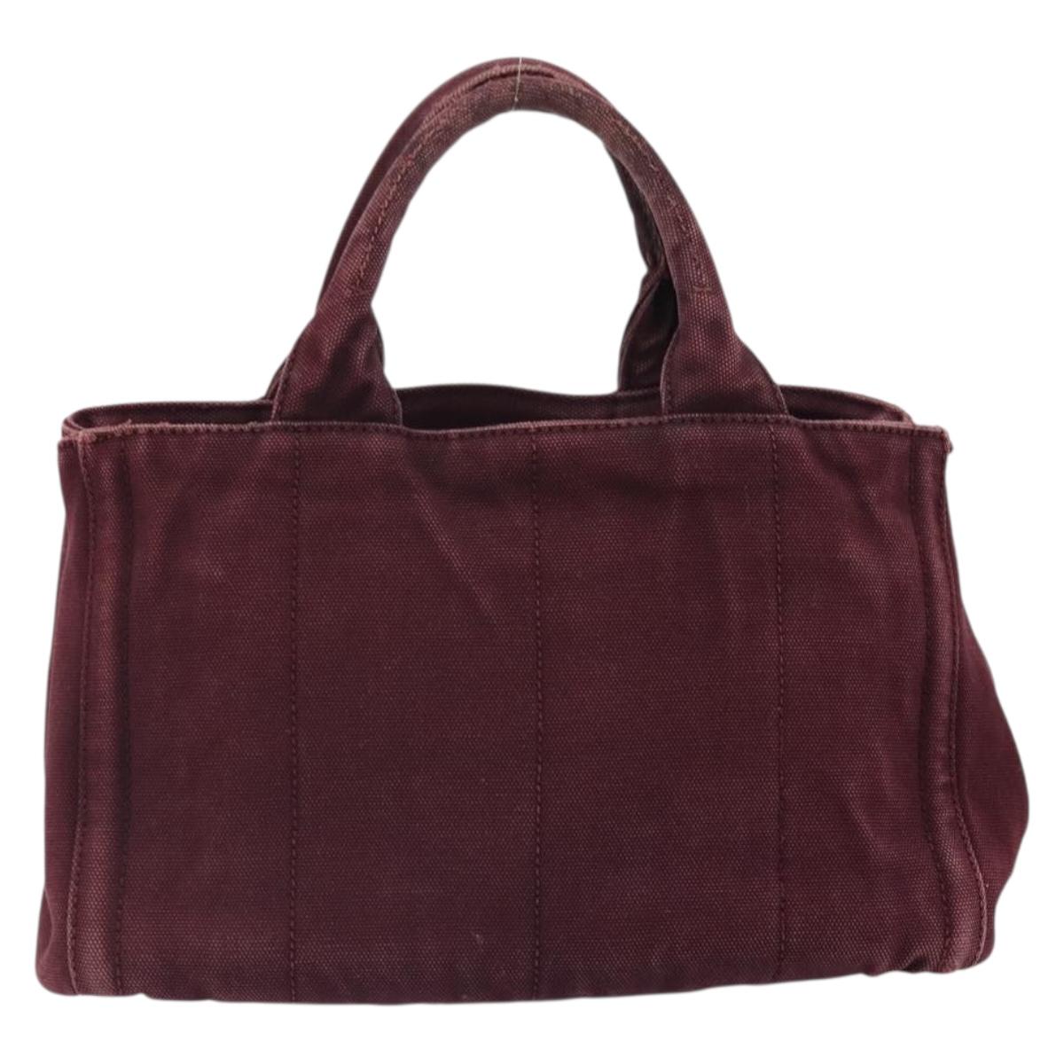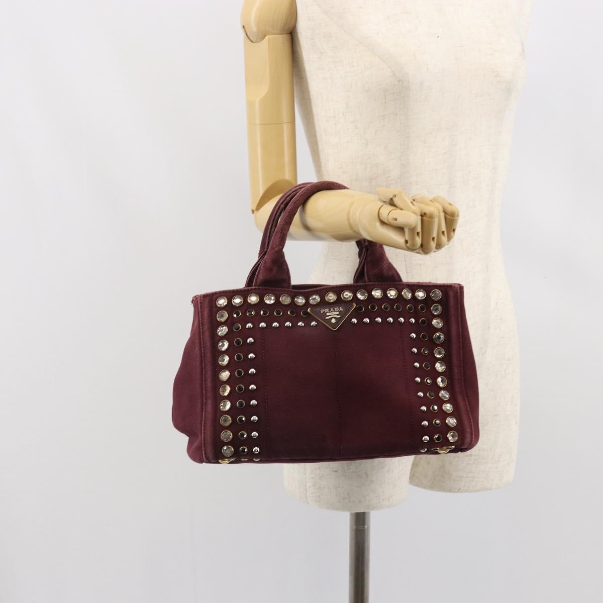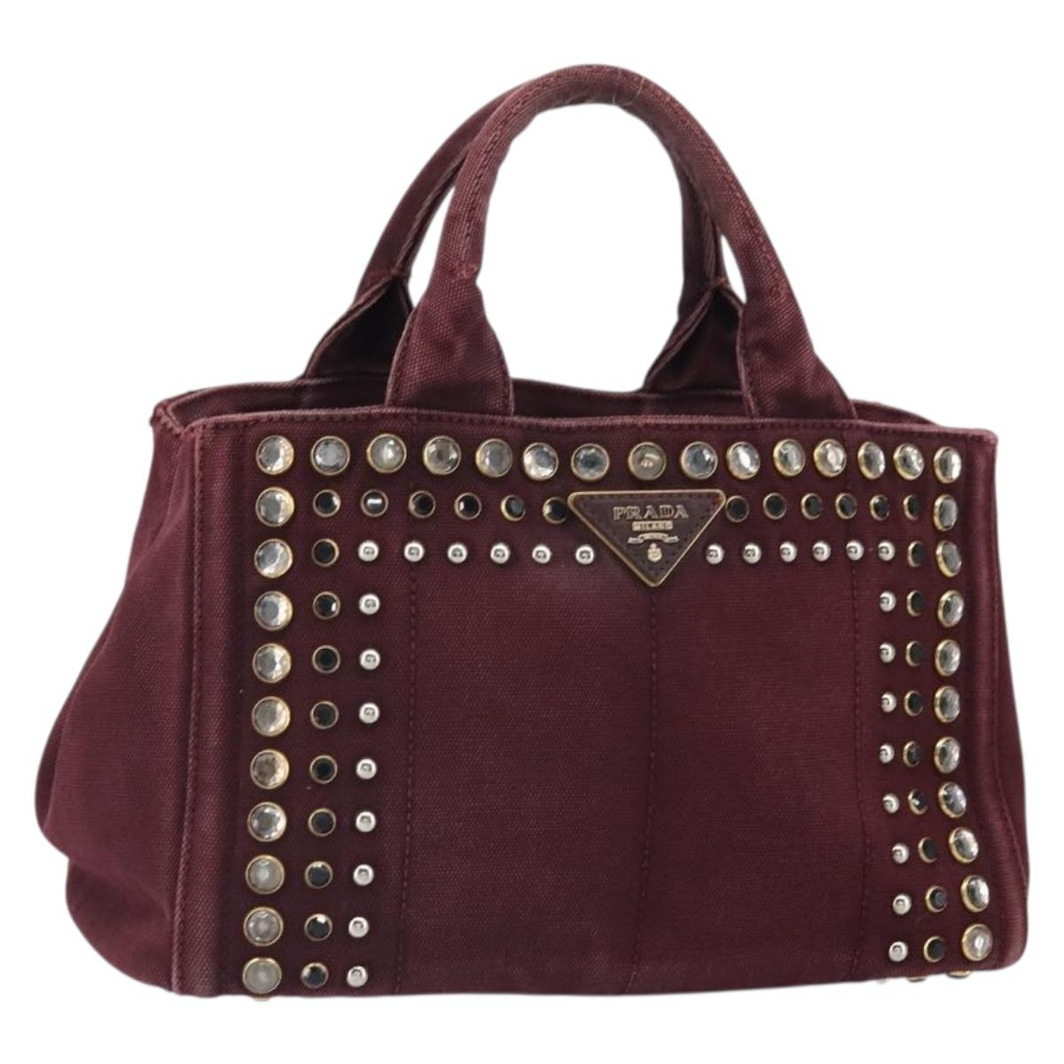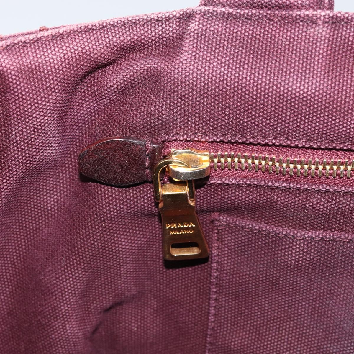 PRADA Canapa Mini Hand Bag Canvas Bordeaux Gold Auth 169015