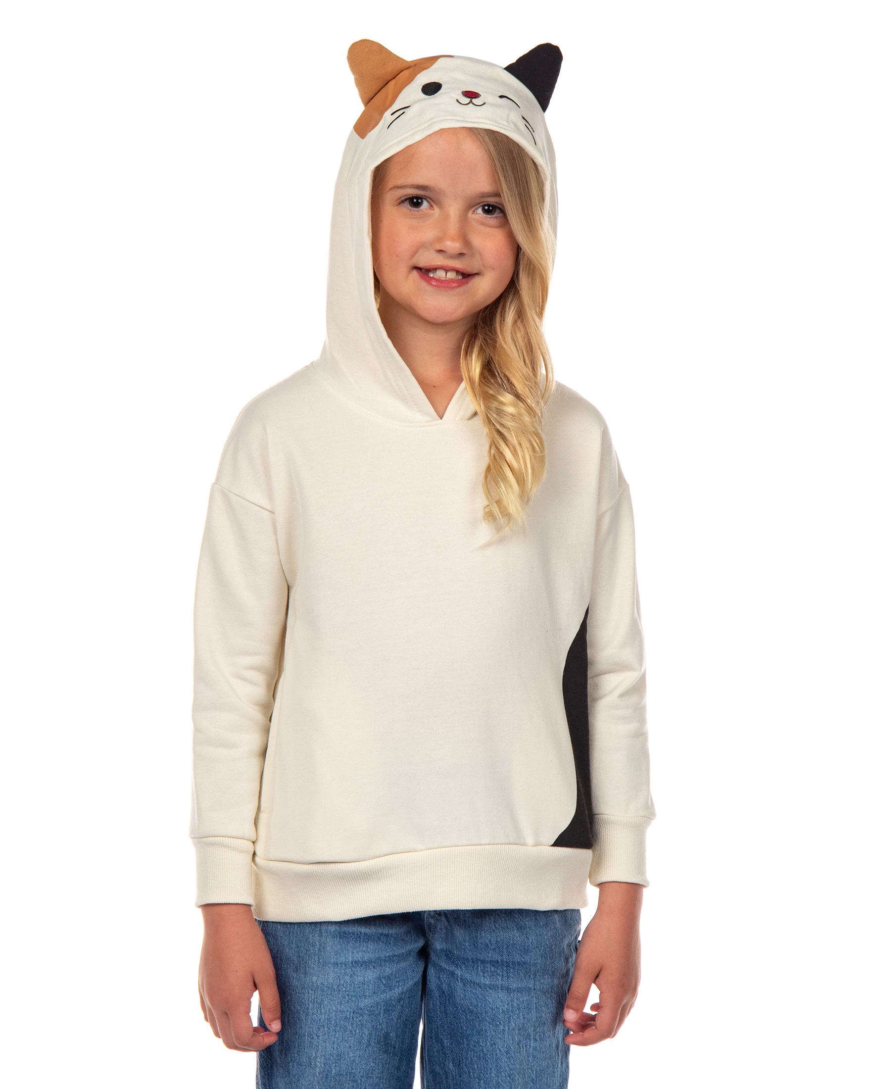 Let her bring her favorite Squishmallow buddy everywhere with this Cam the Cat hoodie – a playful blend of cozy comfort and adorable design. The 3D plush ears, embroidered face, and signature black spot bring Cam’s charm to life, turning an everyday sweatshirt into her new go-to favorite. Crafted from a soft cotton/polyester blend, it’s made to keep her warm and comfortable through every adventure, from school days to movie nights.