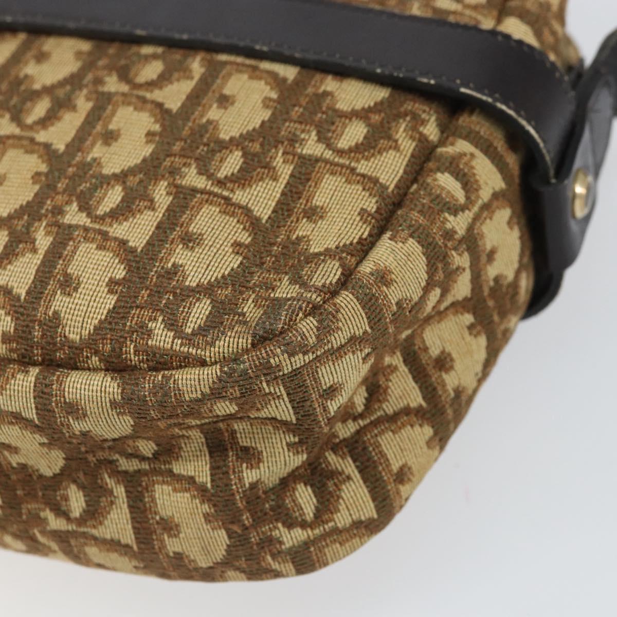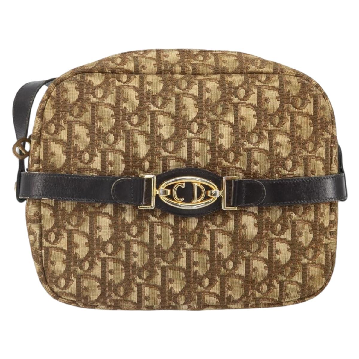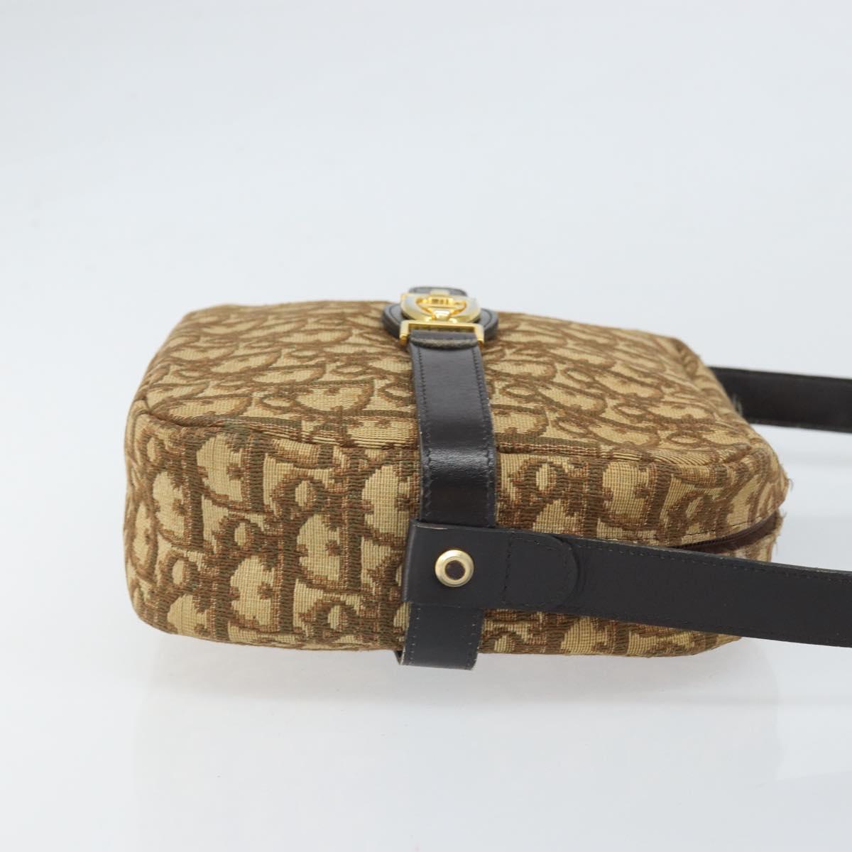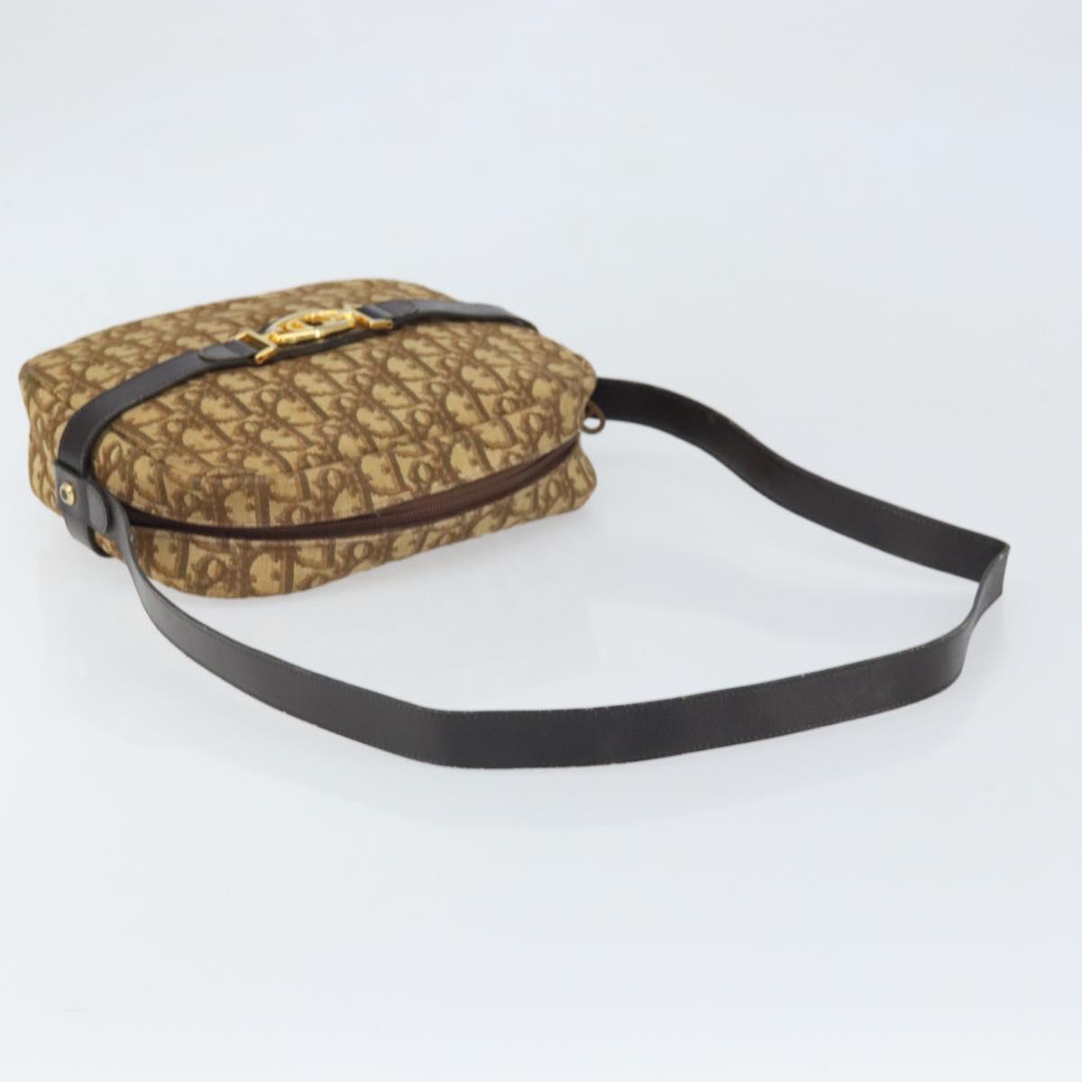 Christian Dior Trotter Canvas Shoulder Bag Brown Gold Auth 171073