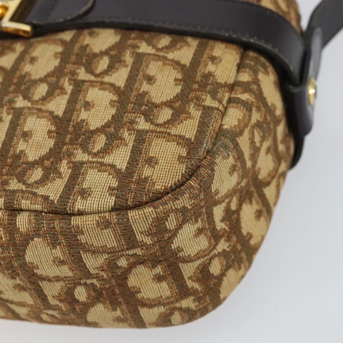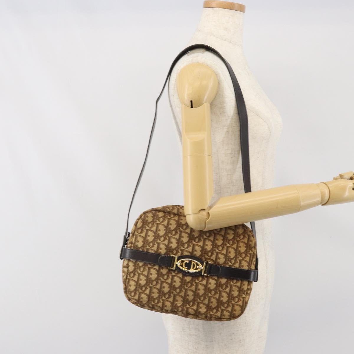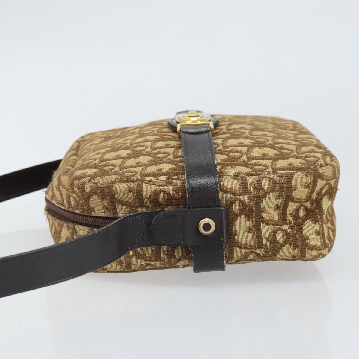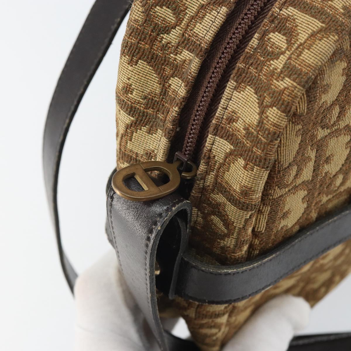 Christian Dior Trotter Canvas Shoulder Bag Brown Gold Auth 171073