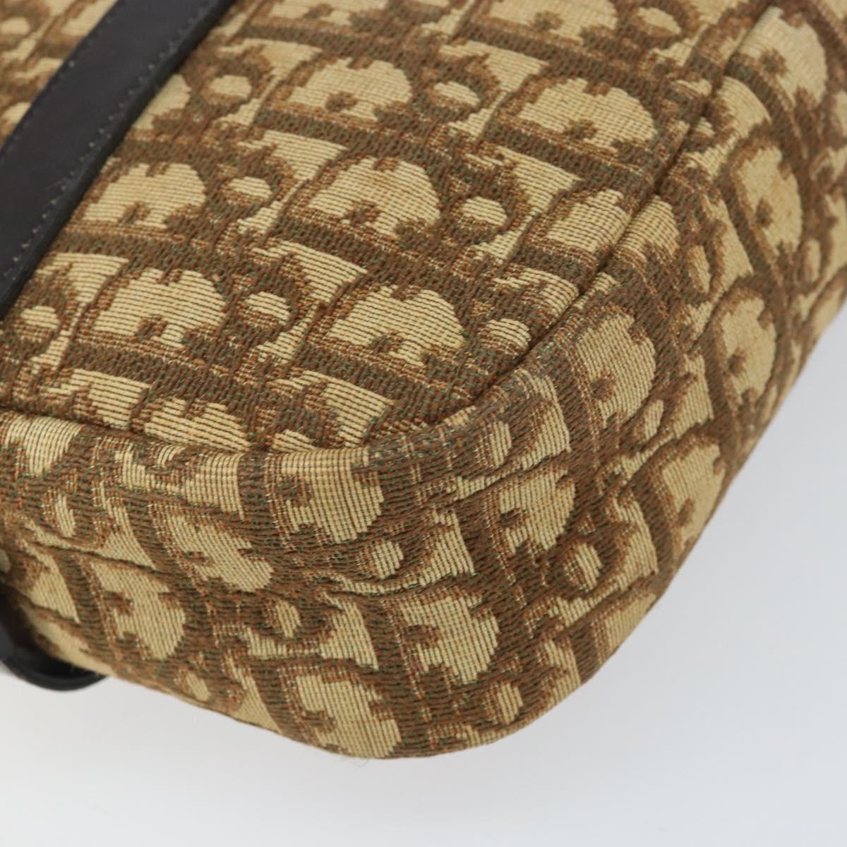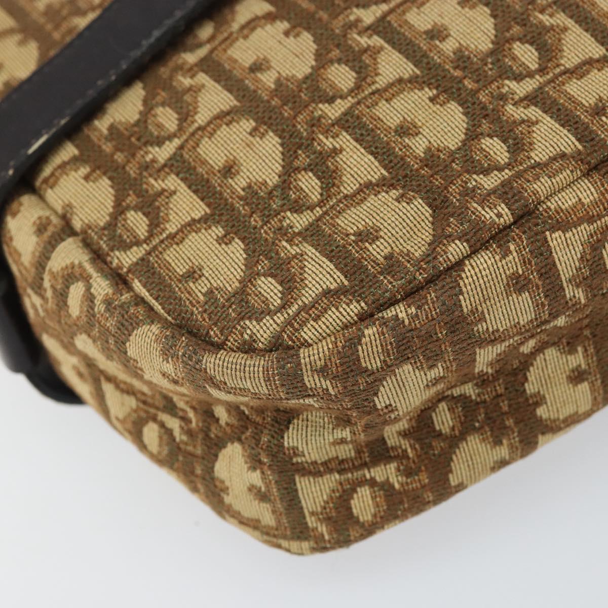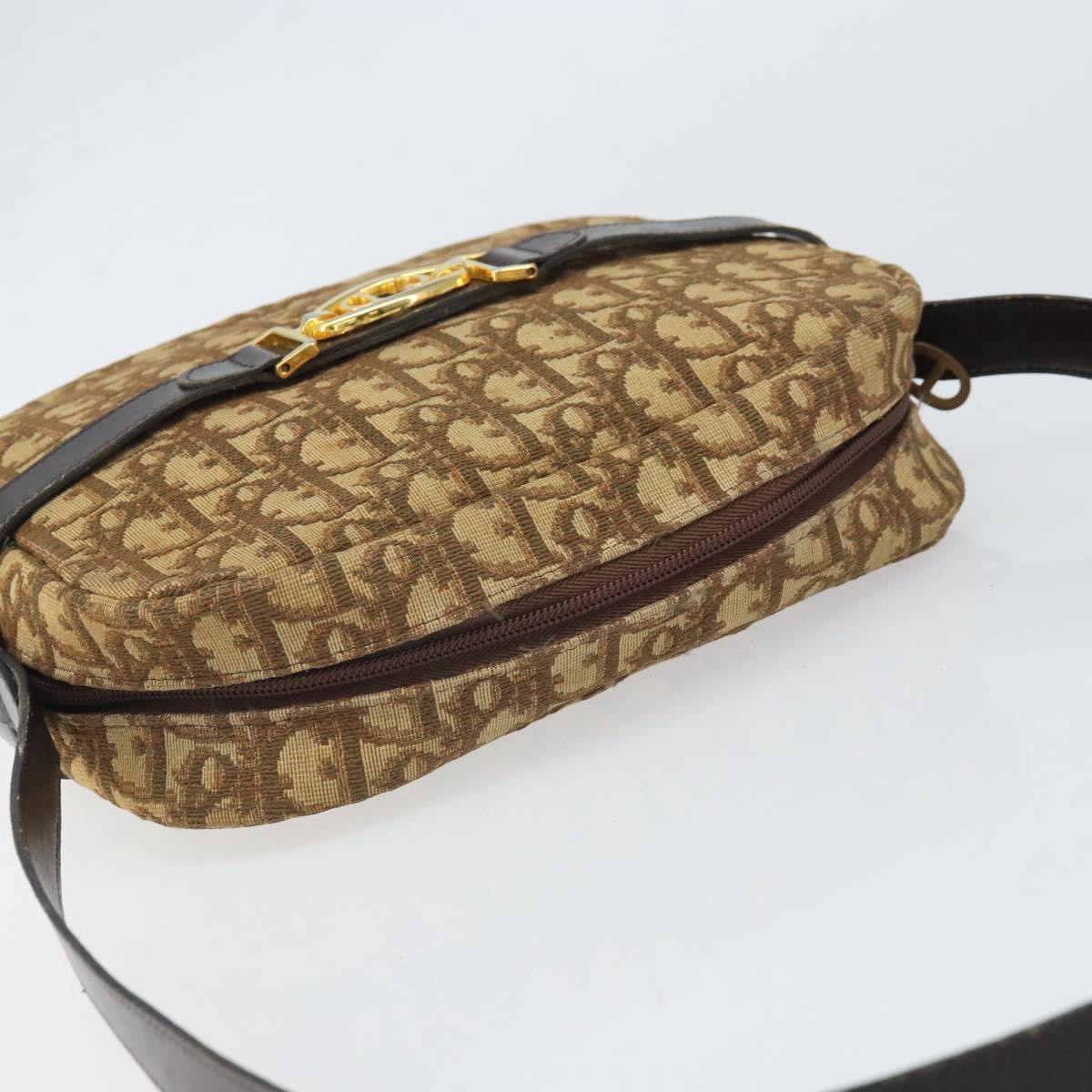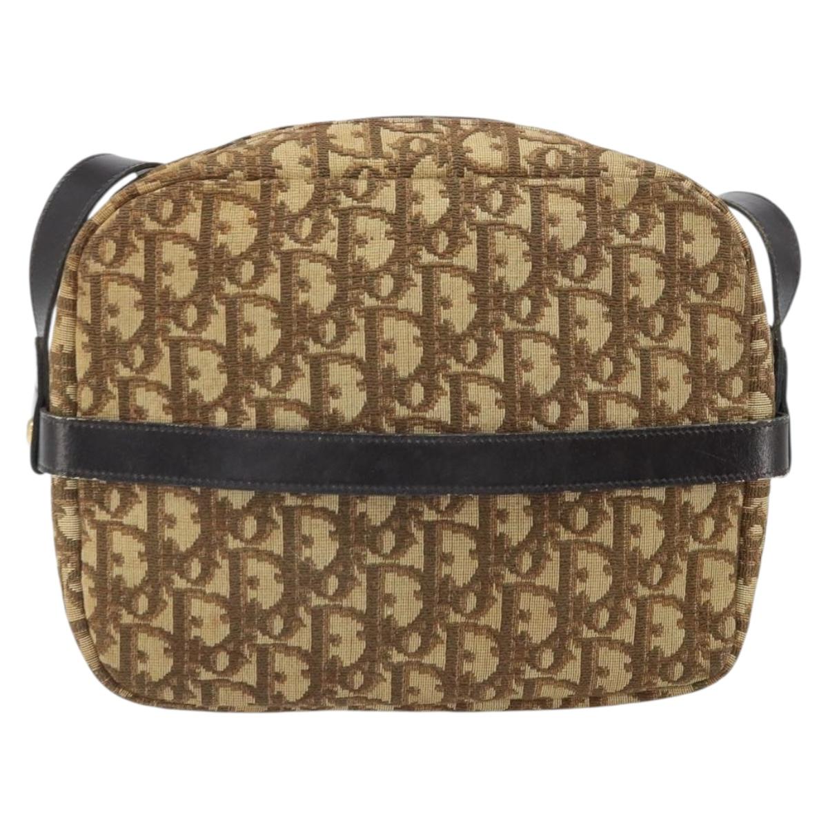 Christian Dior Trotter Canvas Shoulder Bag Brown Gold Auth 171073