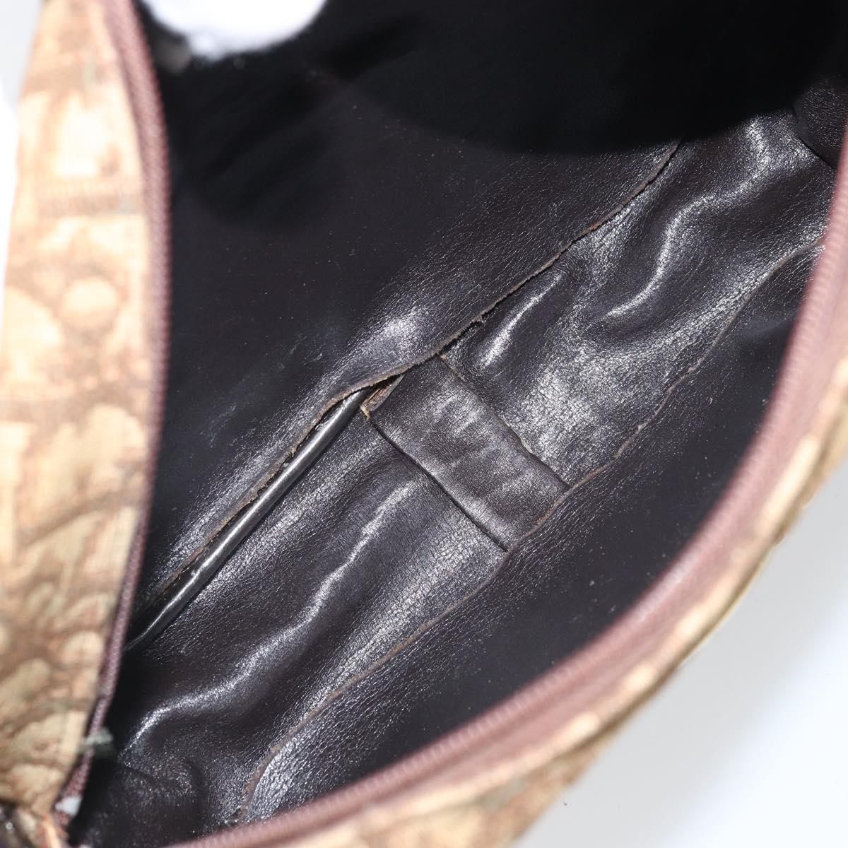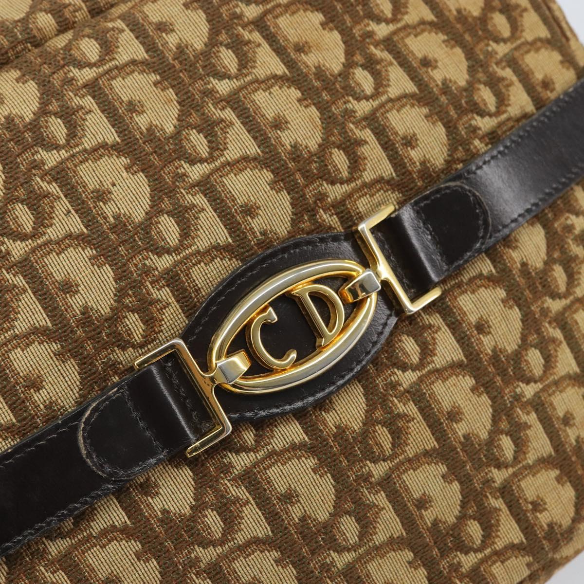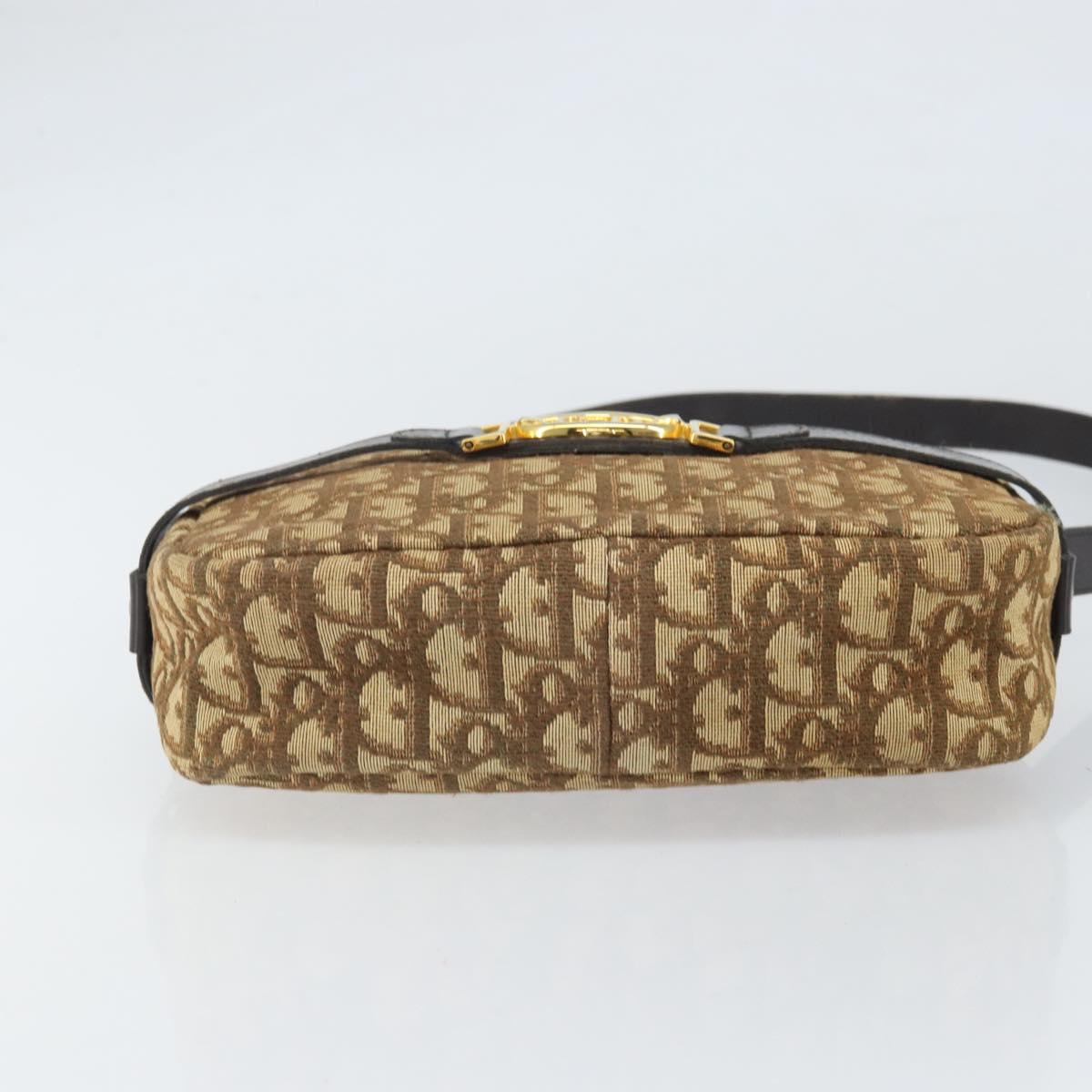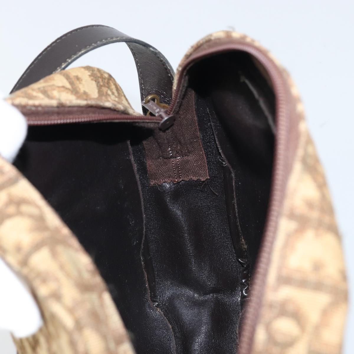 Christian Dior Trotter Canvas Shoulder Bag Brown Gold Auth 171073