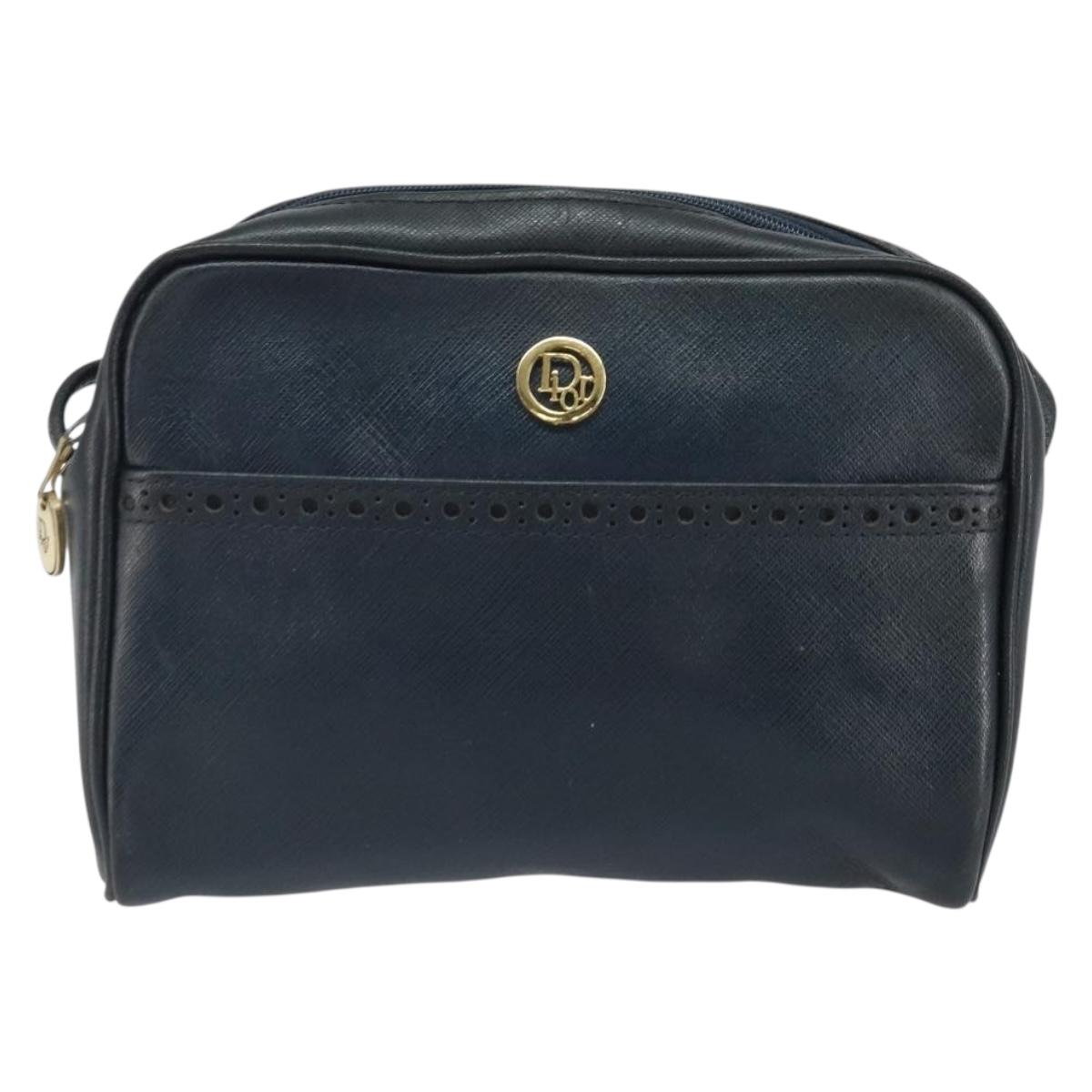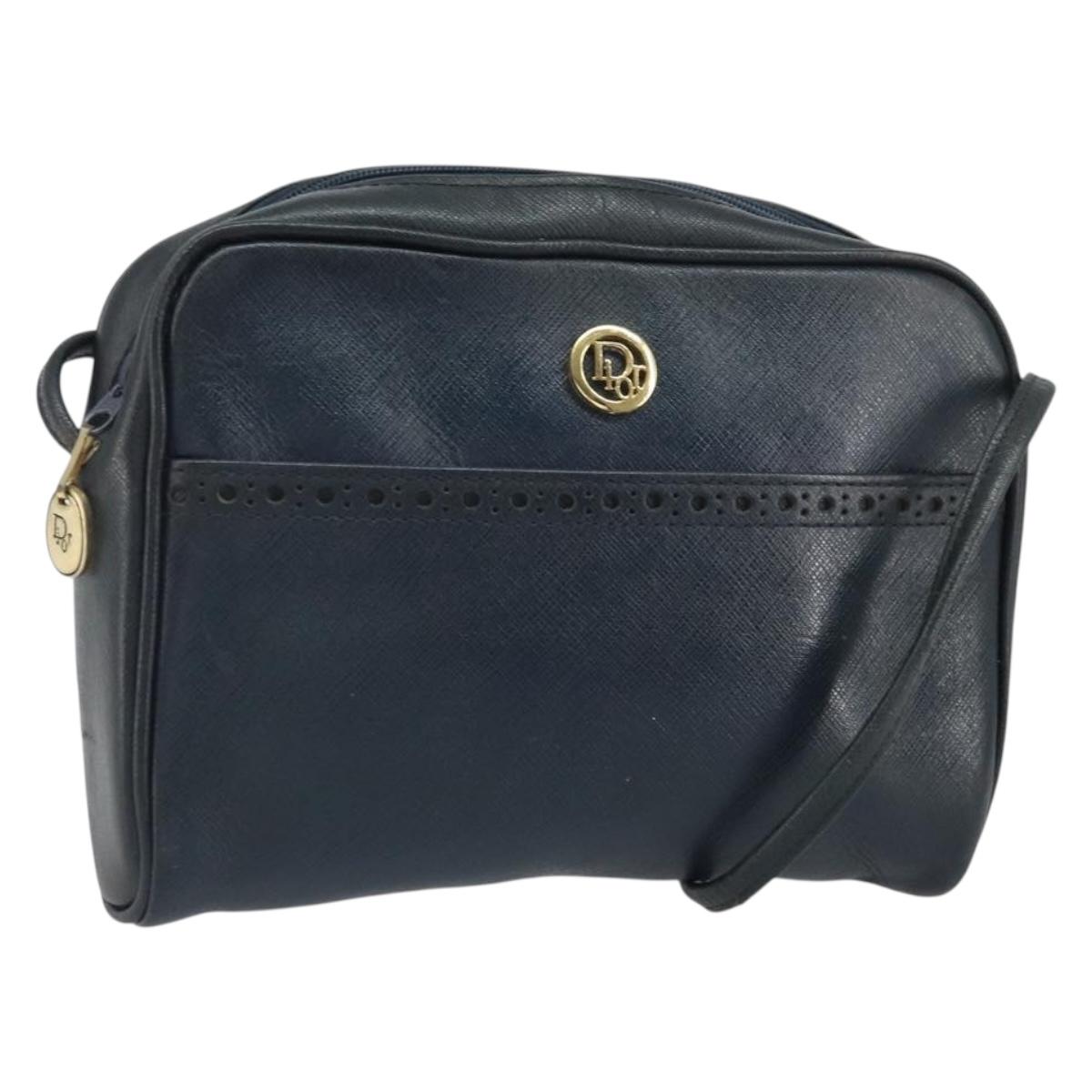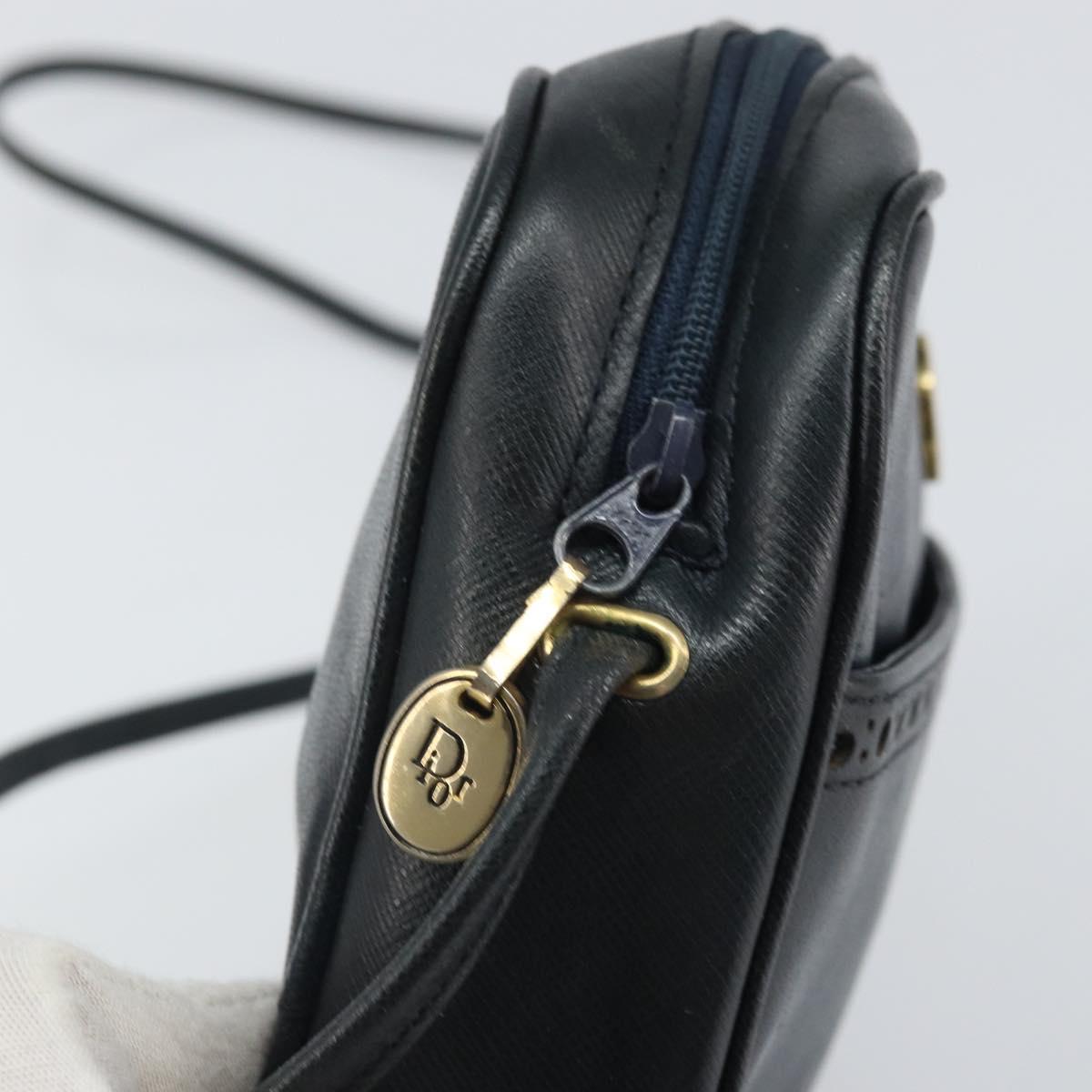 Christian Dior Shoulder Bag Leather Navy Gold Auth bs33276