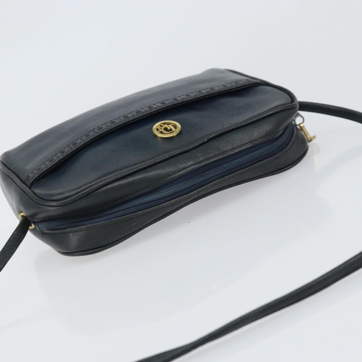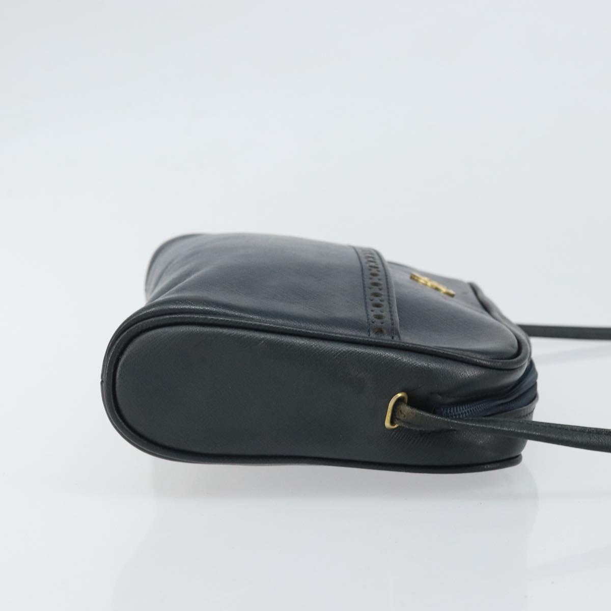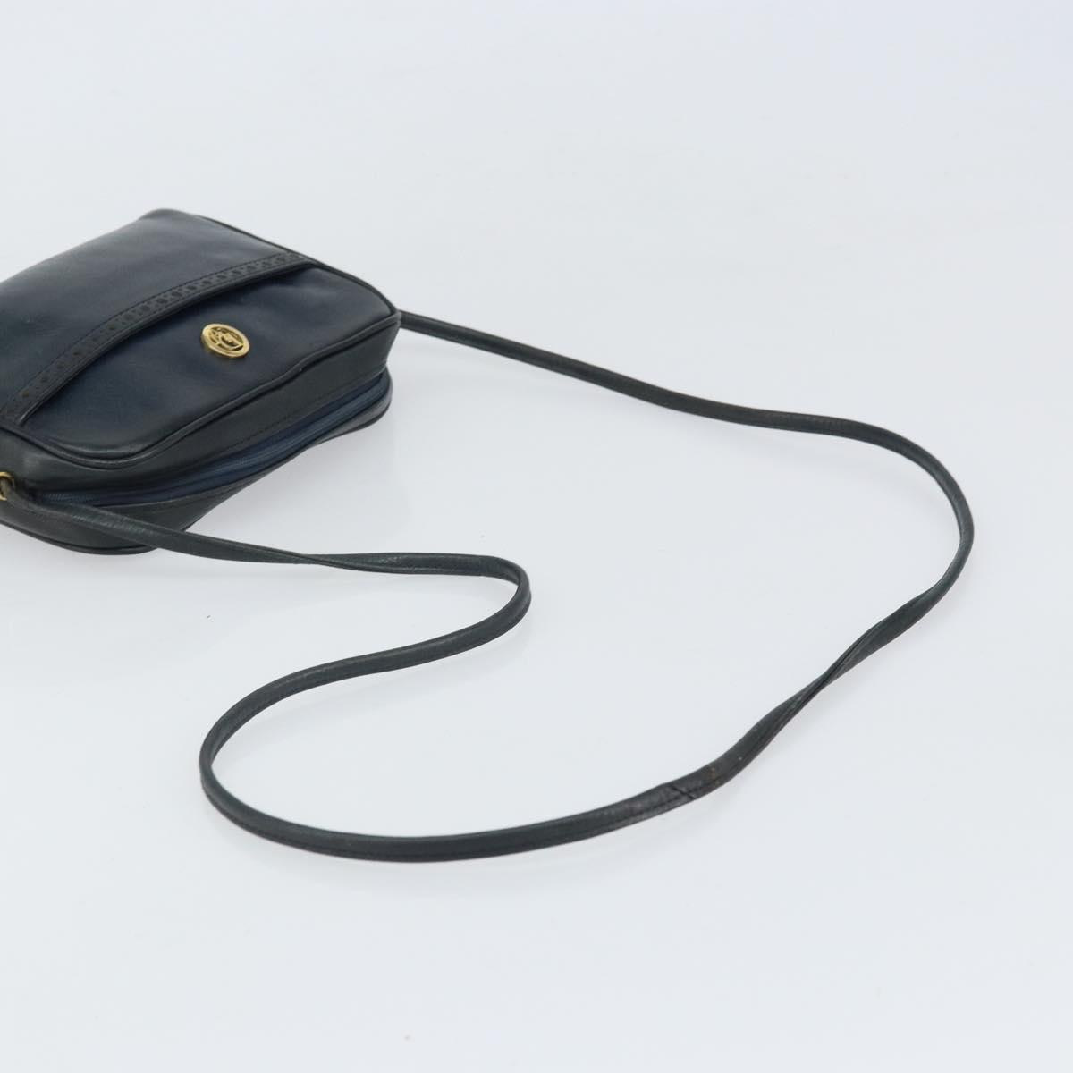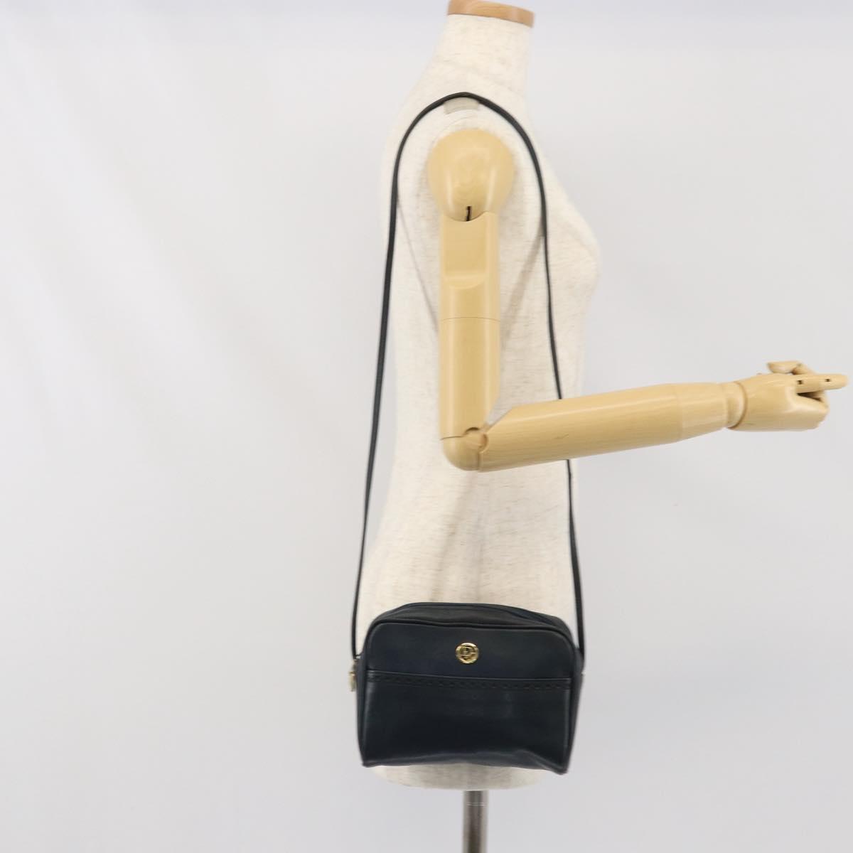 Christian Dior Shoulder Bag Leather Navy Gold Auth bs33276