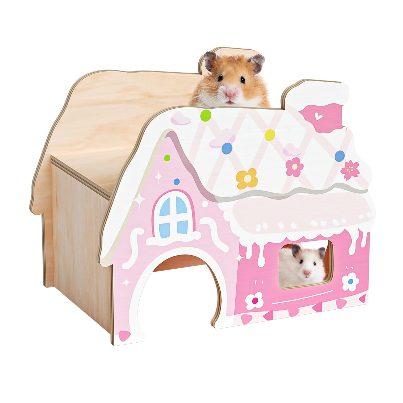 Candy Pink Hamster Hideout – A Sweet Retreat for Your Tiny Friend! Treat your small pet to this adorable wooden hideout, combining enrichment, comfort, and cage decor in one! Designed for dwarf hamsters, Syrian hamsters, mice, and gerbils, this 7.9"x5.2"x6.3" candy-style house is crafted from premium aspen wood for safety and durability.