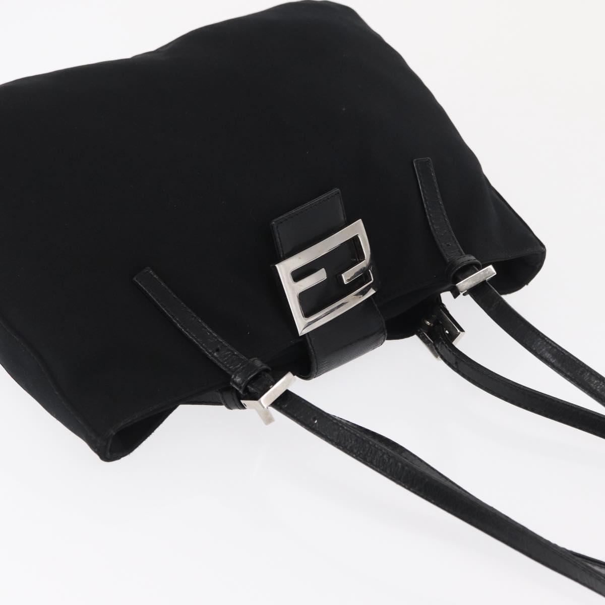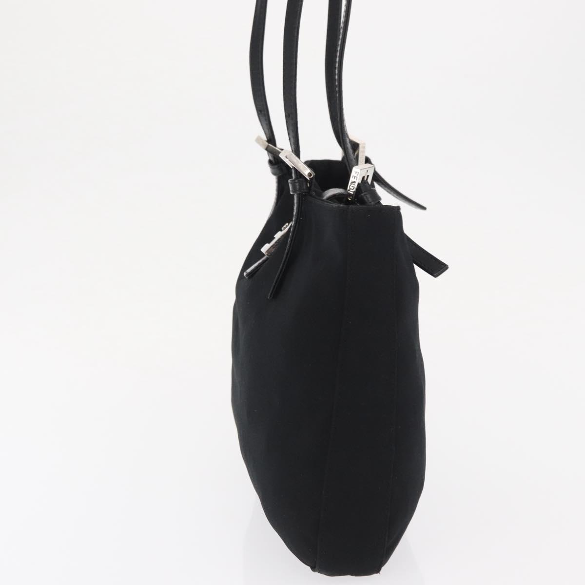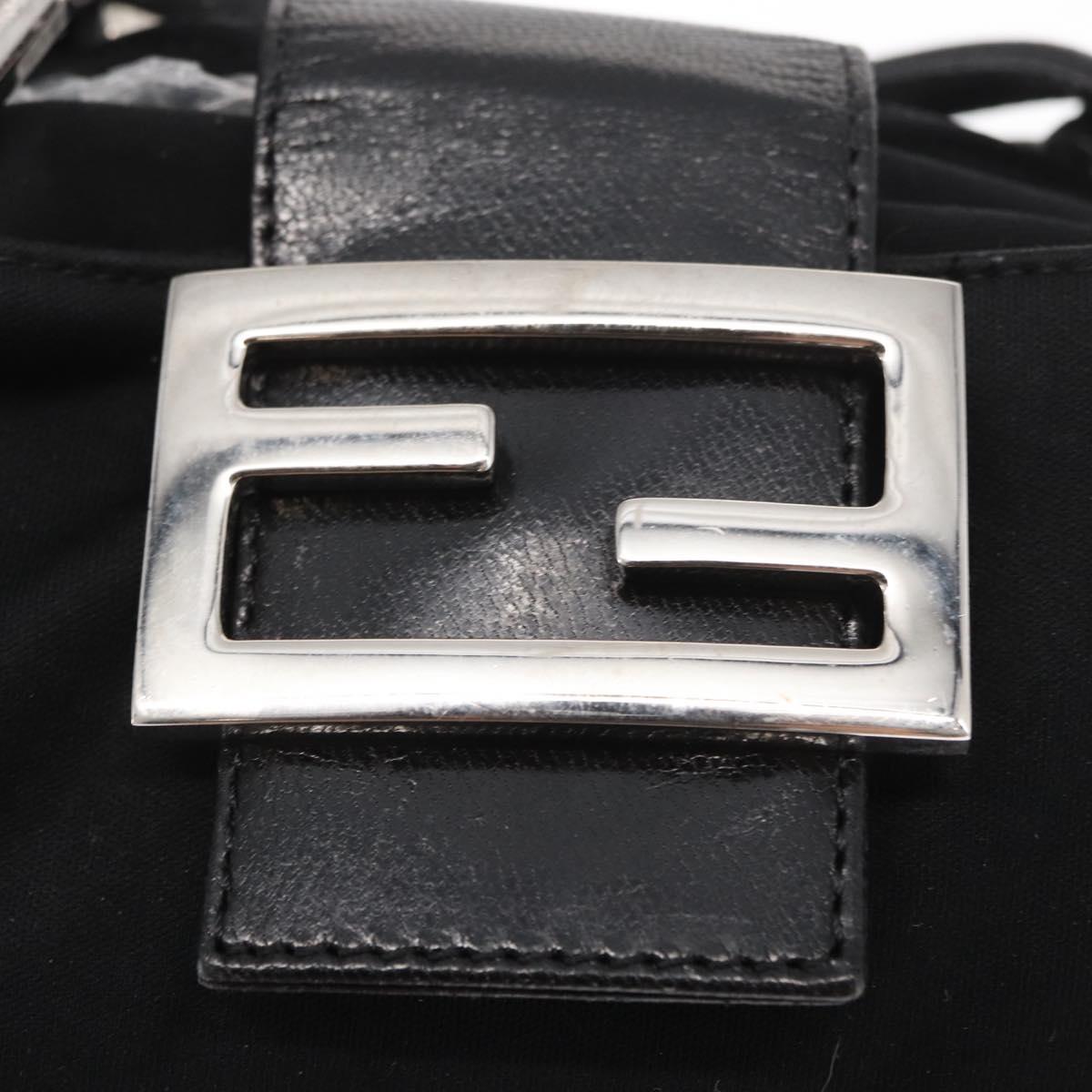 FENDI Mamma Baguette Tote Bag Nylon Black Silver Auth 171610