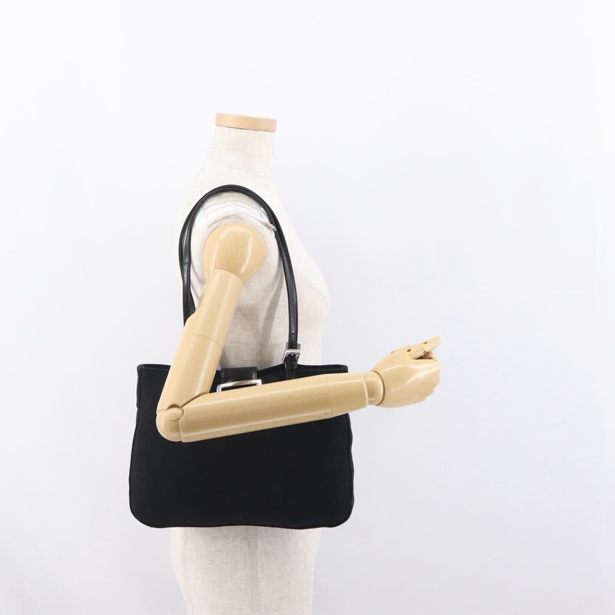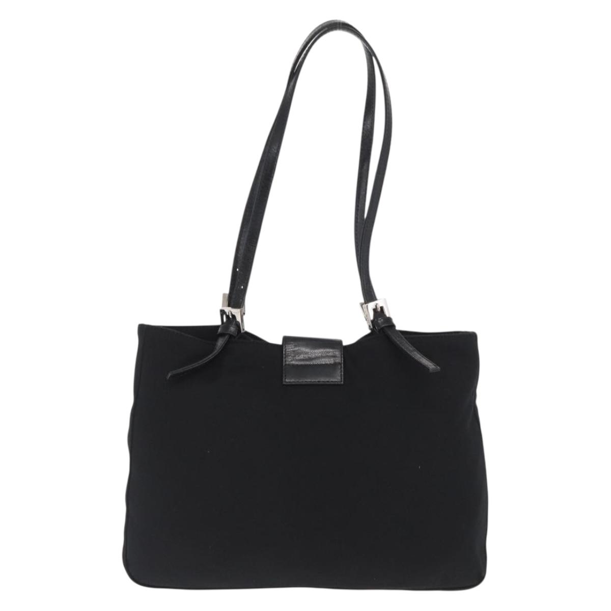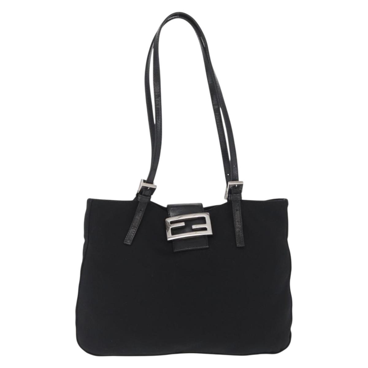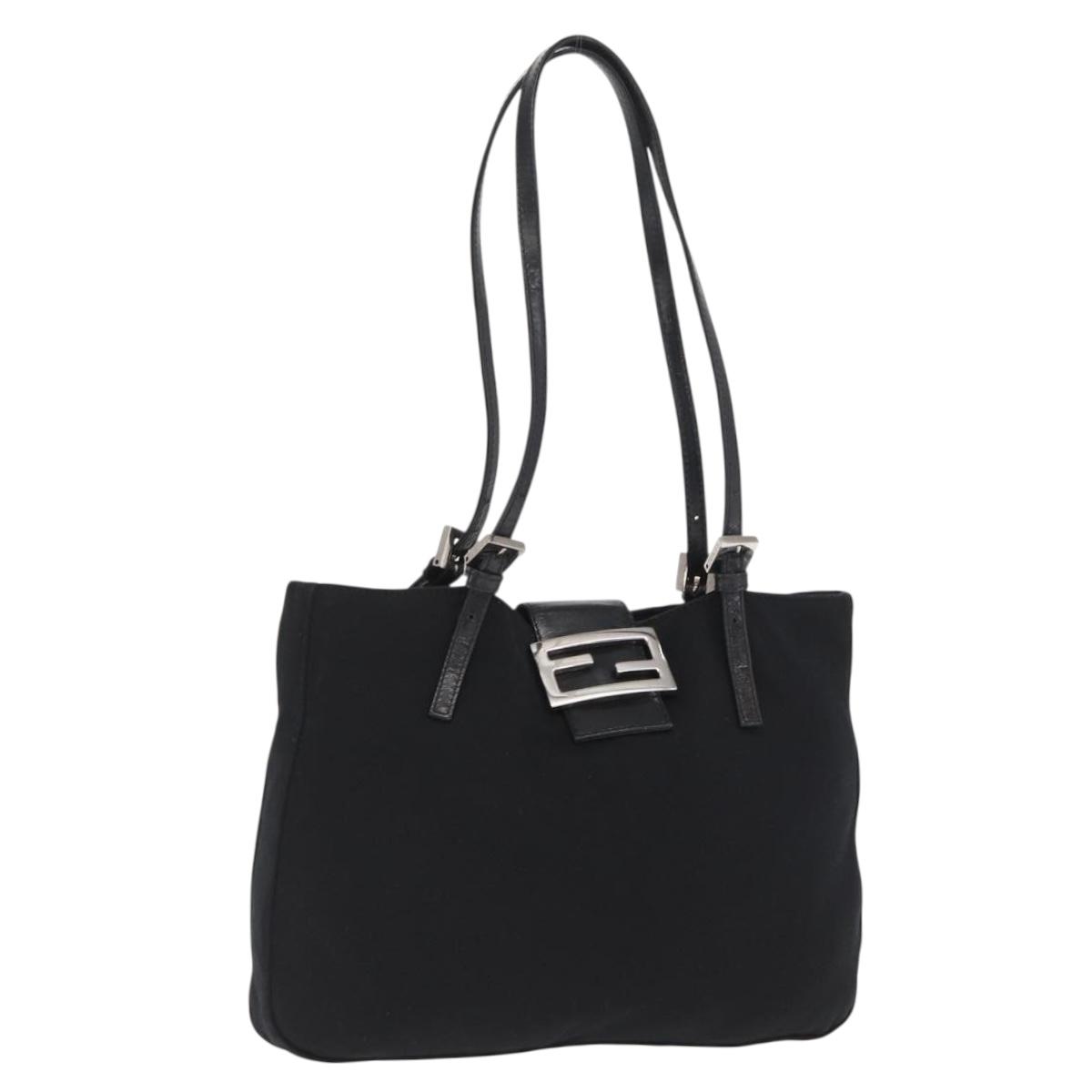 FENDI Mamma Baguette Tote Bag Nylon Black Silver Auth 171610