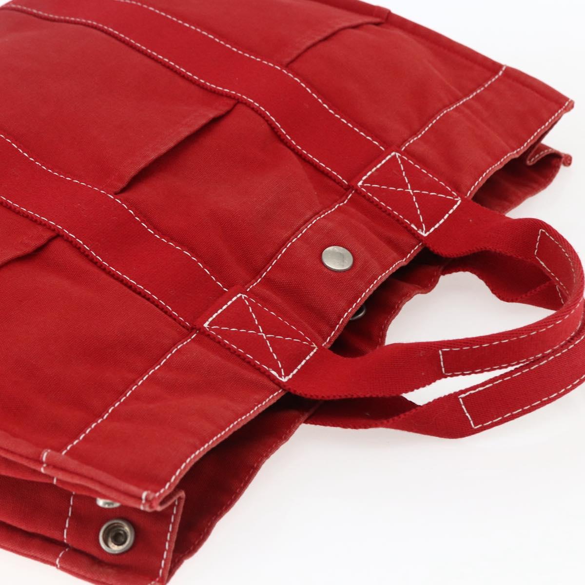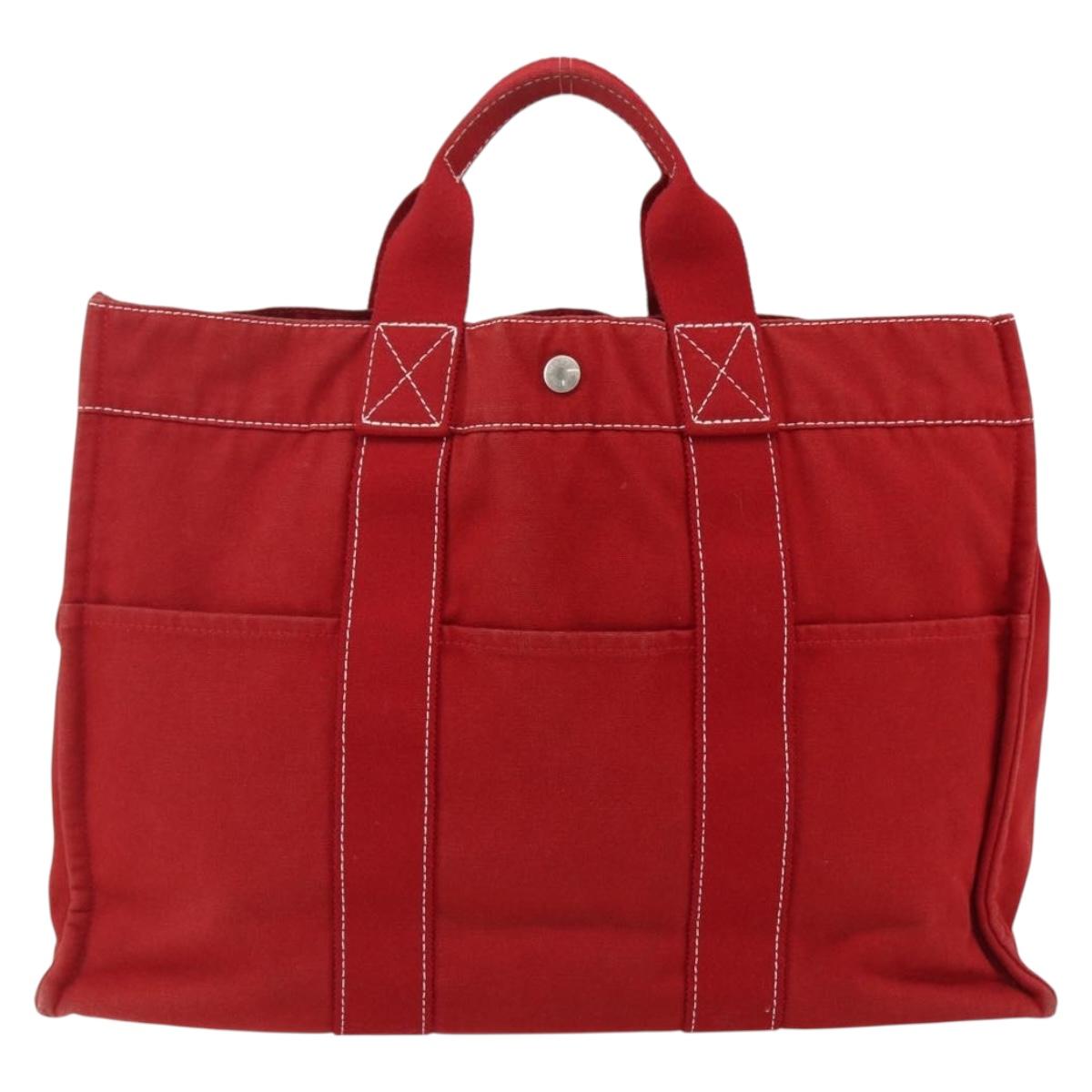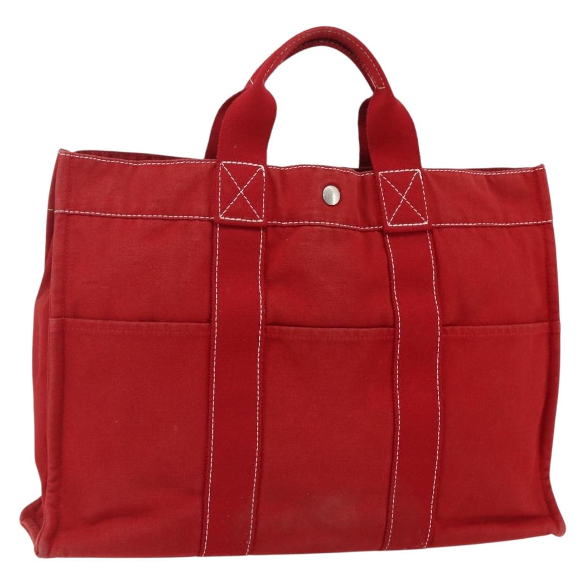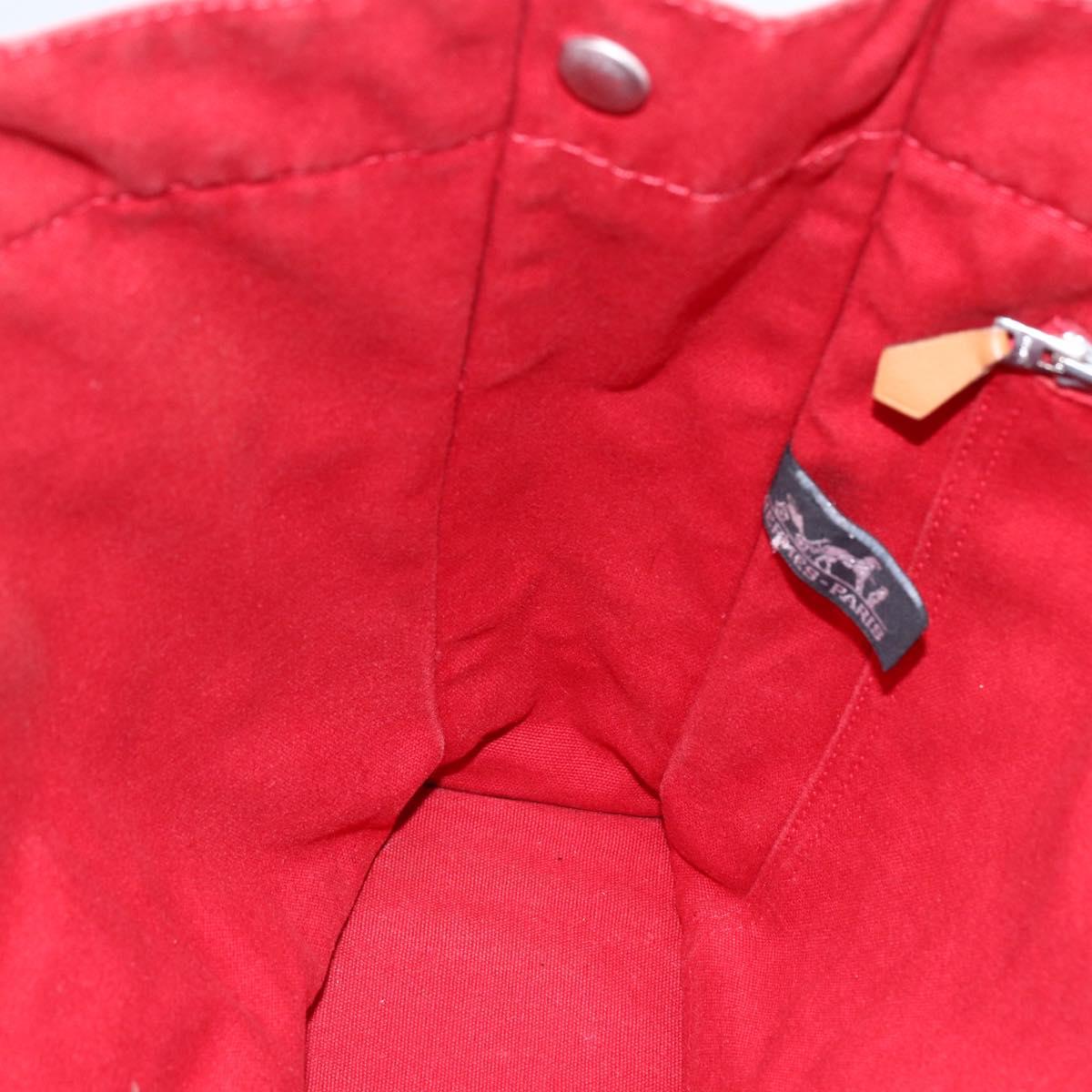 HERMES Fourre Tout MM Hand Bag Canvas Red Silver Auth 172057