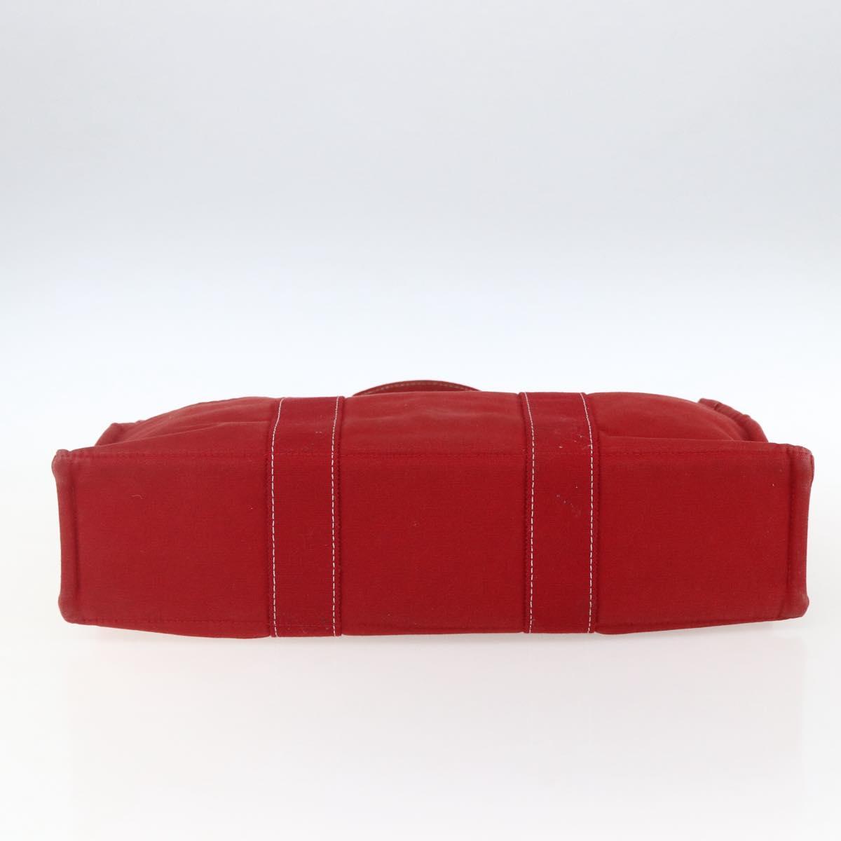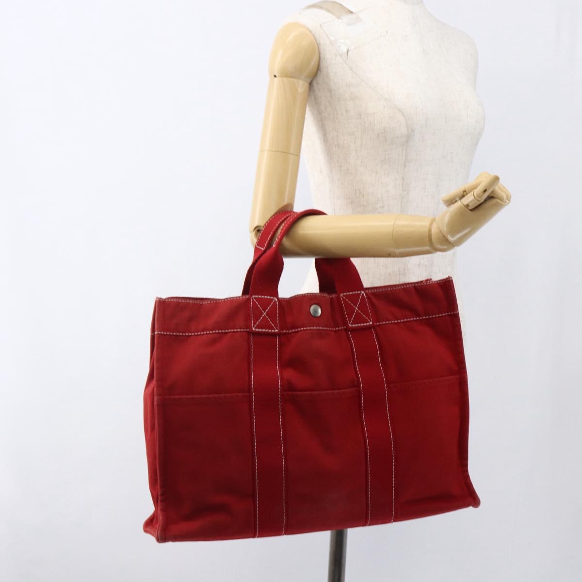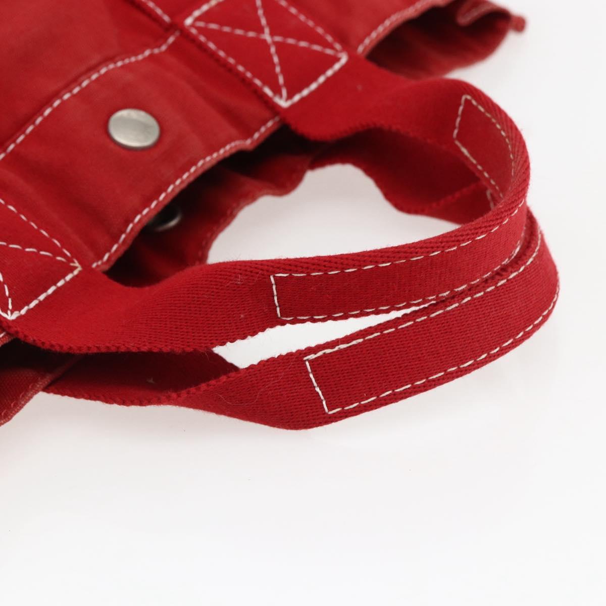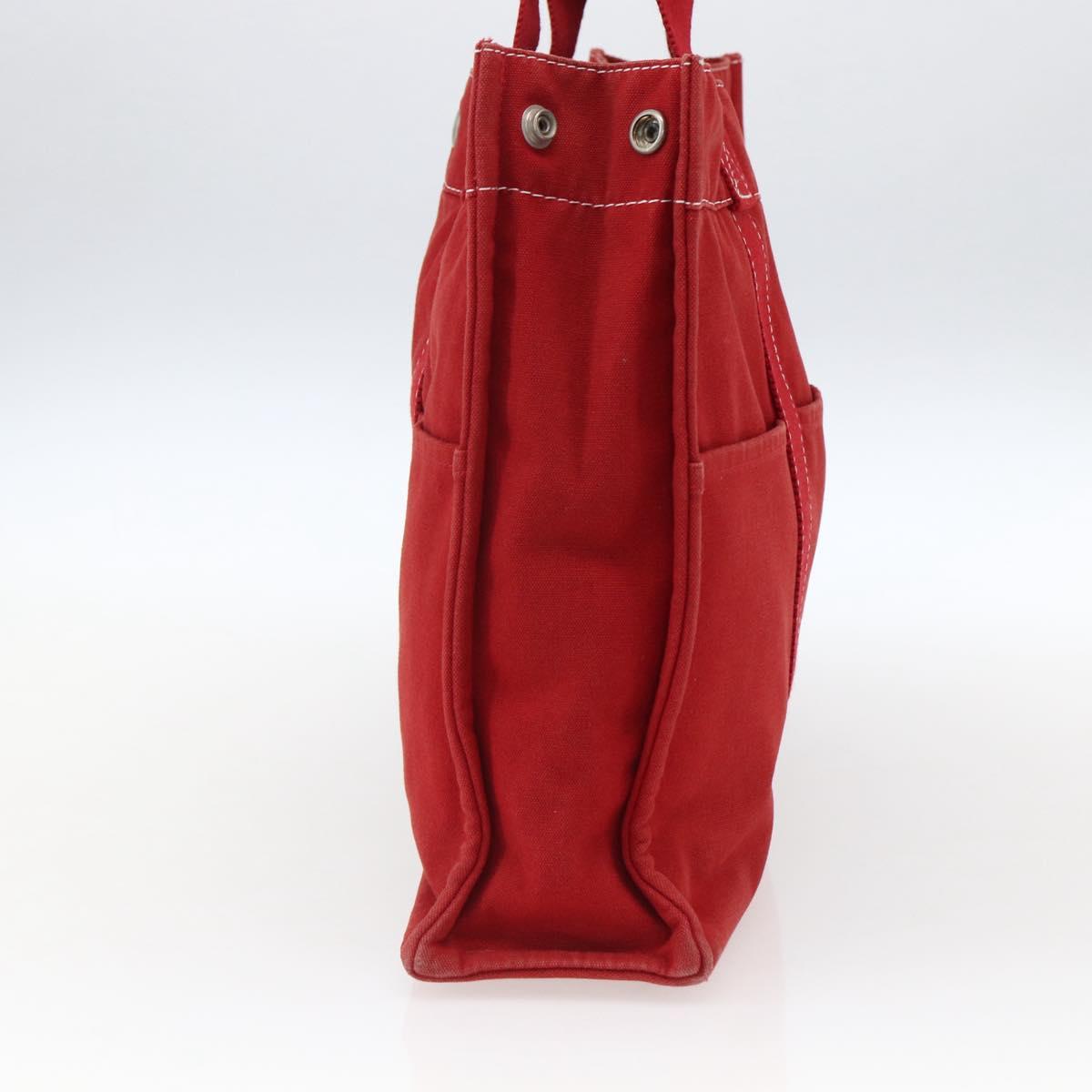 HERMES Fourre Tout MM Hand Bag Canvas Red Silver Auth 172057