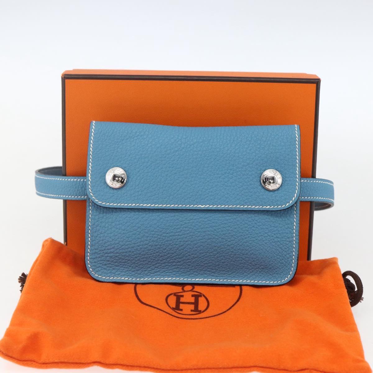 HERMES Pochette Green Waist bag Leather Blue Silver Auth 166361SM