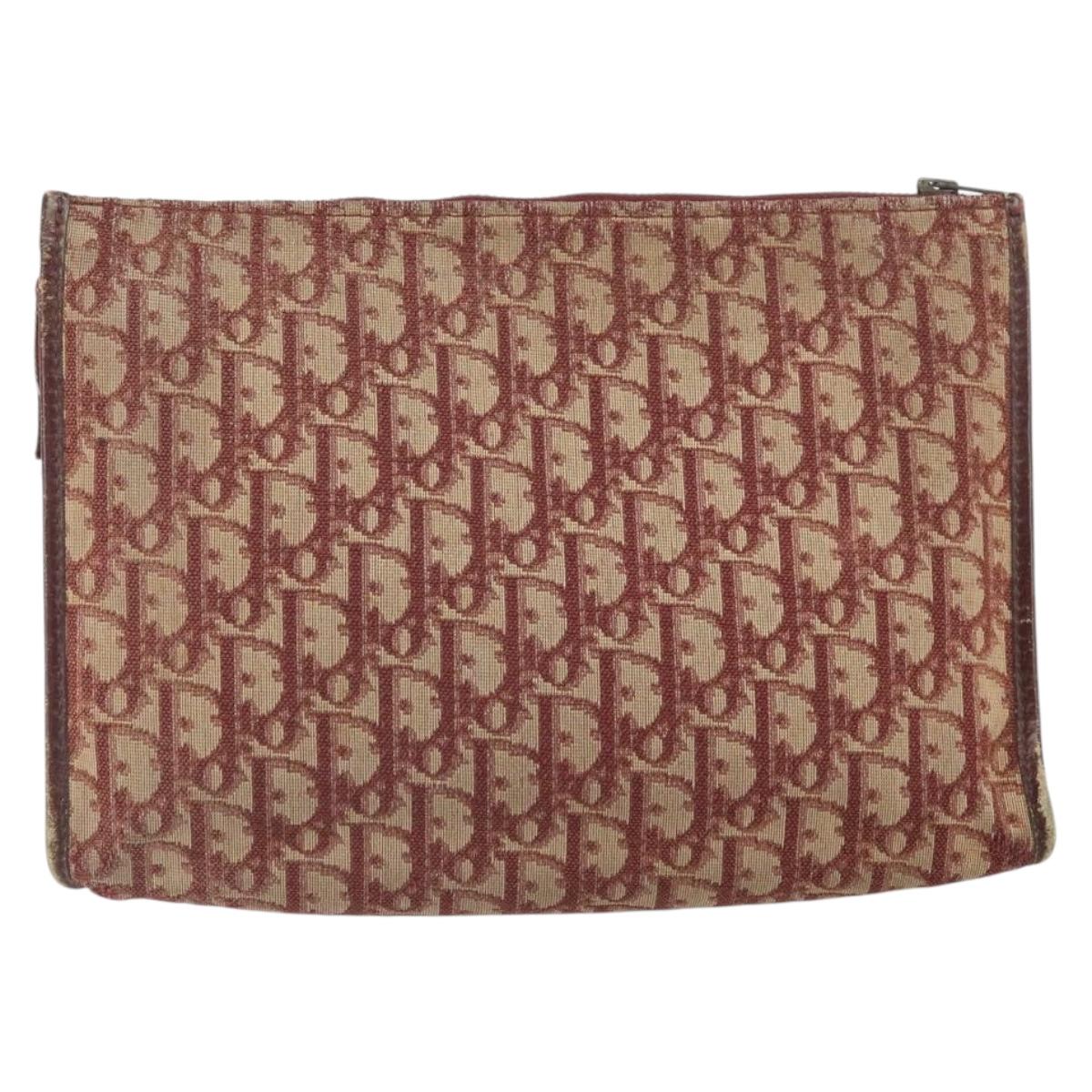 Christian Dior Trotter Canvas Clutch Bag Red Auth bs33268