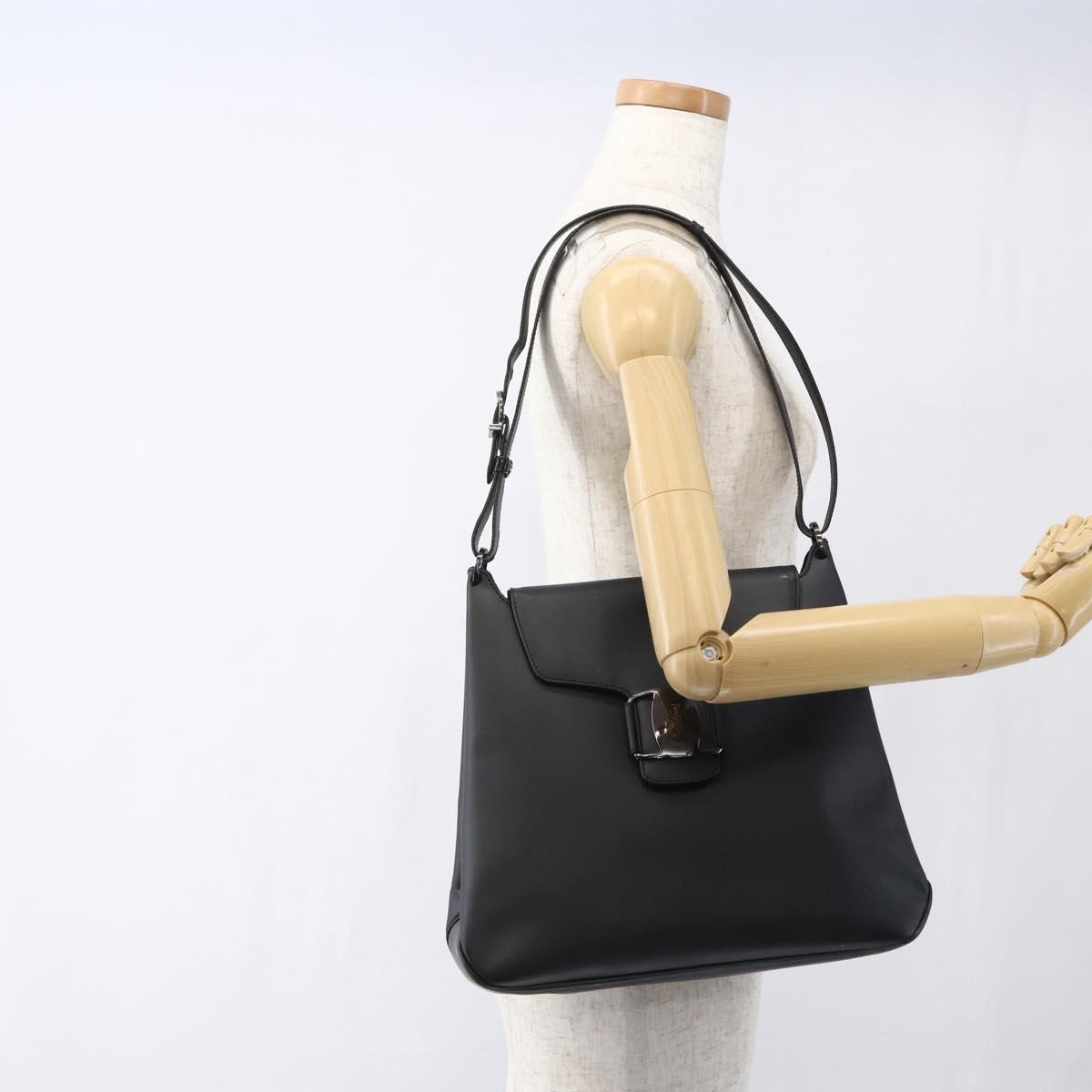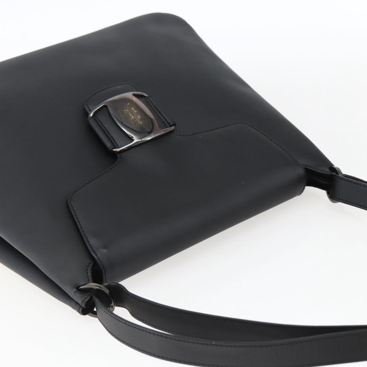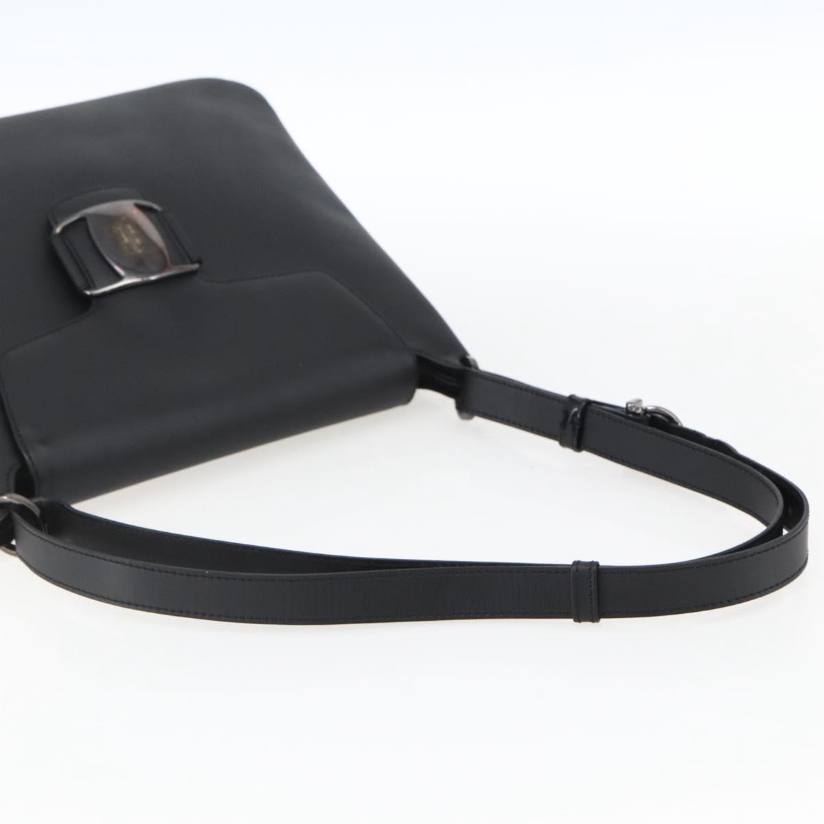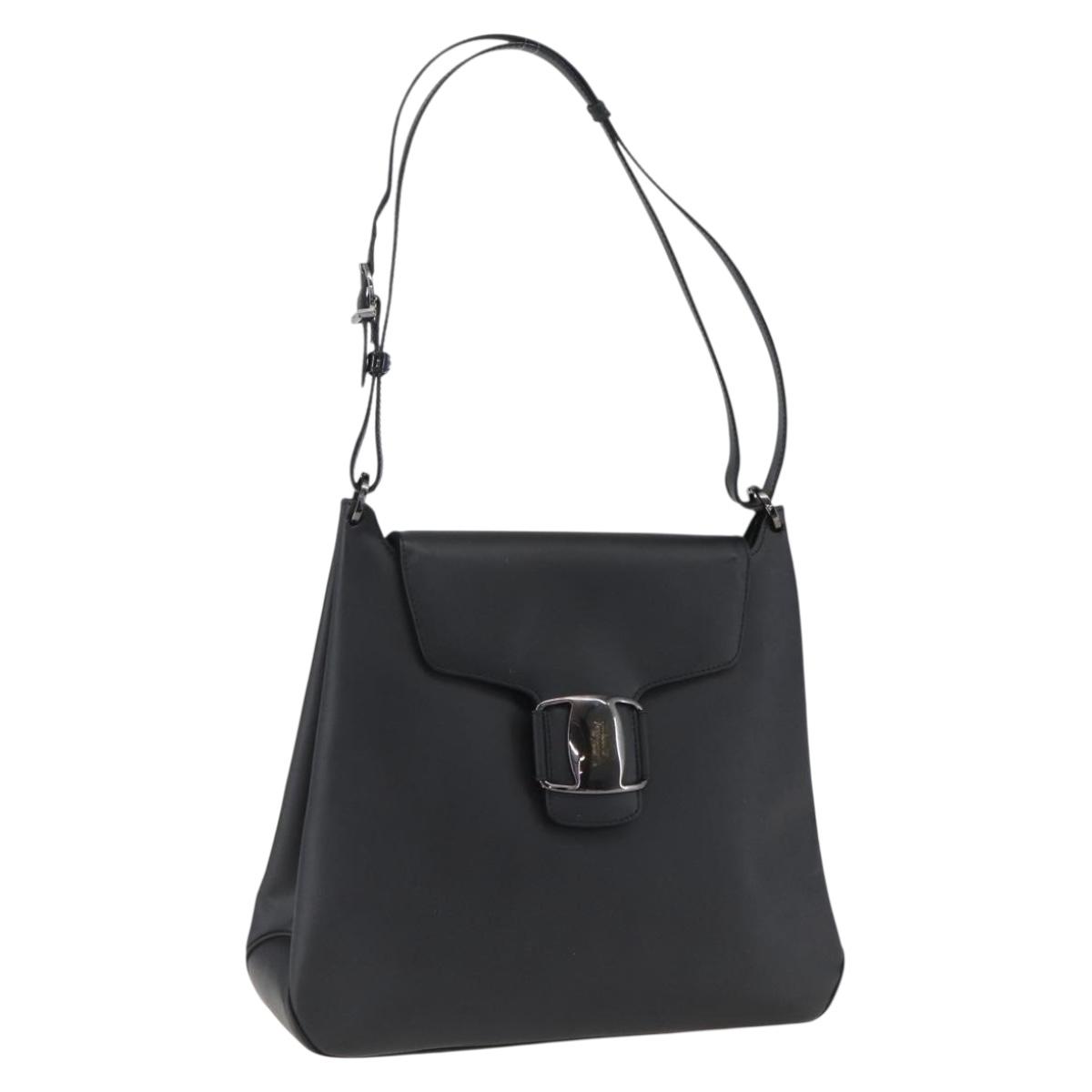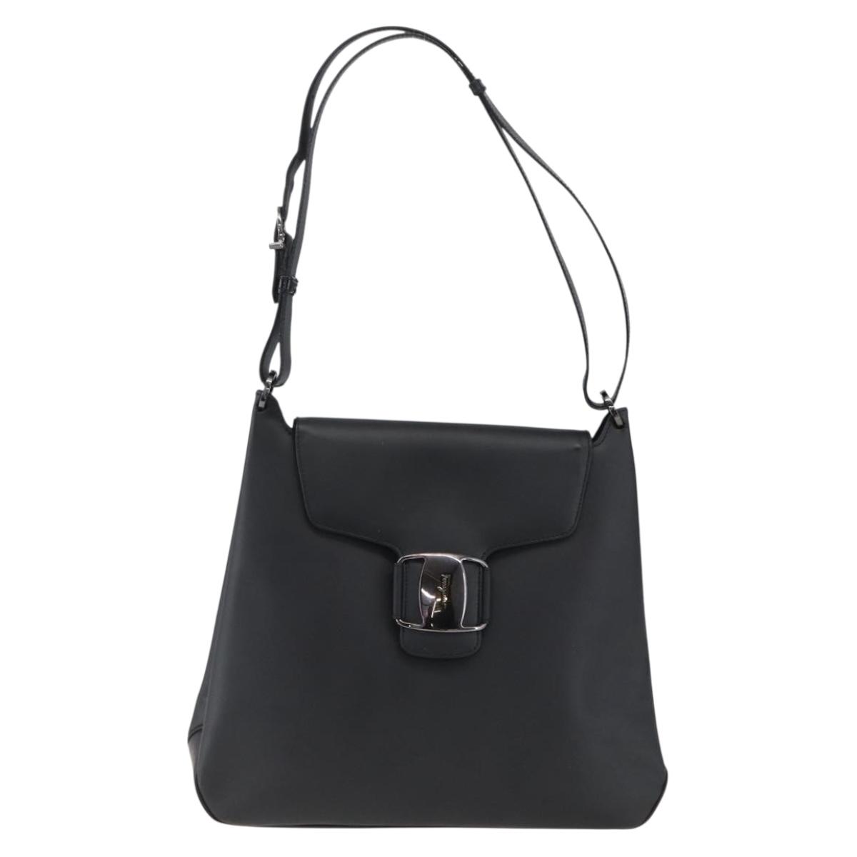 Salvatore Ferragamo Vala Shoulder Bag Leather Silver Black Auth ka2360