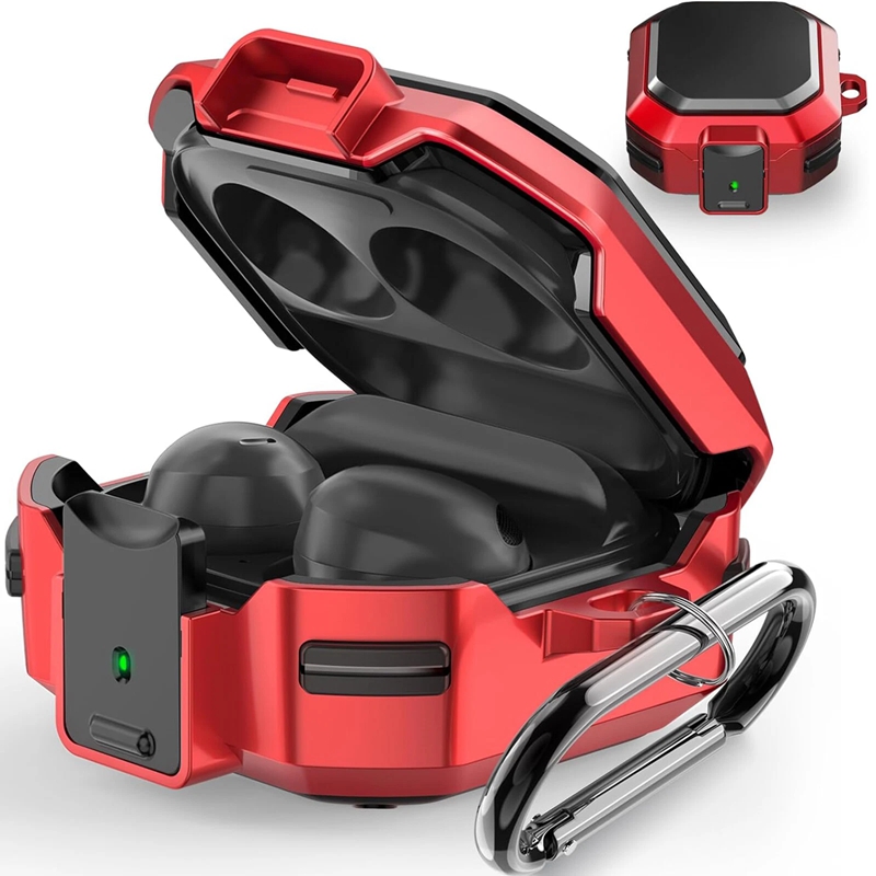 【Safety lock Design and Usage】: The earphone shell is composed of upper and lower shells, adopts a split structure, and has a safety lock function on the front. Press the front locking button to automatically open the top cover. Don't worry about the top cover automatically opening the earphones and dropping and losing your Galaxy Buds Live/Pro/2 when you're out.