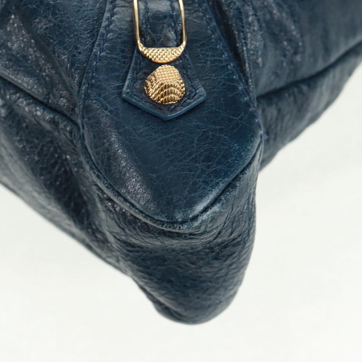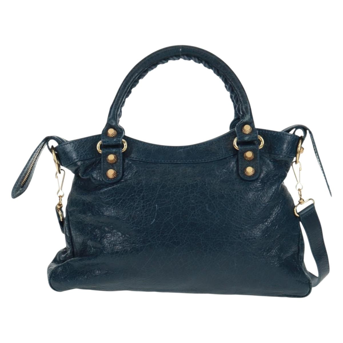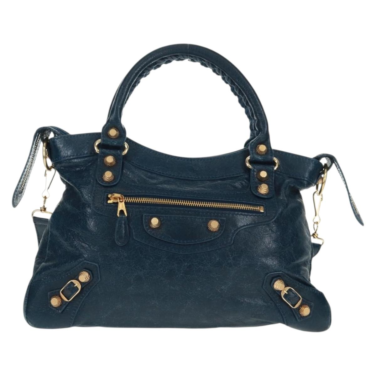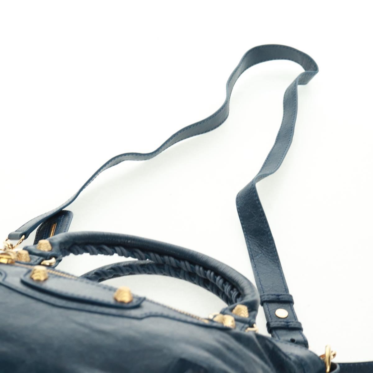 BALENCIAGA Giant Town Hand Bag Leather 2way Blue Gold Auth am10713SAV