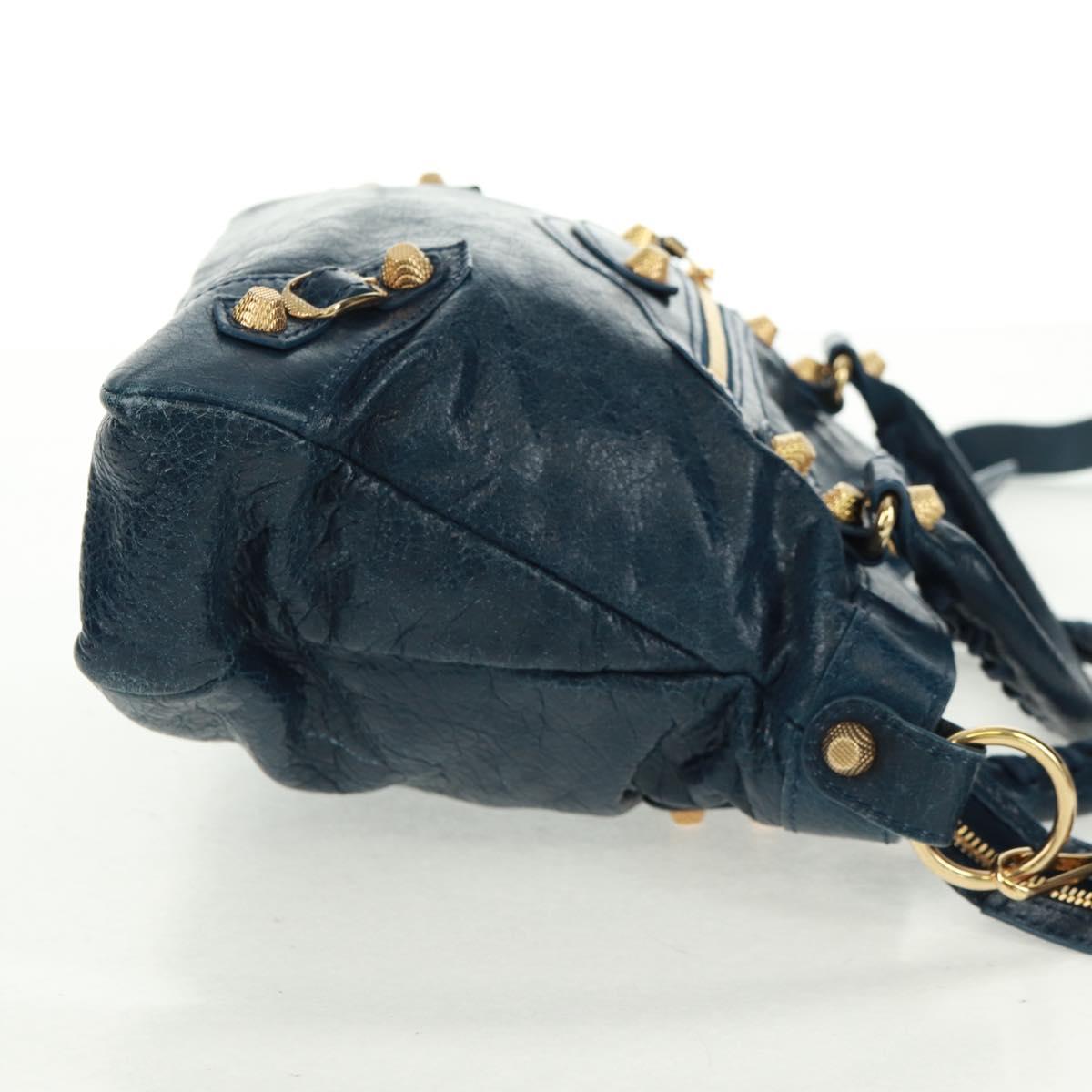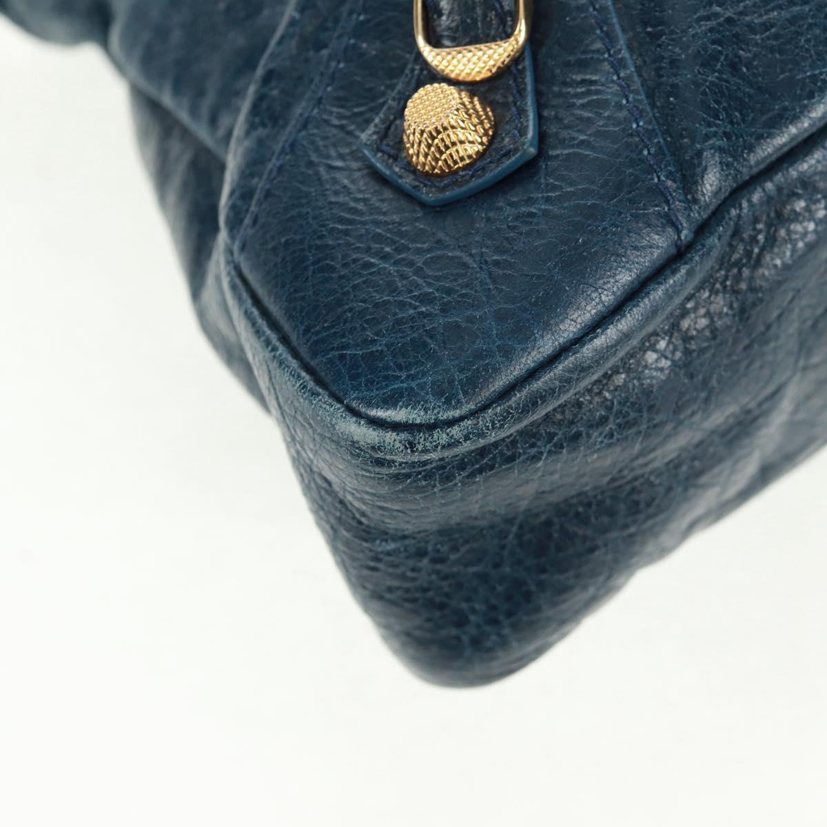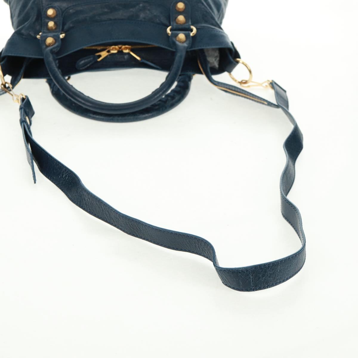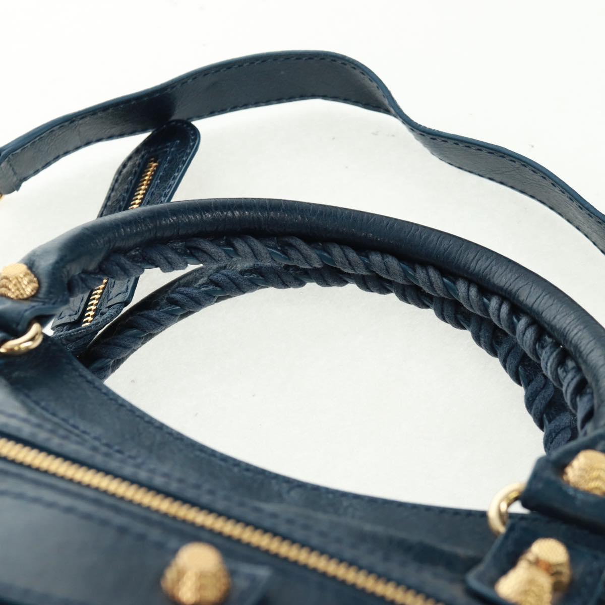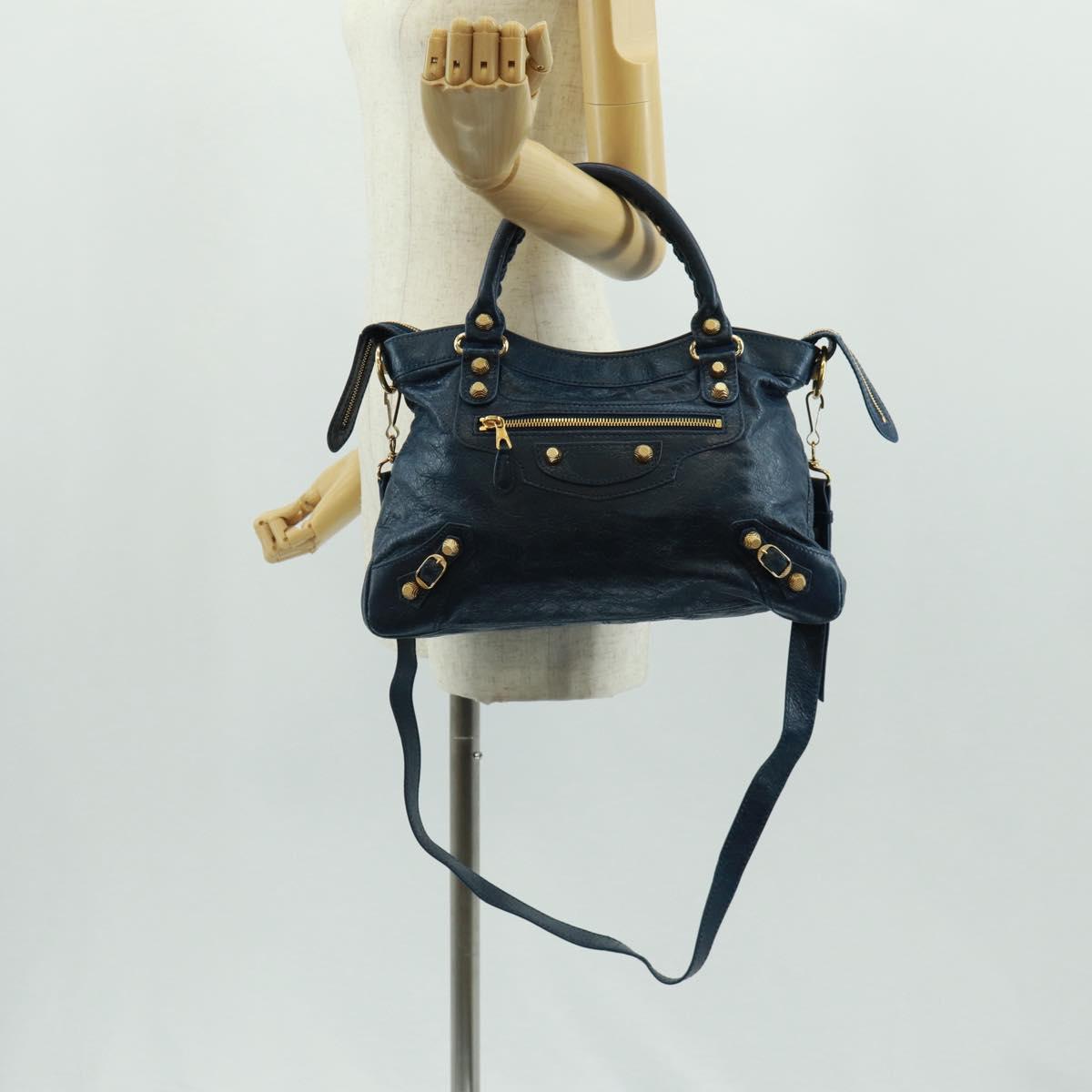 BALENCIAGA Giant Town Hand Bag Leather 2way Blue Gold Auth am10713SAV