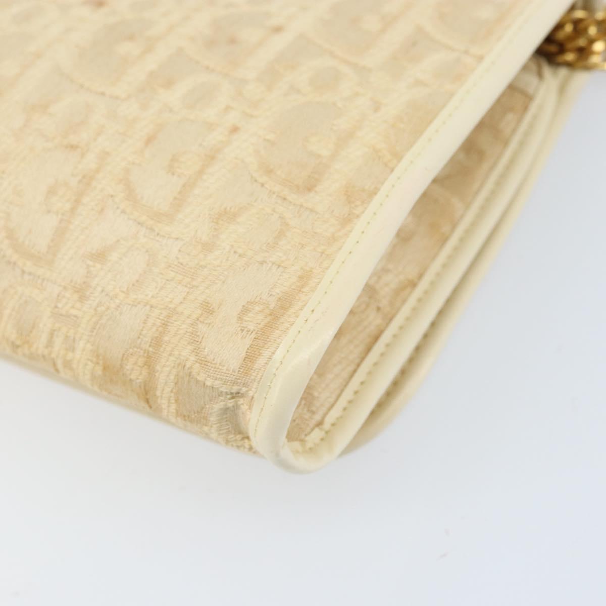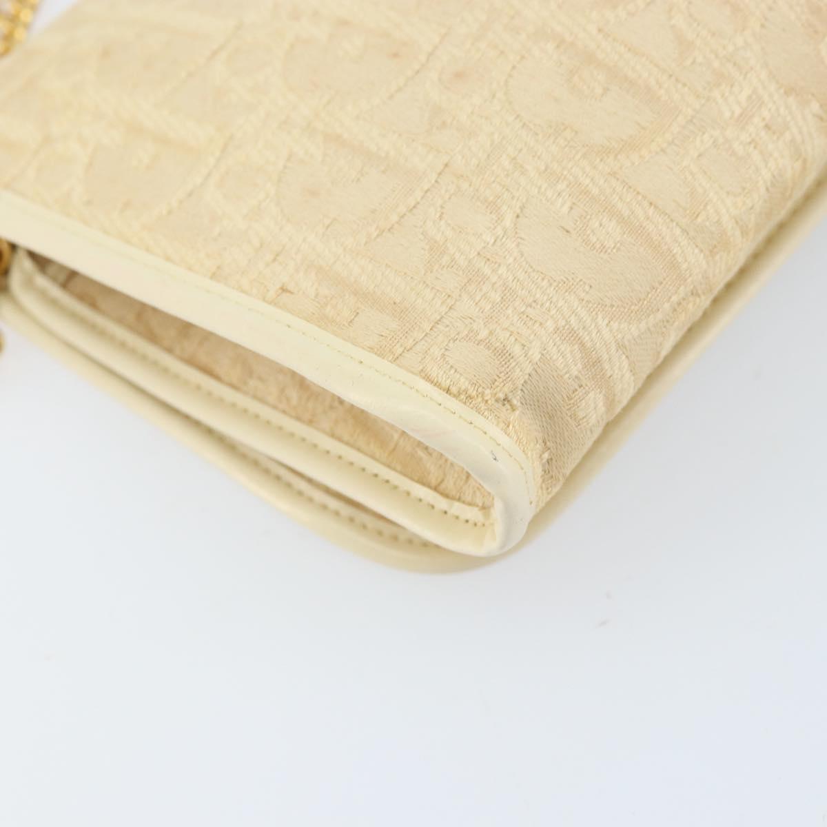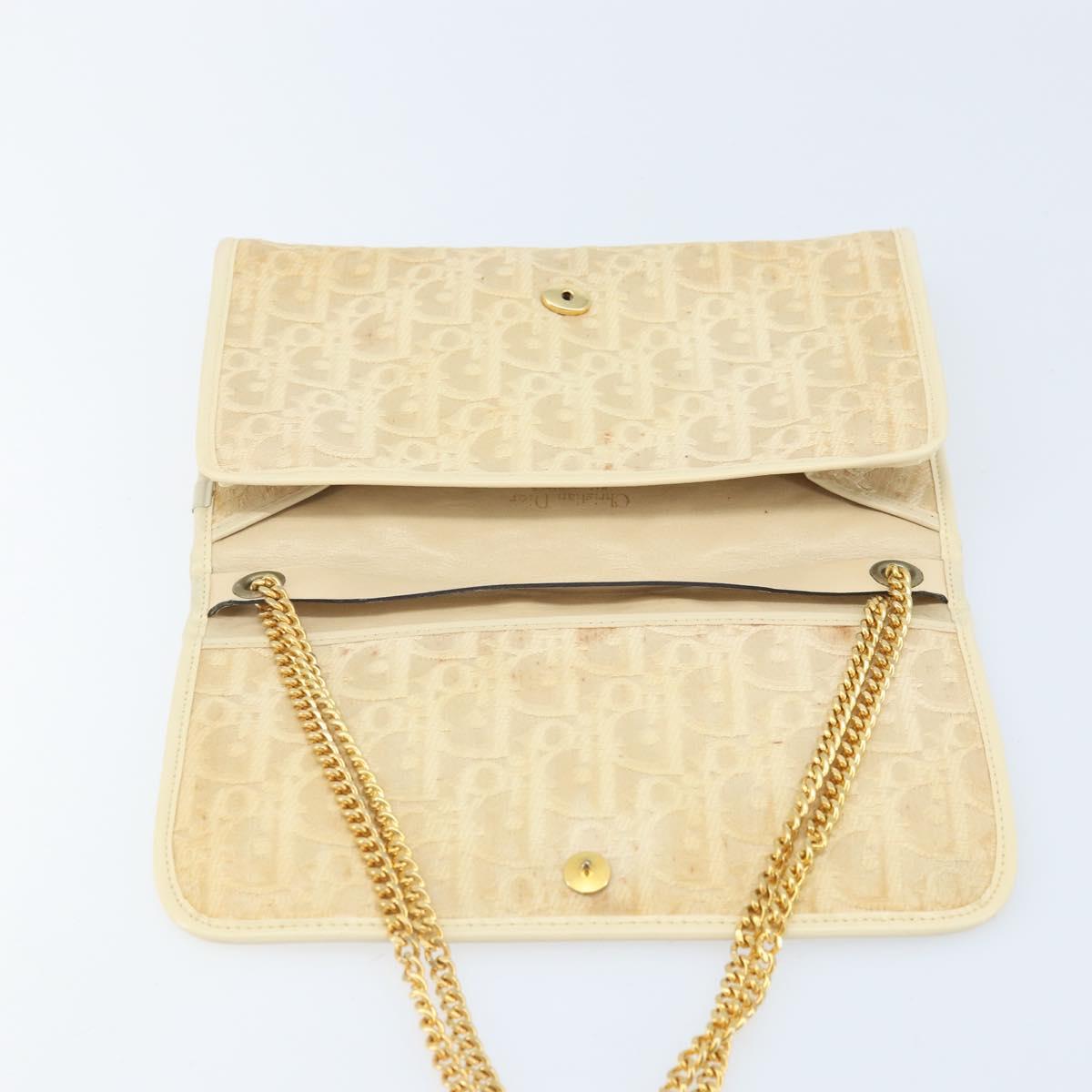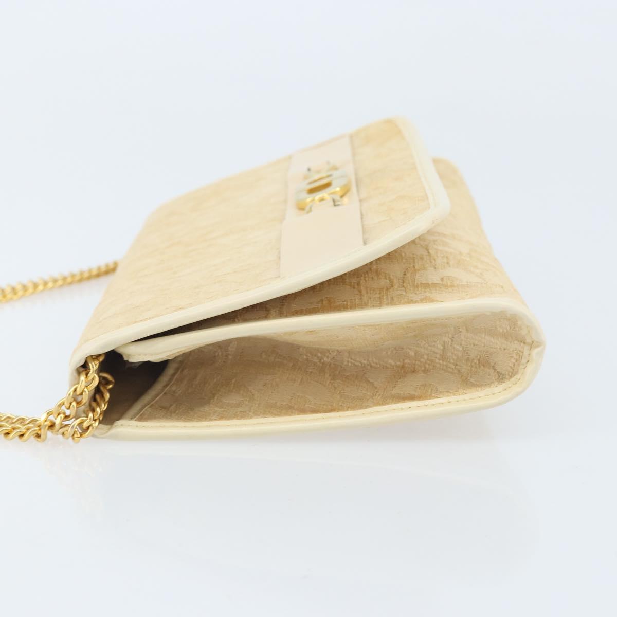 Christian Dior Trotter Canvas Chain Shoulder Bag Ivory Gold Auth BA10605