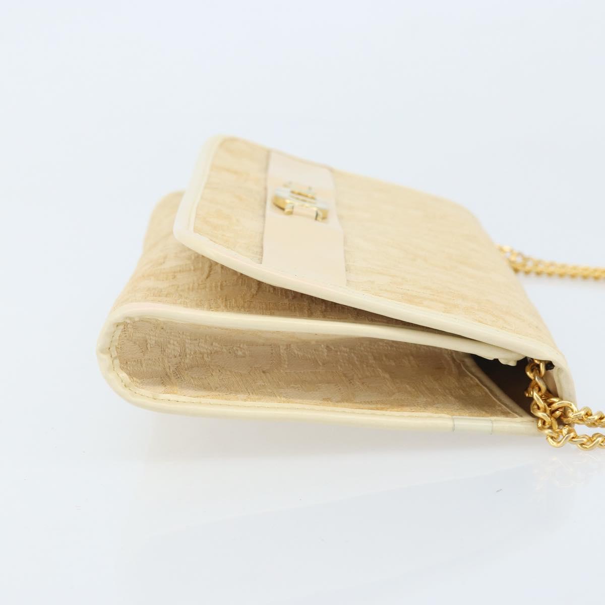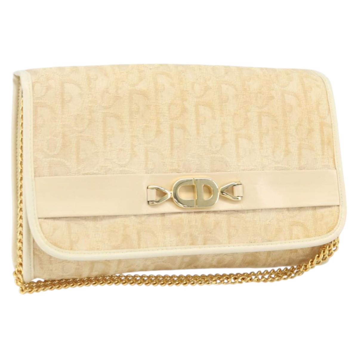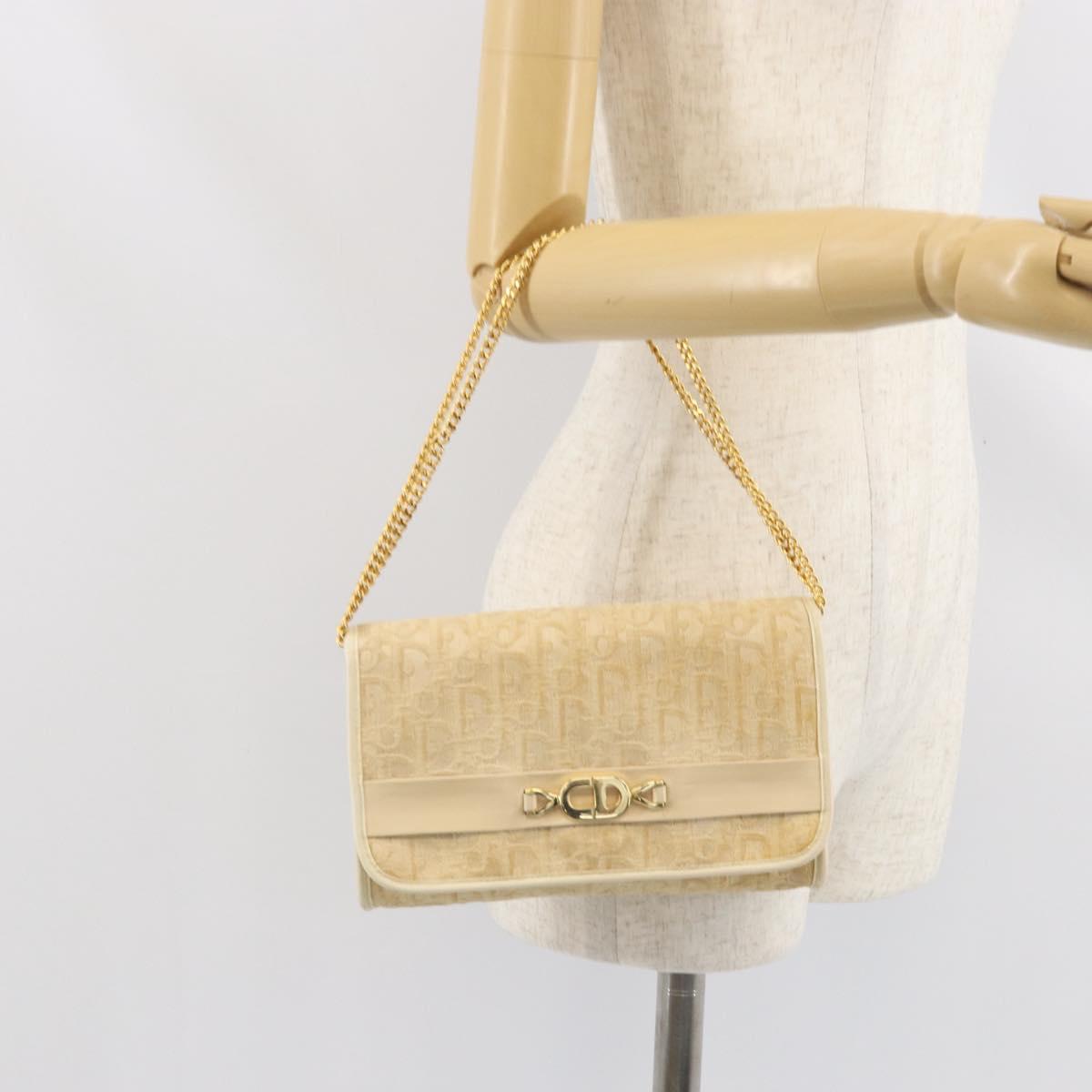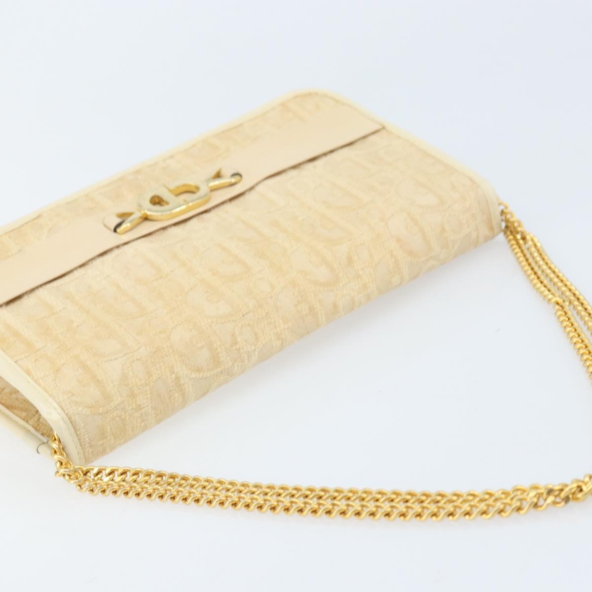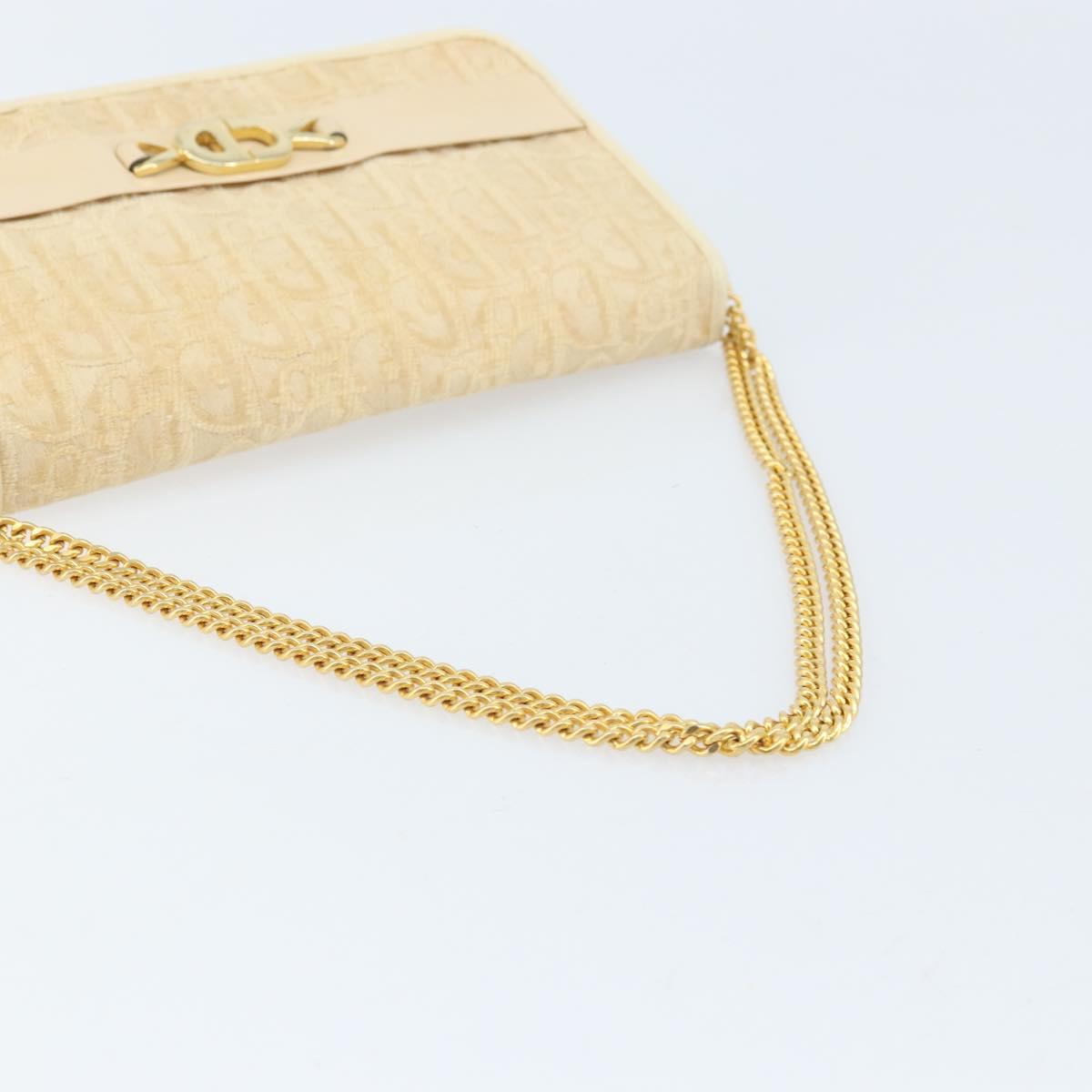Christian Dior Trotter Canvas Chain Shoulder Bag Ivory Gold Auth BA10605