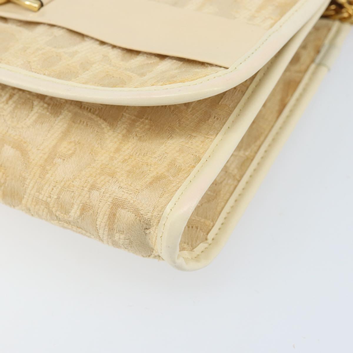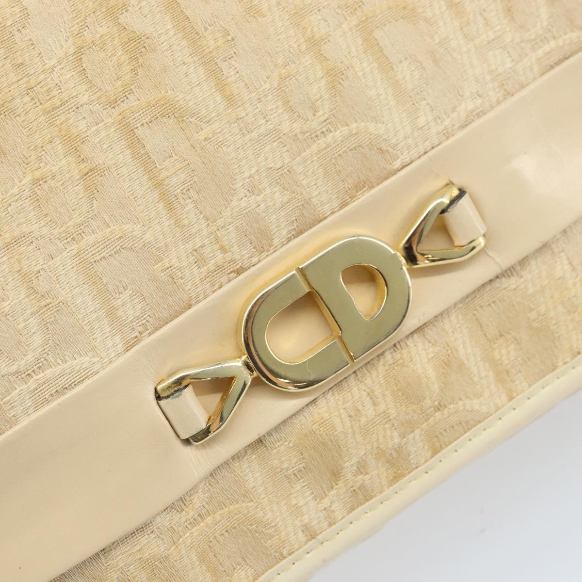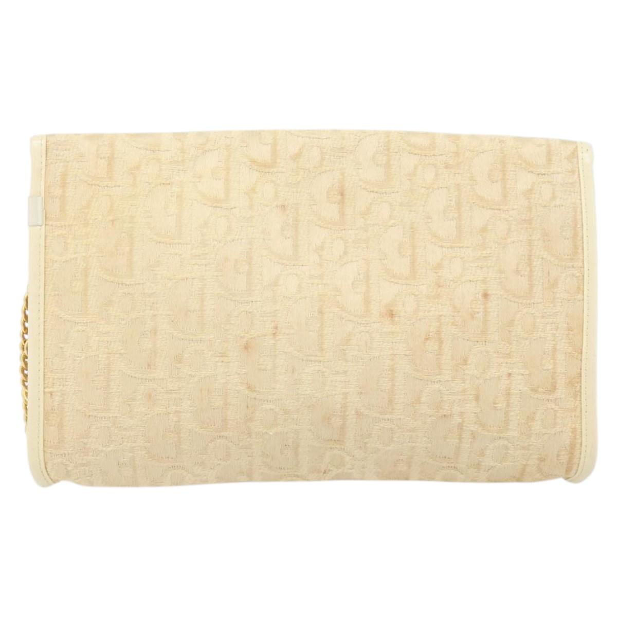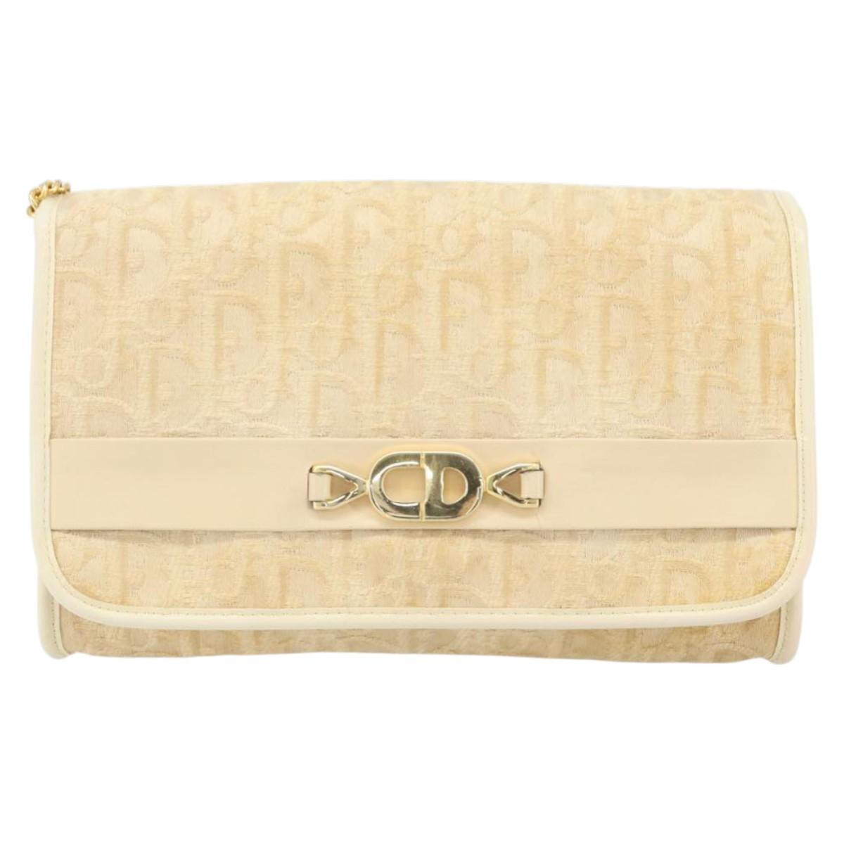 Christian Dior Trotter Canvas Chain Shoulder Bag Ivory Gold Auth BA10605