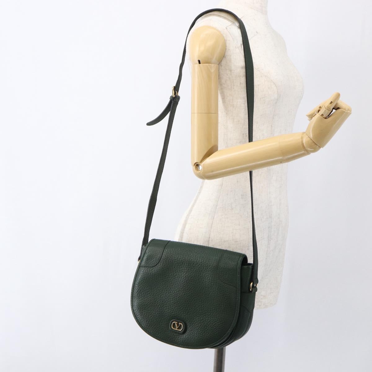 VALENTINO Shoulder Bag Leather Green Gold Auth BA10752