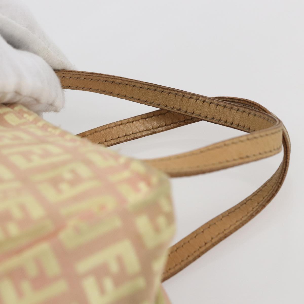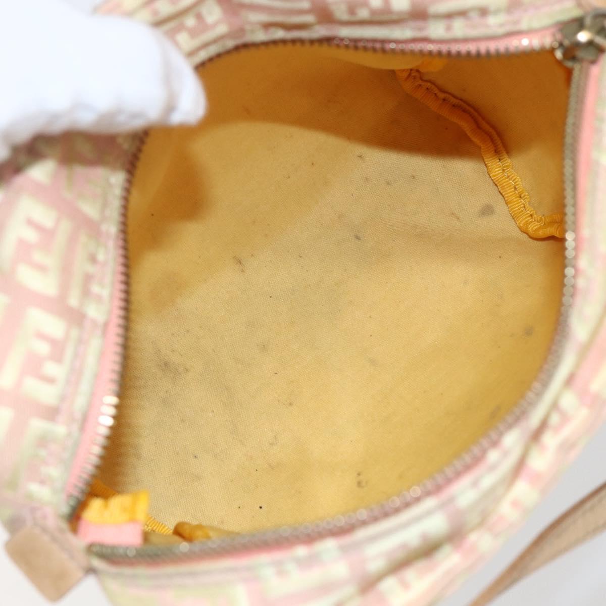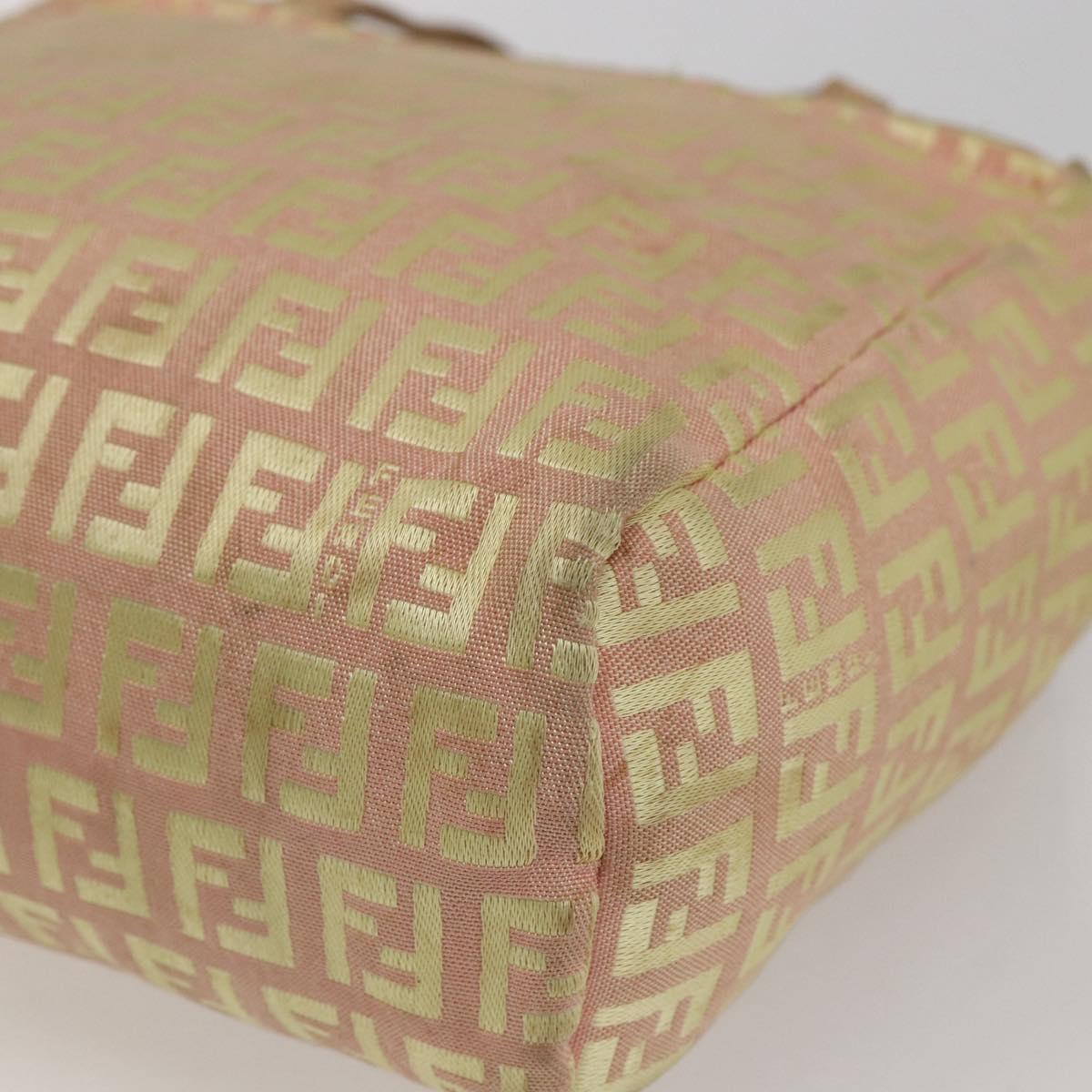 FENDI Zucchino Canvas Hand Bag Gold Pink Auth 169836