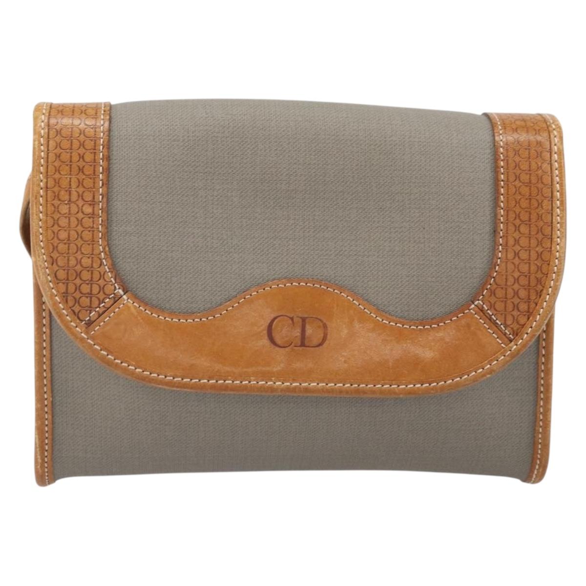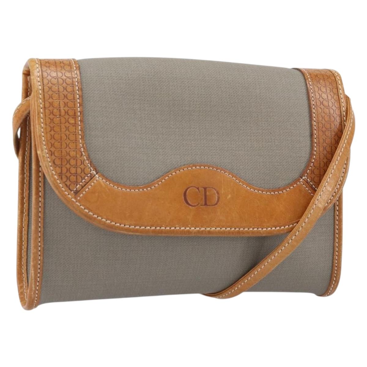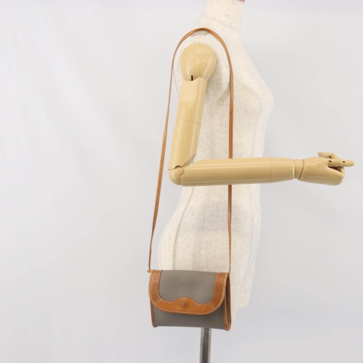 Christian Dior Shoulder Bag PVC Leather Gray Gold Auth ti3765