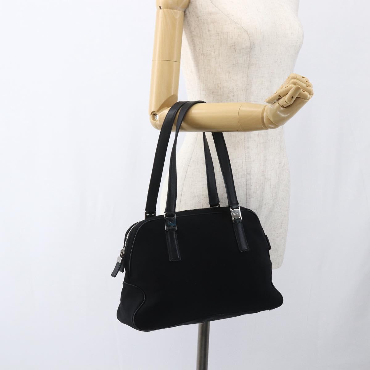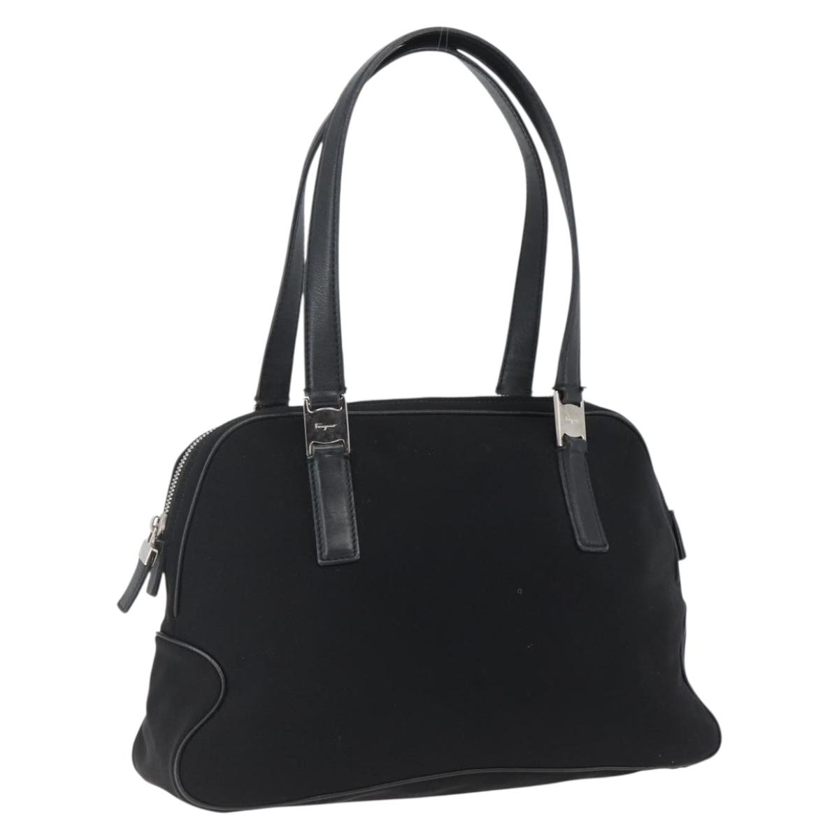 Salvatore Ferragamo Hand Bag Nylon Black Silver Auth BA10606