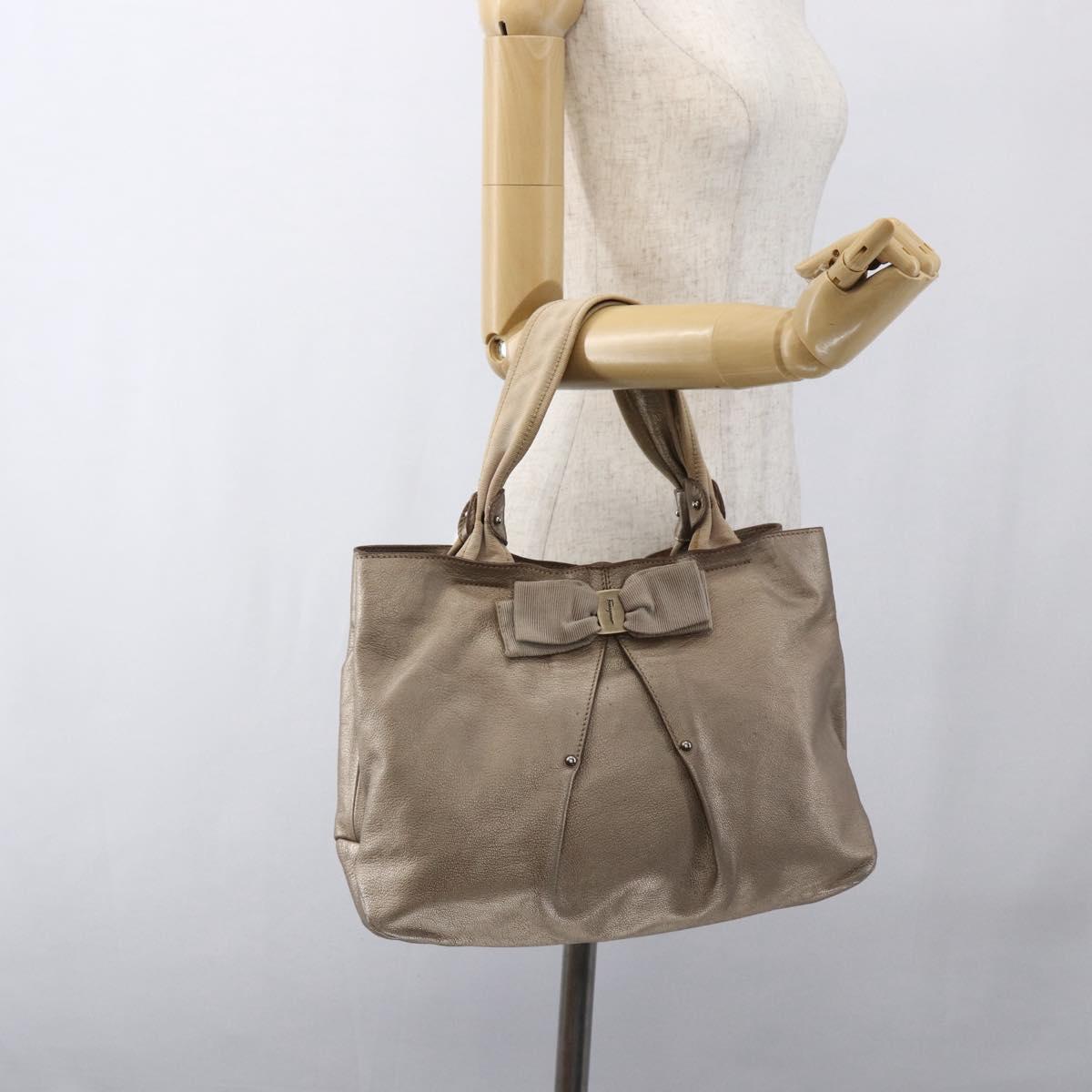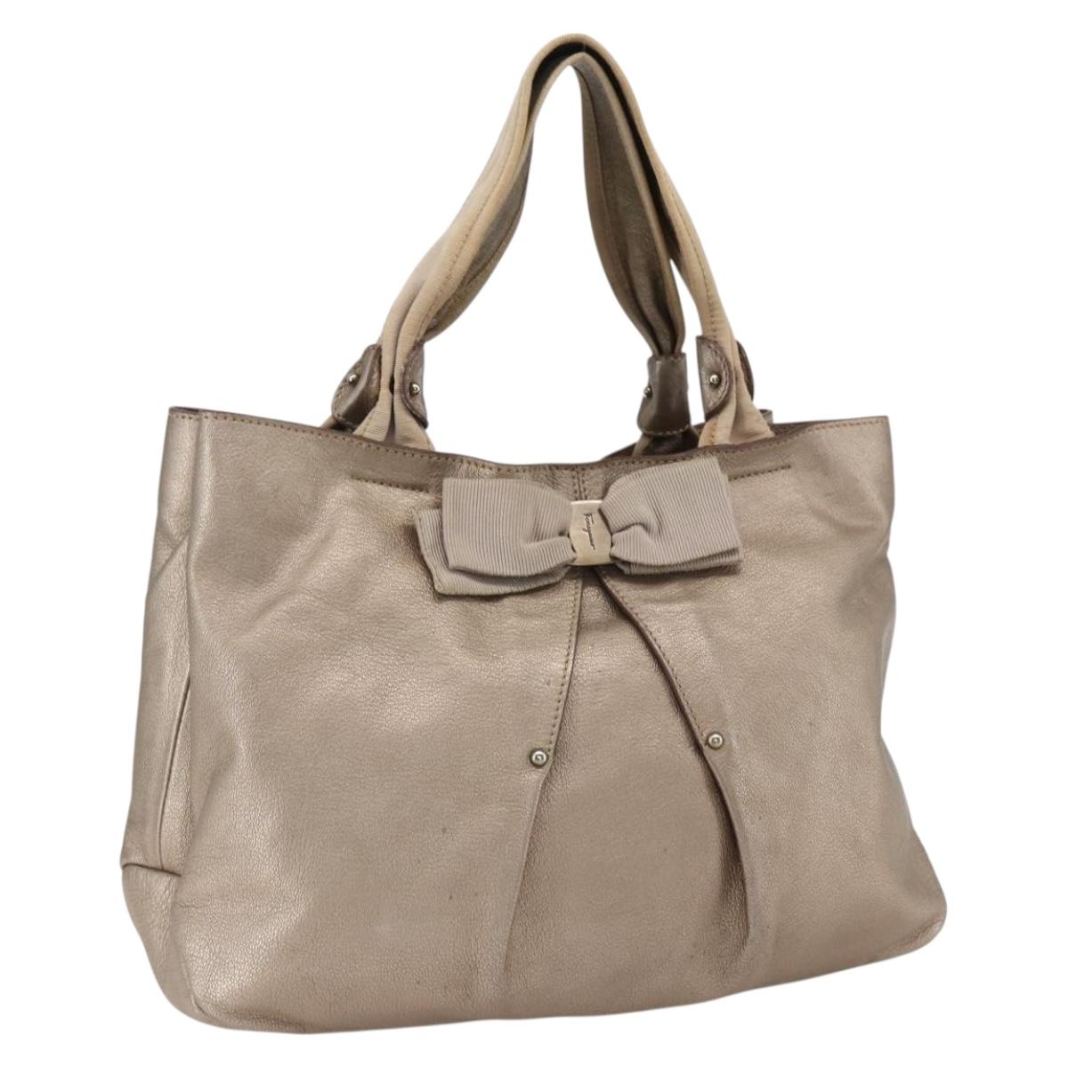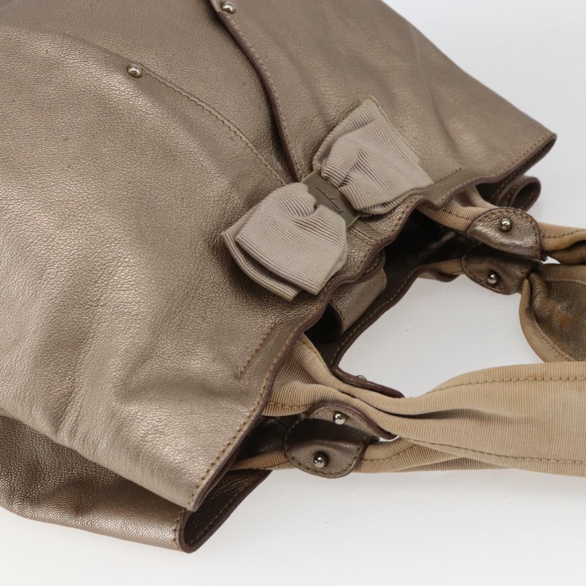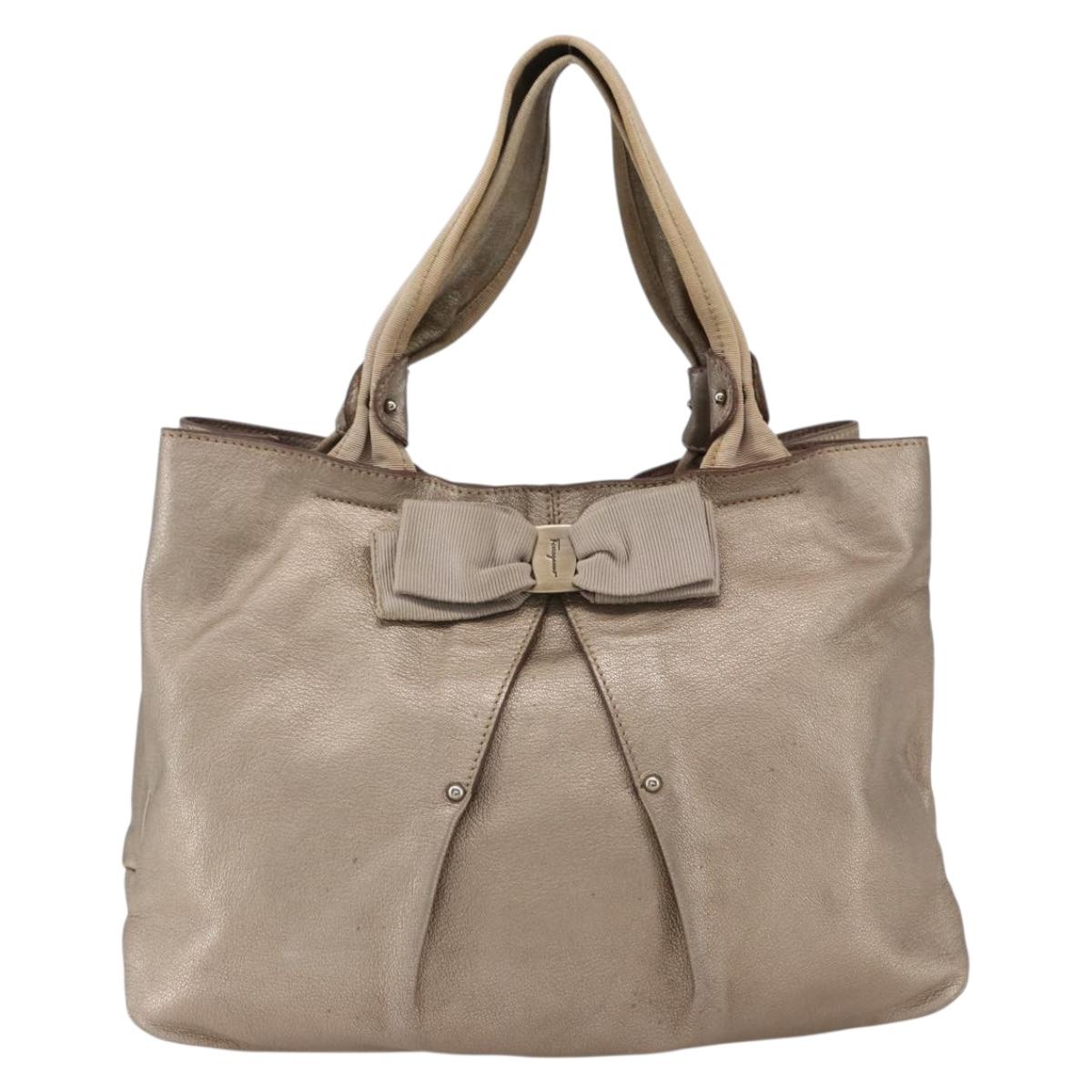 Salvatore Ferragamo Vara Ribbon Hand Bag Leather Gold Auth ka2355