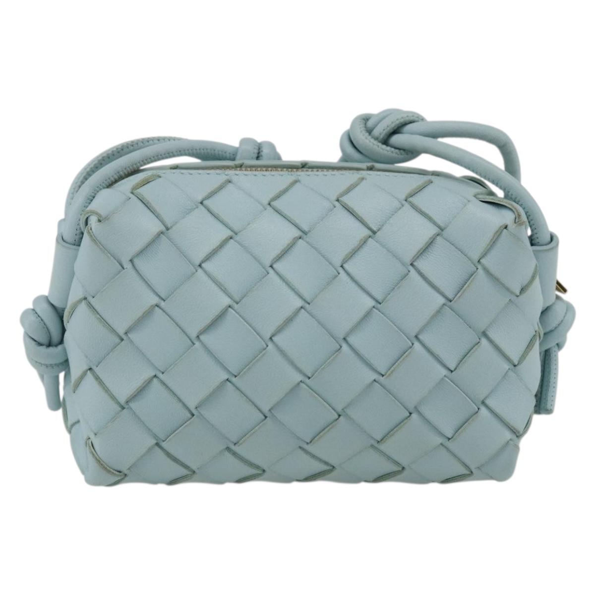 BOTTEGA VENETA INTRECCIATO Shoulder Bag Leather Light Blue Gold Auth bs32785V