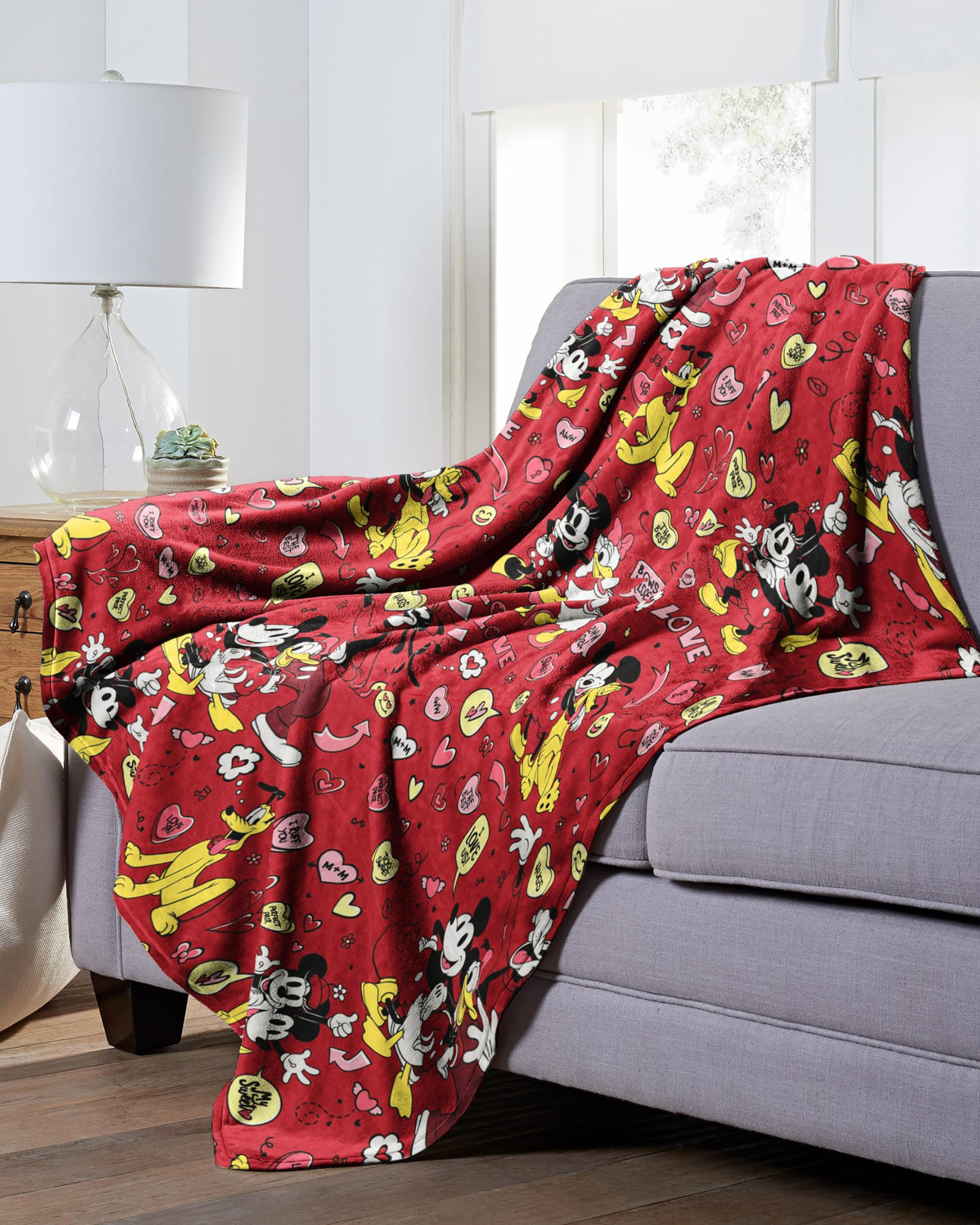 Celebrate love and warmth with the Mickey Mouse "I Love Us" Silk Touch Throw! This isn't just a blanket; it's a silky hug from Mickey and Minnie, creating the perfect cuddle companion for the season of love. Elevate your coziness with the sweet charm of Disney's iconic couple. Ready for a snuggle upgrade? Embrace the romantic vibes and the irresistible softness of Mickey and Minnie by your side!