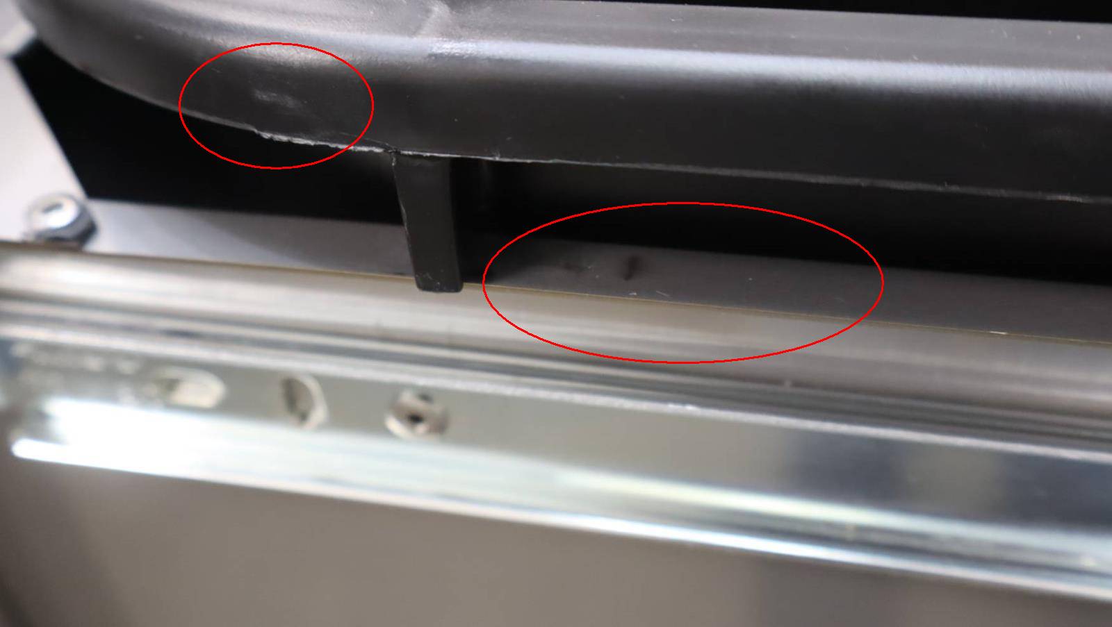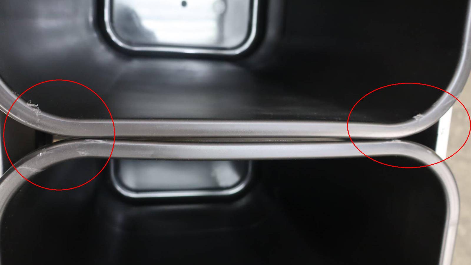 3-SCRATCHES/SCUFFS AROUND THE TOP OF THE TRASH BINS AND RAILING FOR BINS
