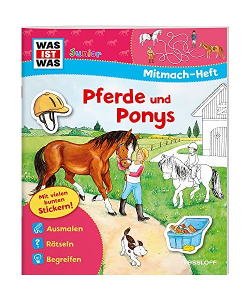 WAS IST WAS Junior Mitmach-Heft Pferde und Ponys: Spiele, Rätsel, Sticker