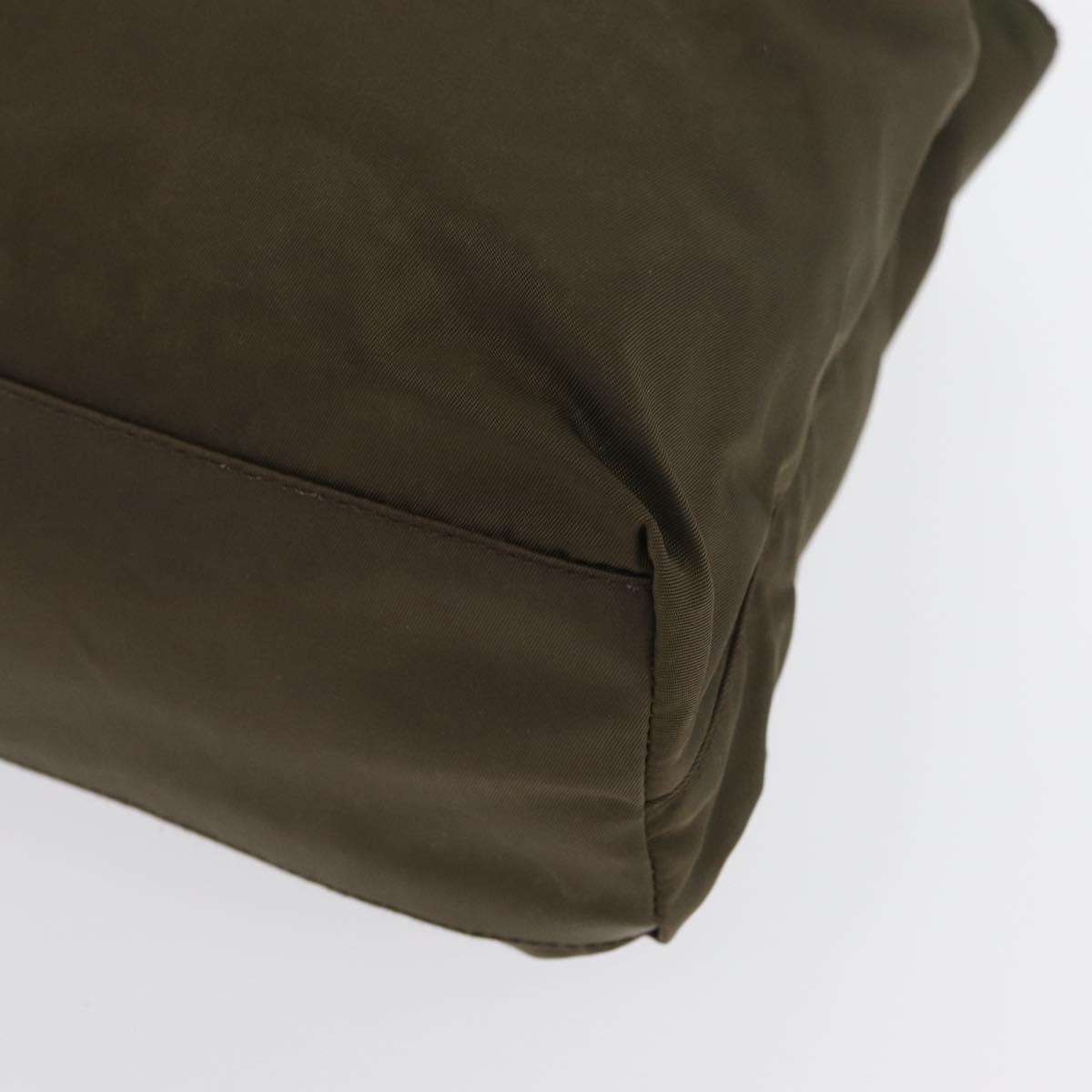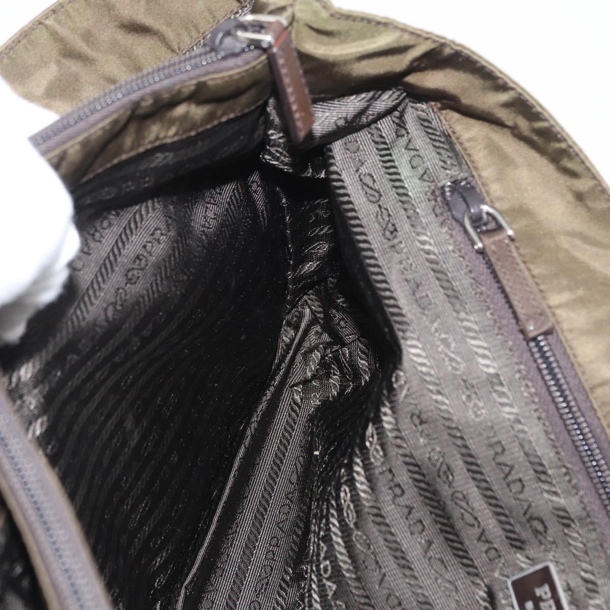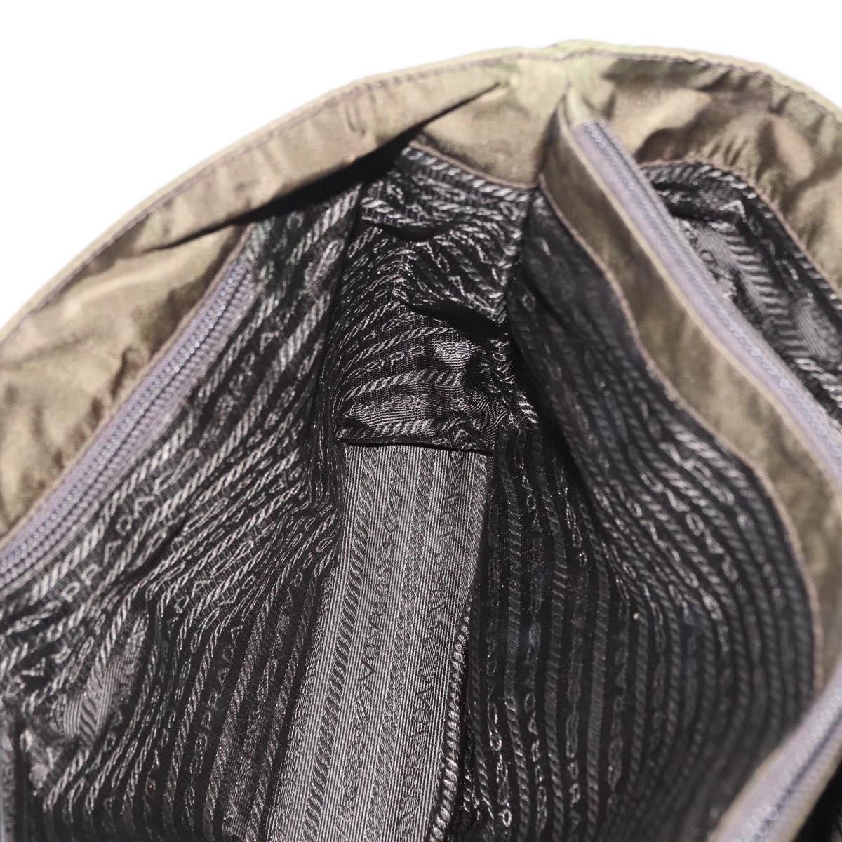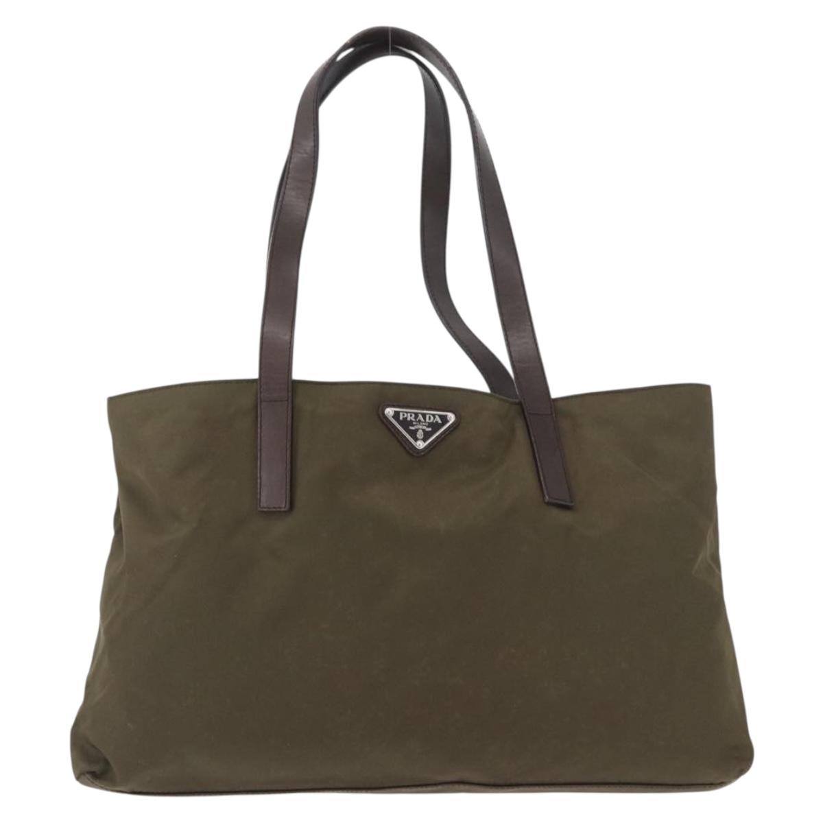 PRADA Tote Bag Nylon Khaki Silver Auth 173535