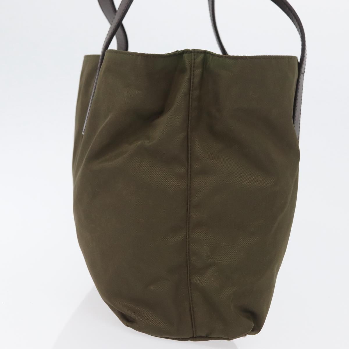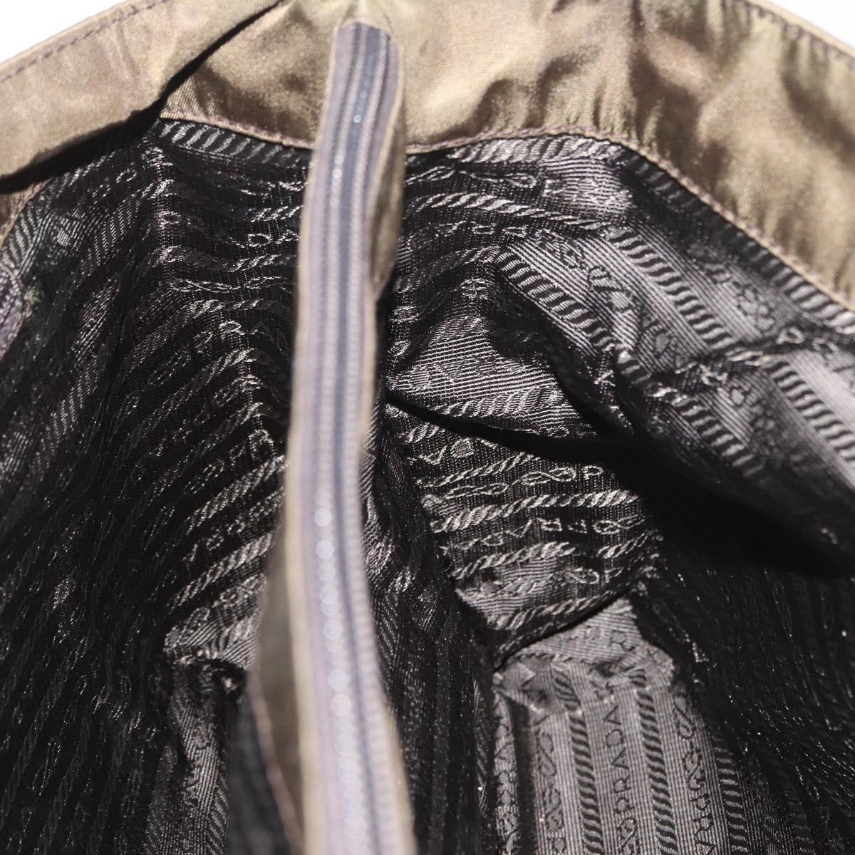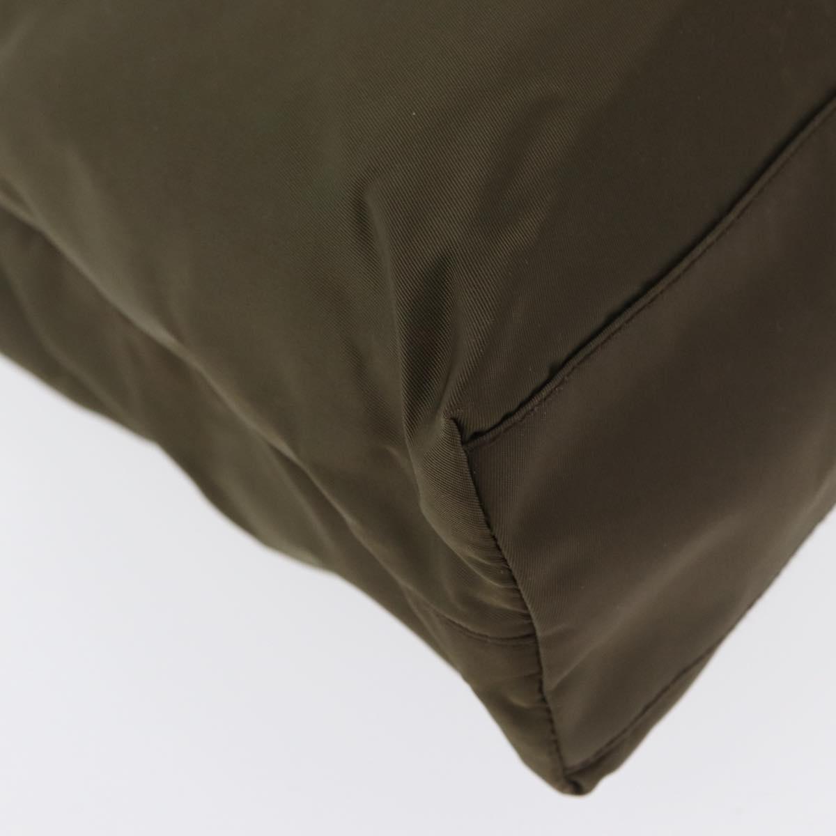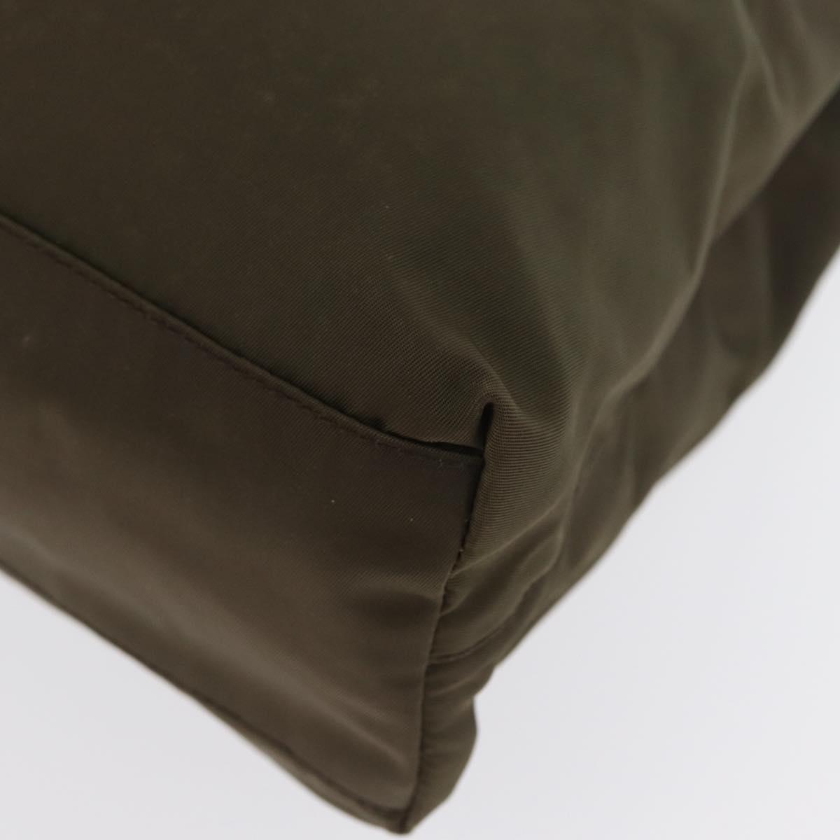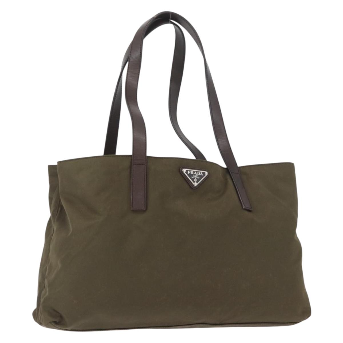 PRADA Tote Bag Nylon Khaki Silver Auth 173535
