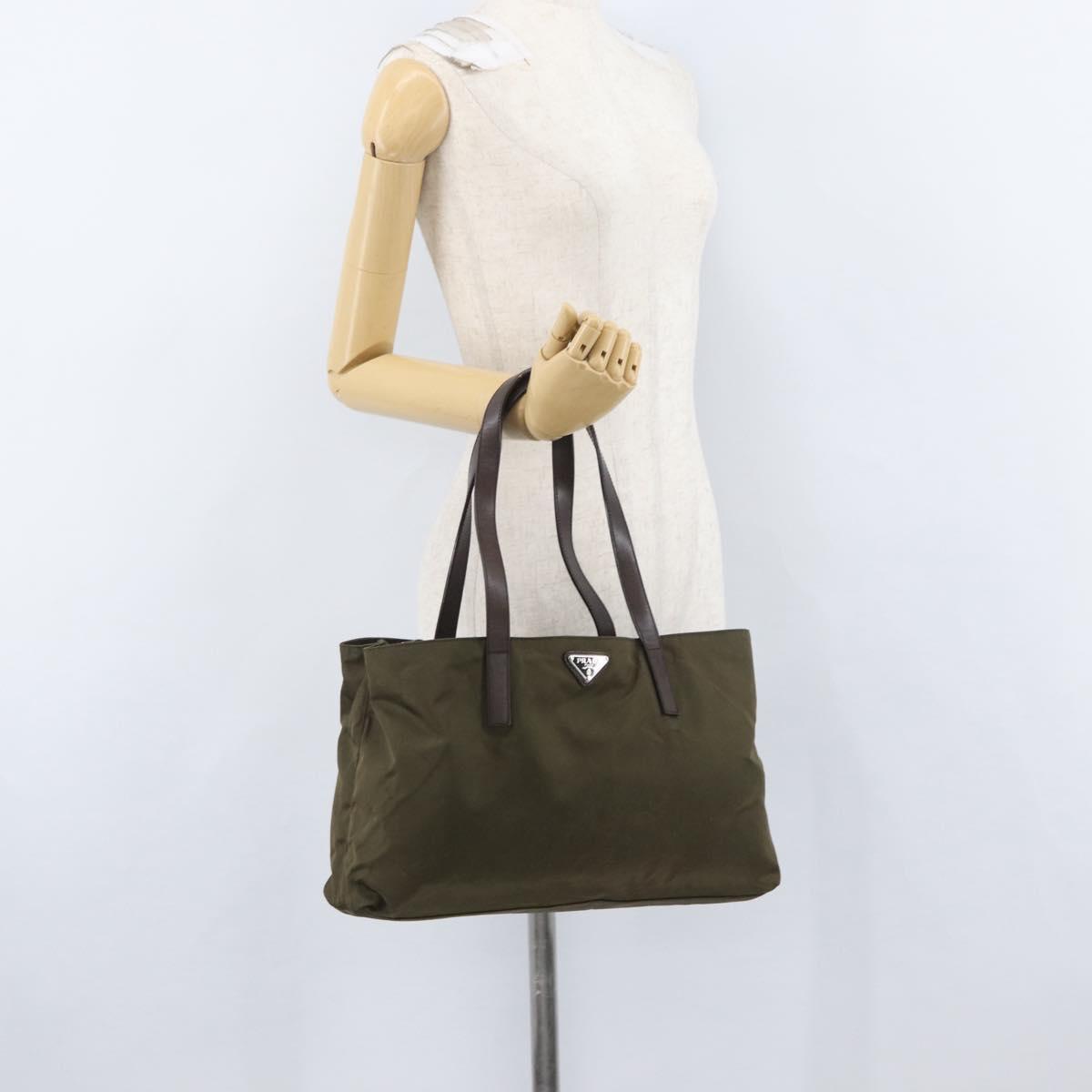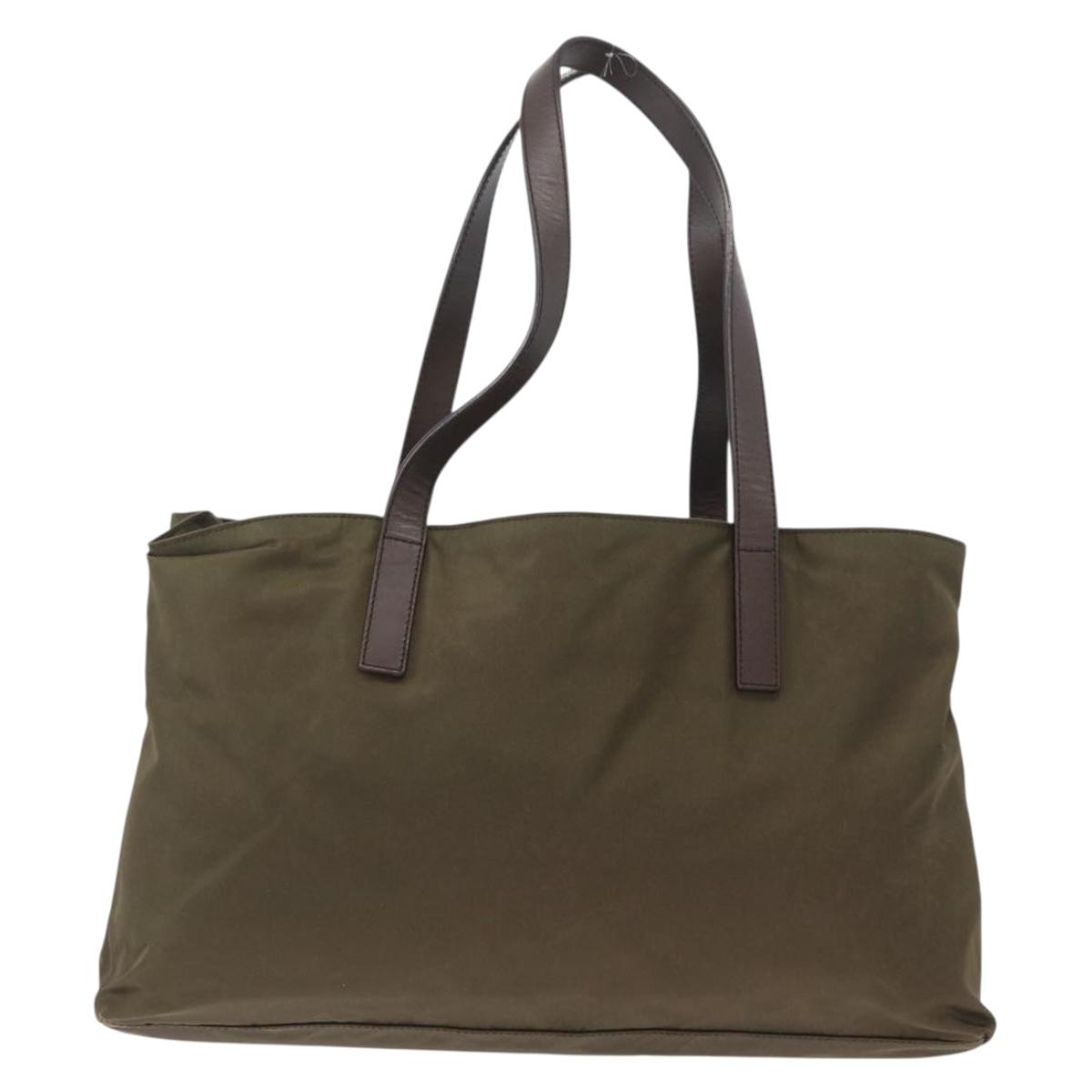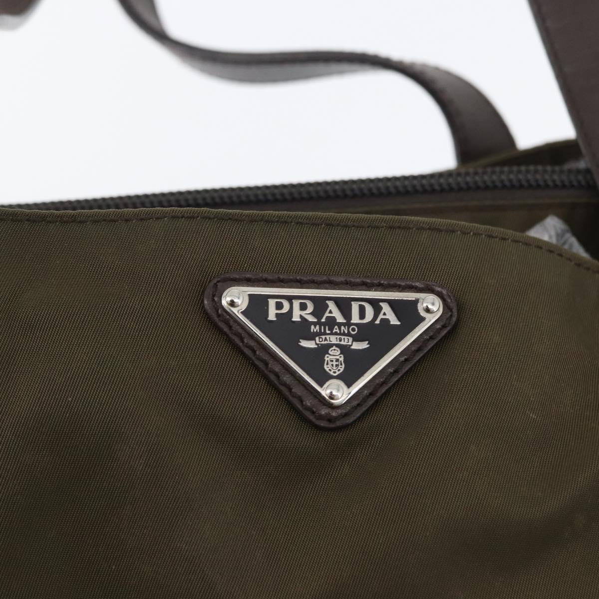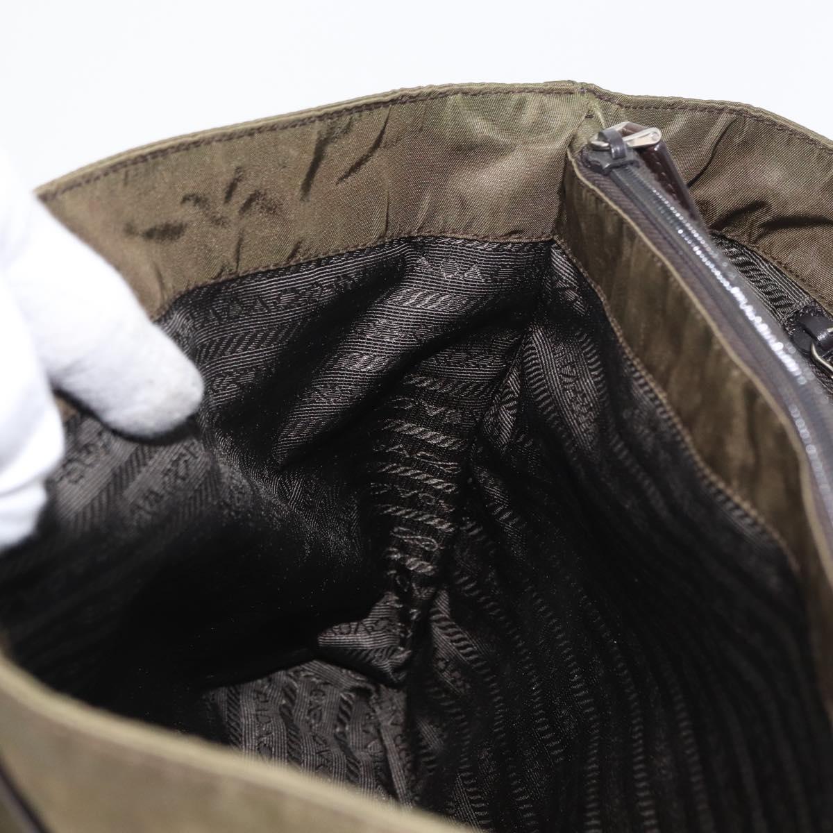 PRADA Tote Bag Nylon Khaki Silver Auth 173535