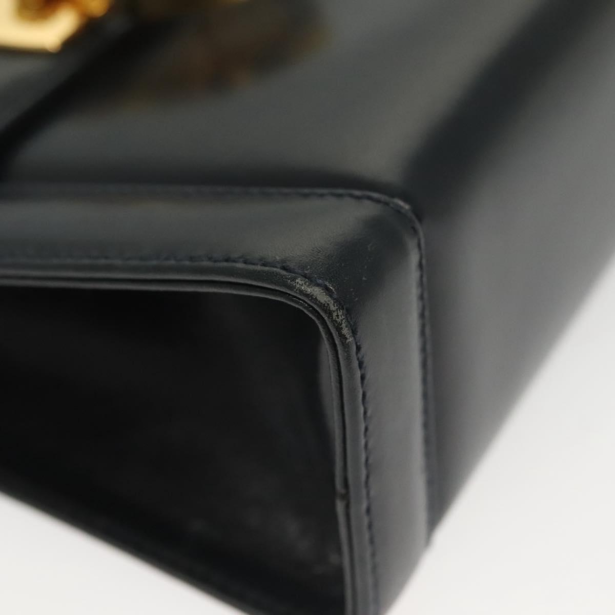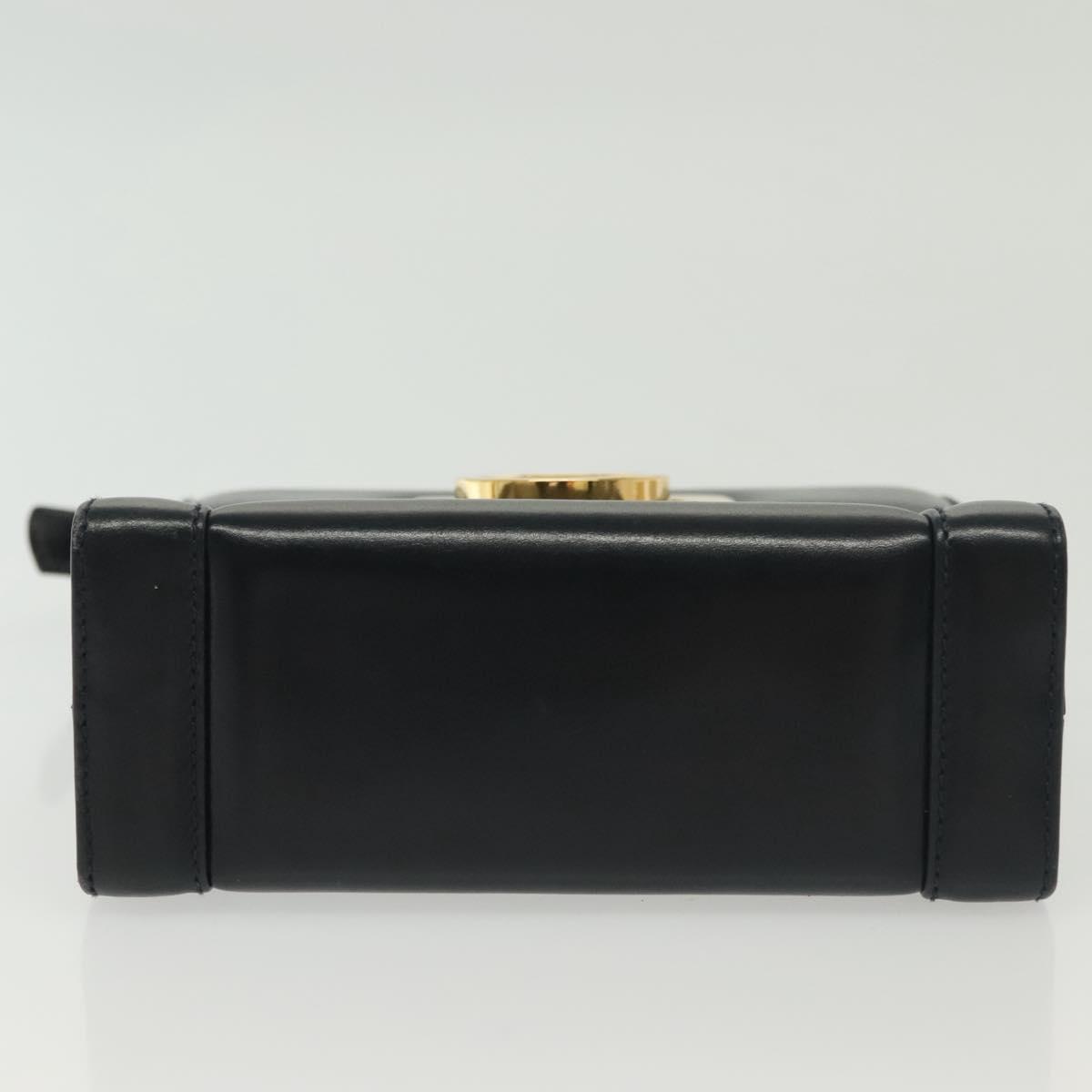 Salvatore Ferragamo Gancini Hand Bag Leather Navy Gold Auth 142283A
