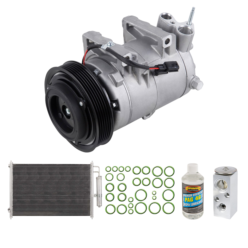 This 5 piece Complete AC Kit includes a brand new AC compressor, condenser with built in accumulator/drier, expansion device, a bottle of AC compressor oil and a pack of the correct o-rings for your system to prevent leaks. This kit is designed to include all of the right parts to make the repair process easier and save you money. The accumulator/drier used in your AC system is built into the condenser, so to make things easier this kit includes a new condenser with built in accumulator/drier.
