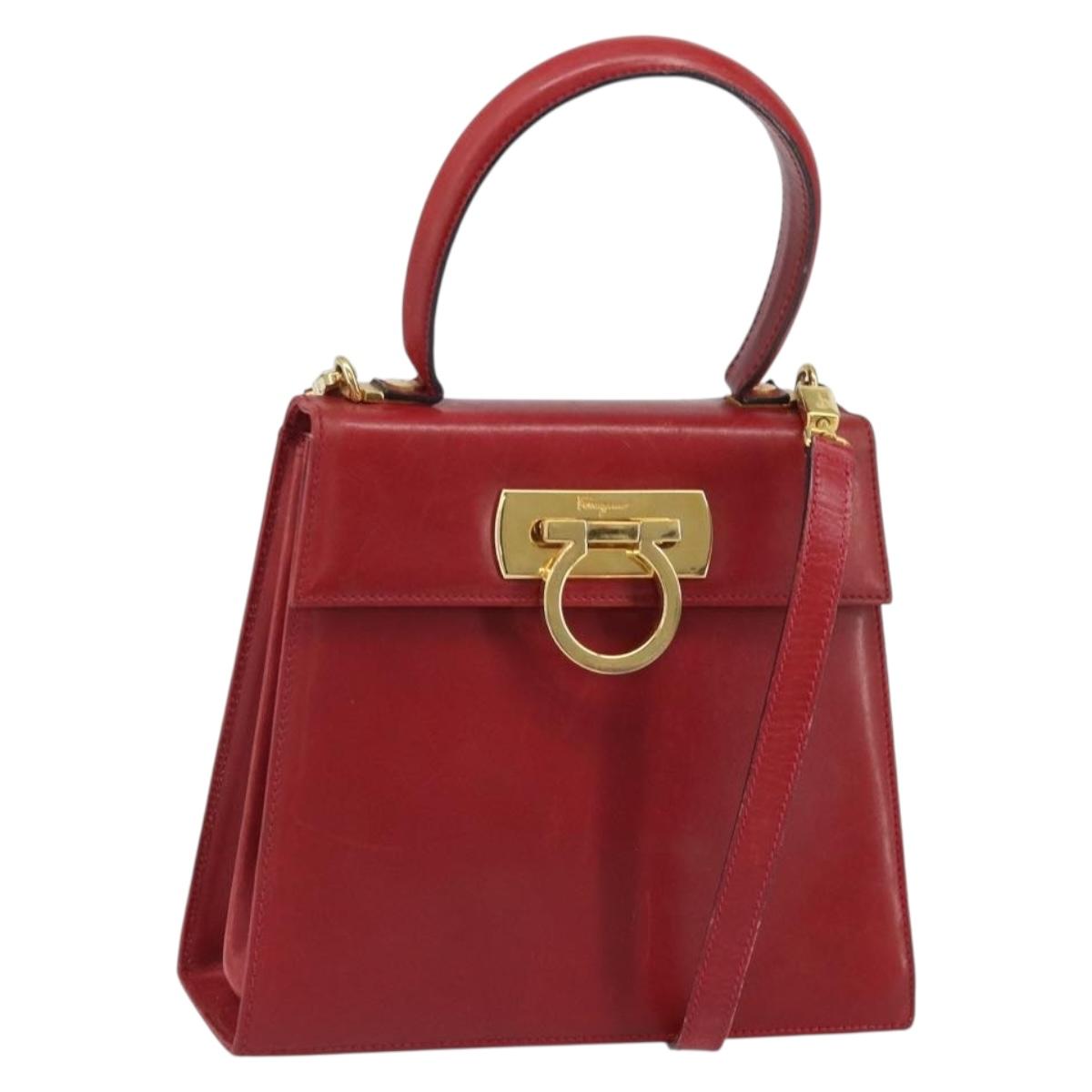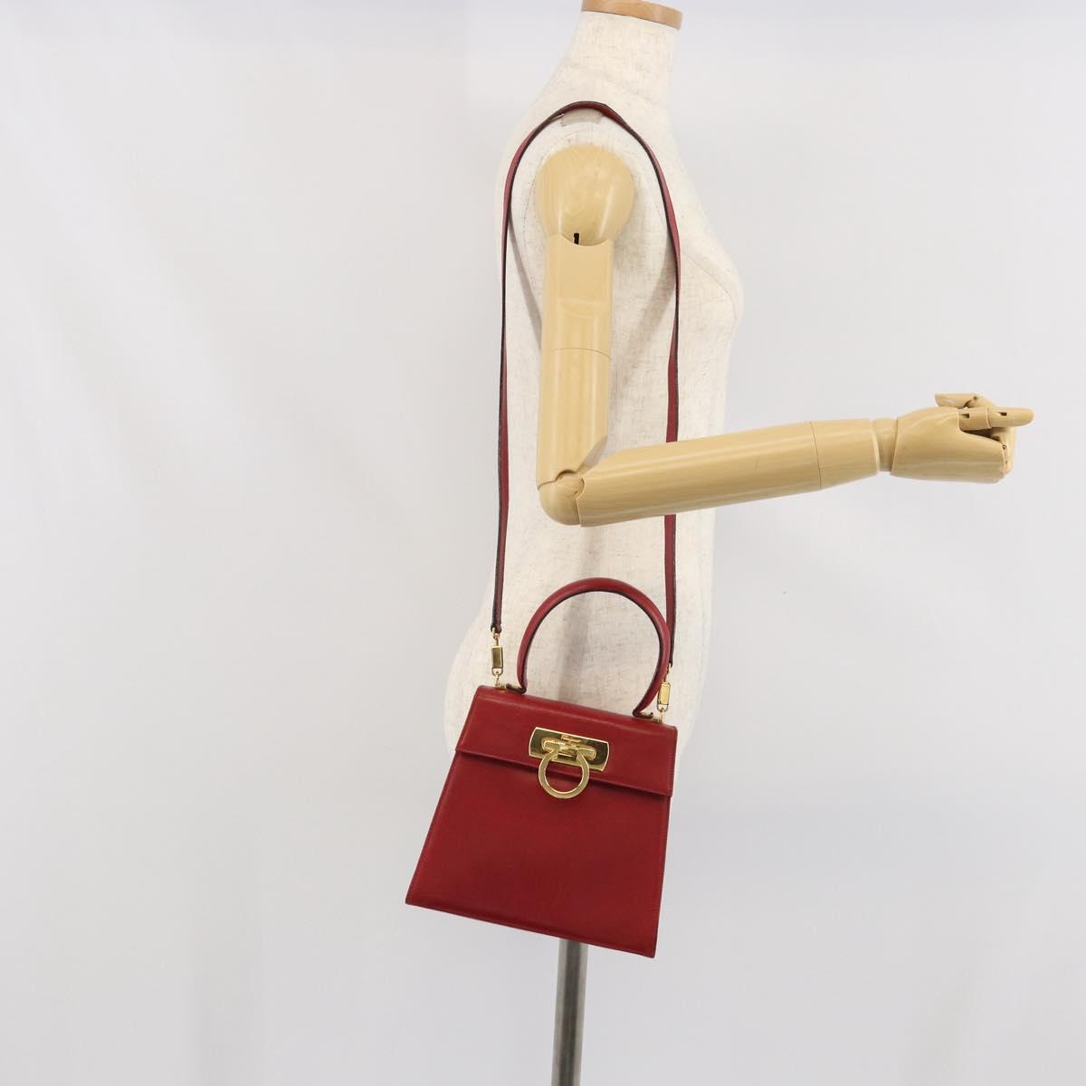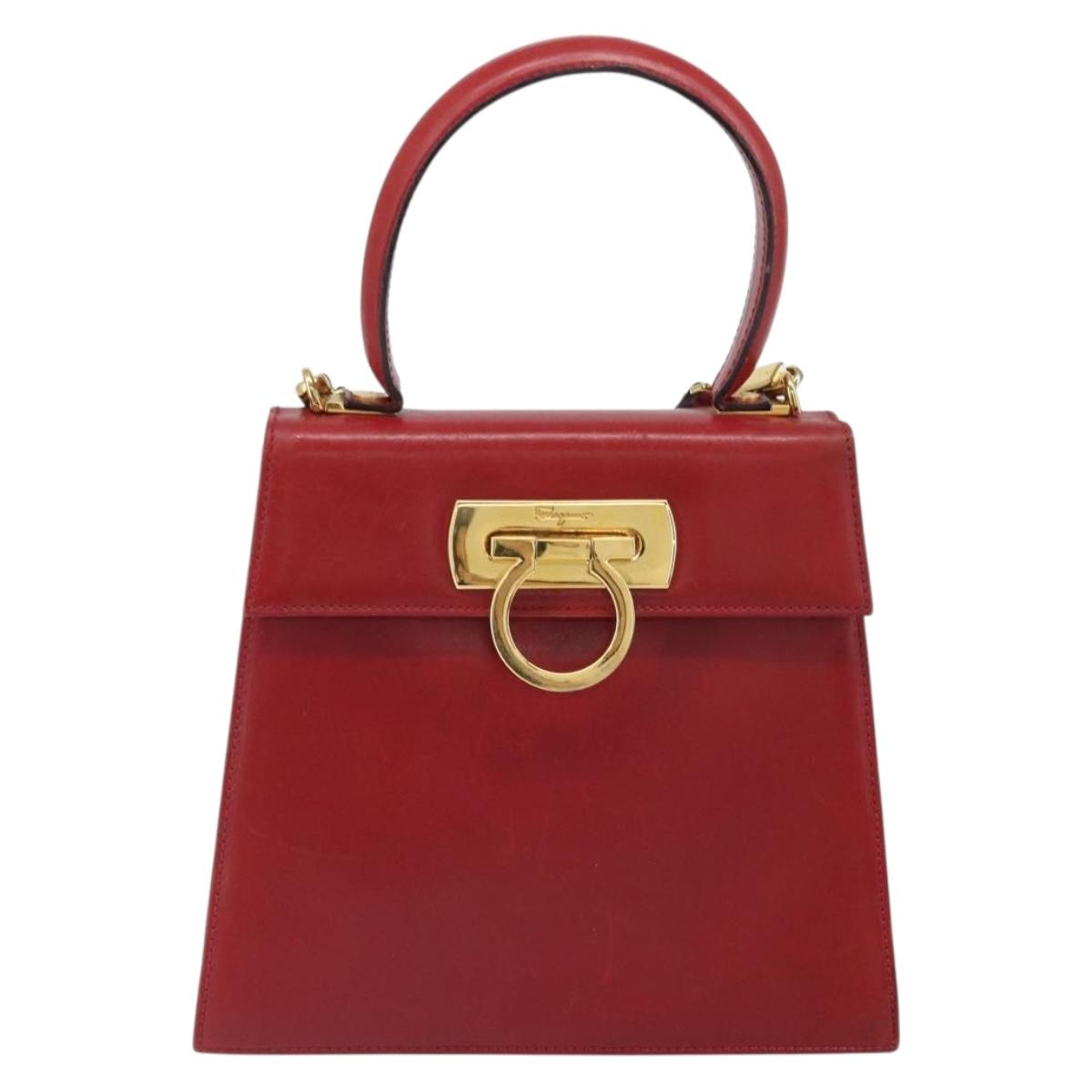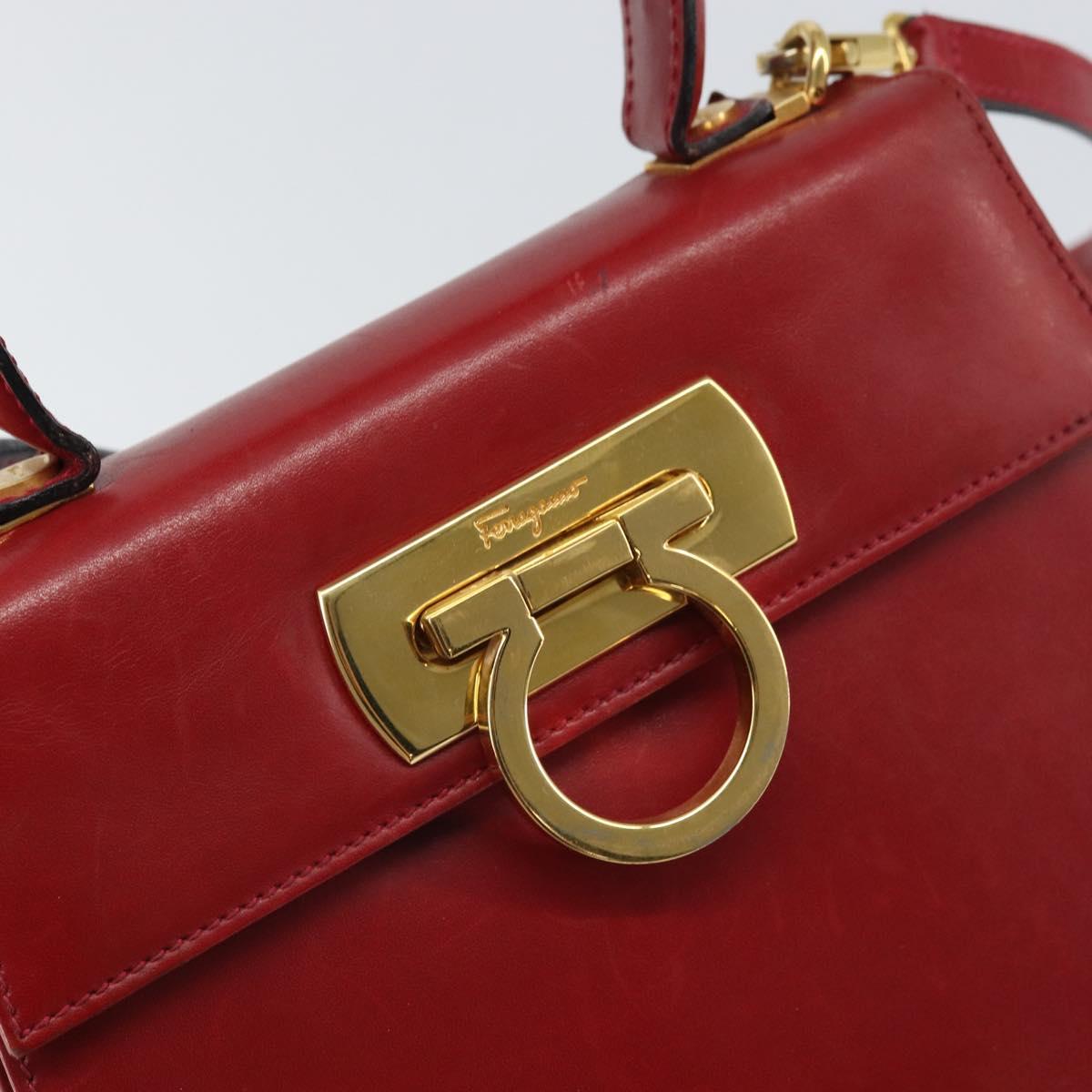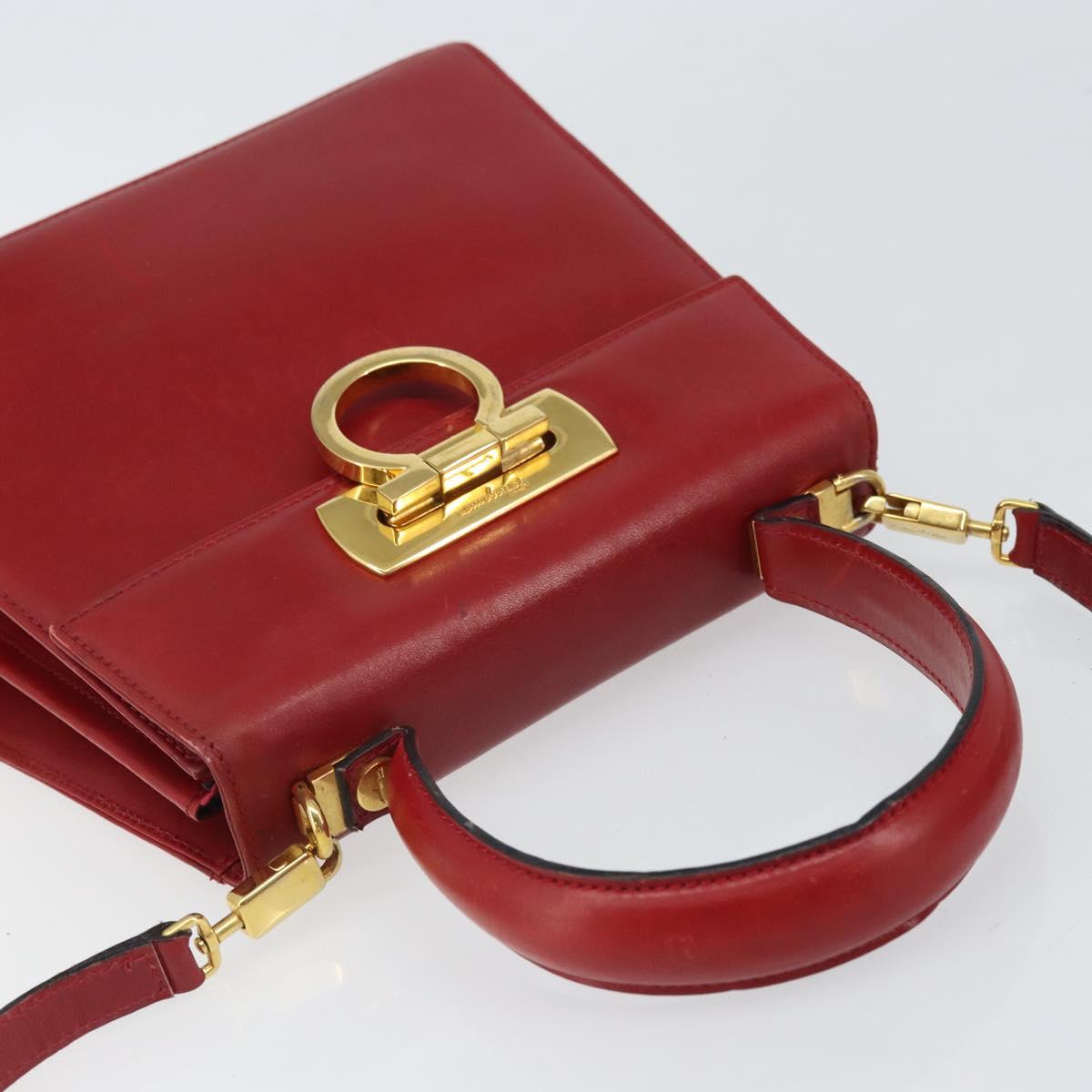 Salvatore Ferragamo Gancini Hand Bag Leather 2way Red Gold Auth bs33142A