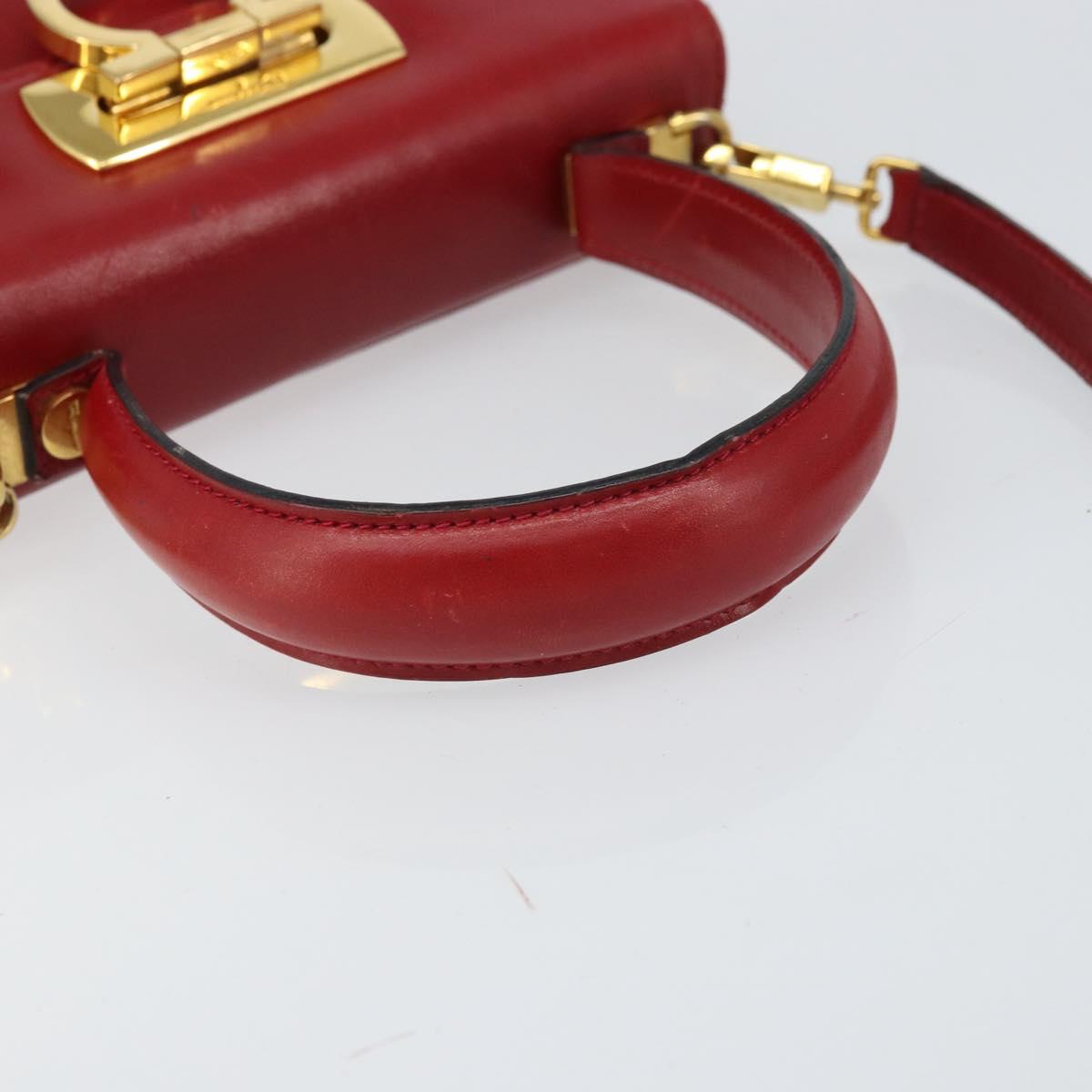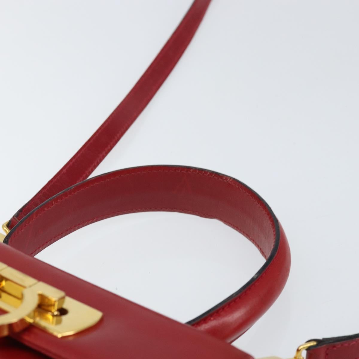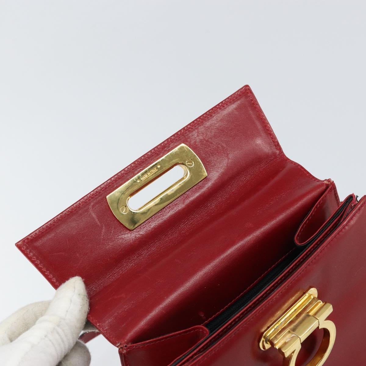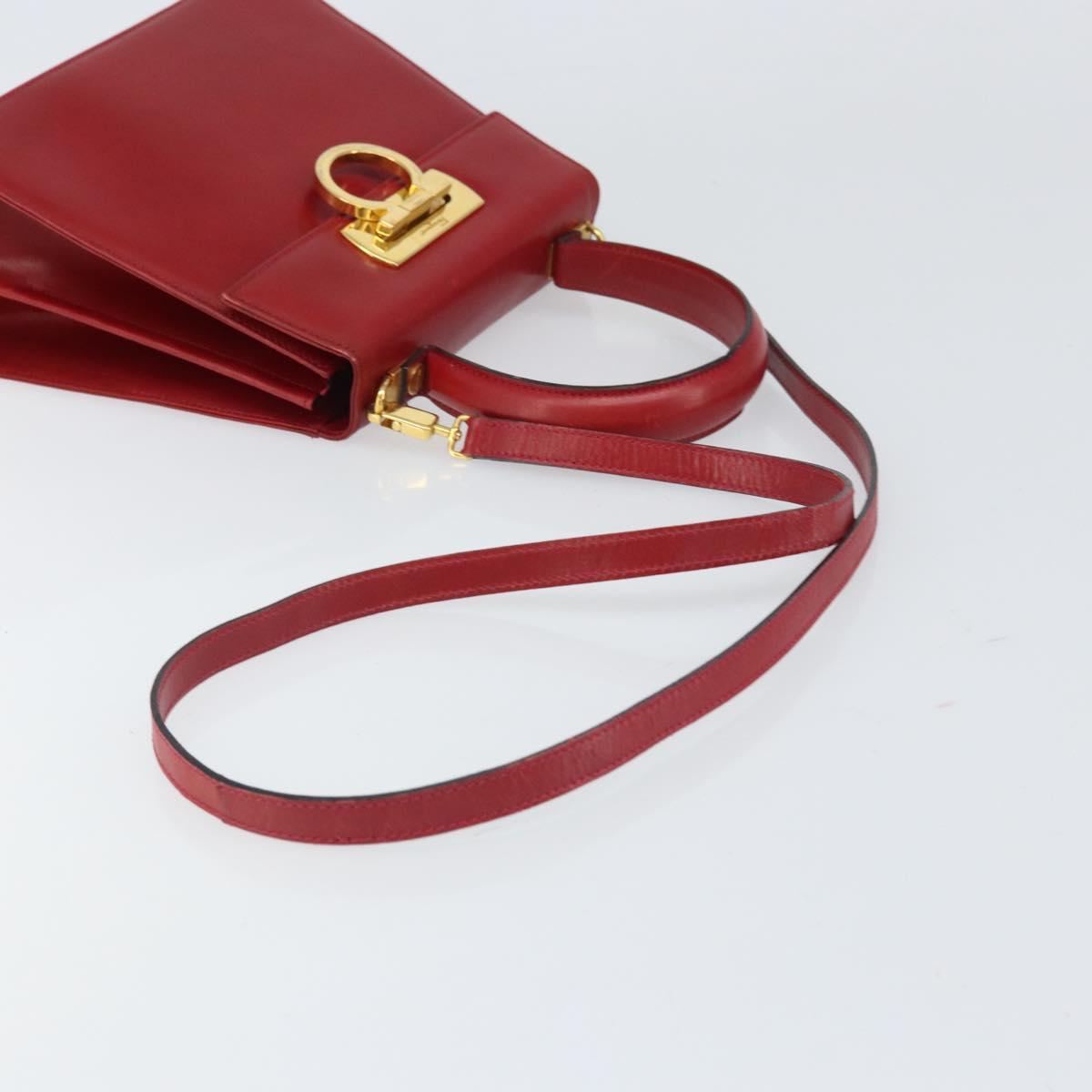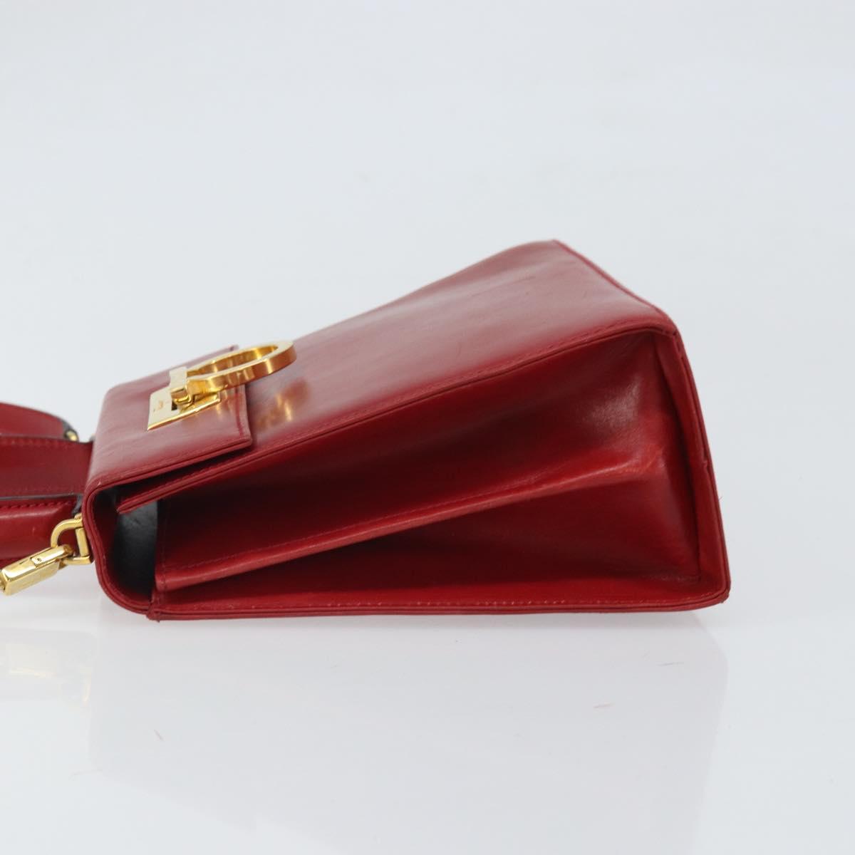 Salvatore Ferragamo Gancini Hand Bag Leather 2way Red Gold Auth bs33142A