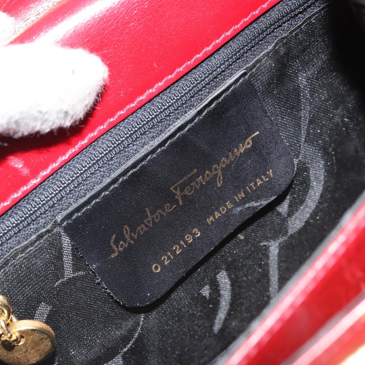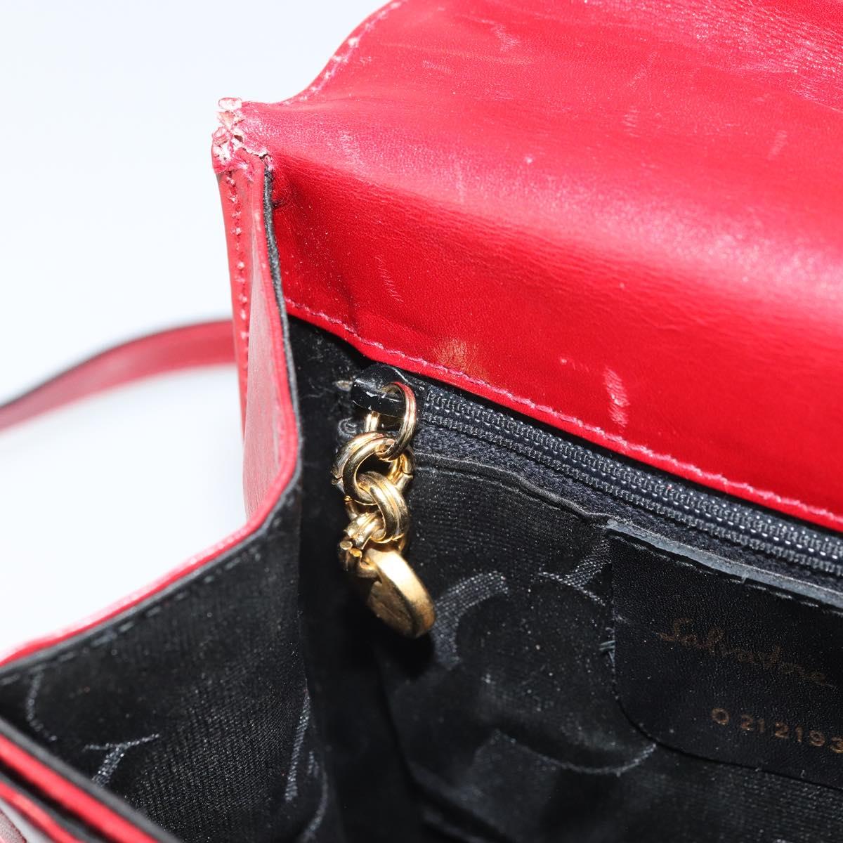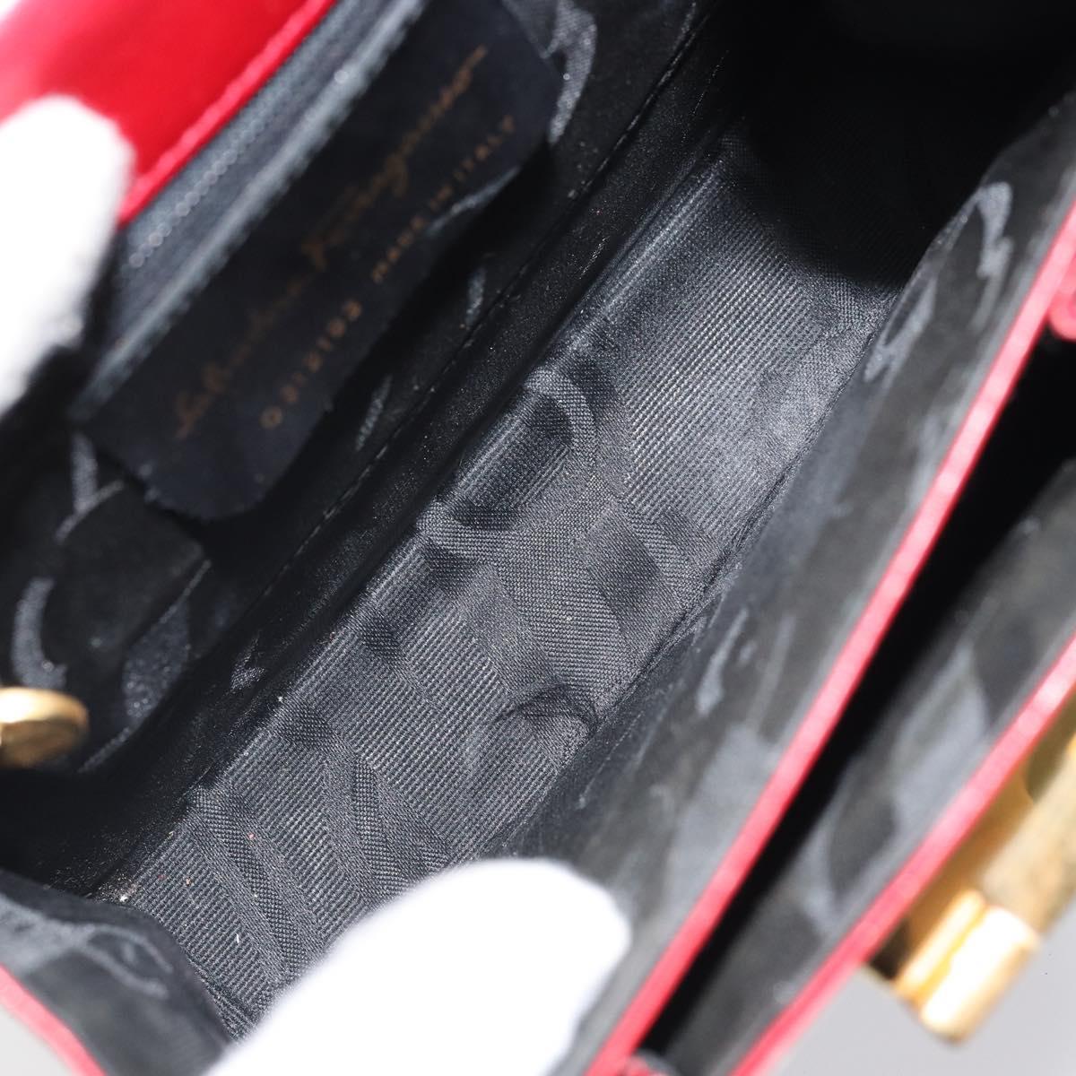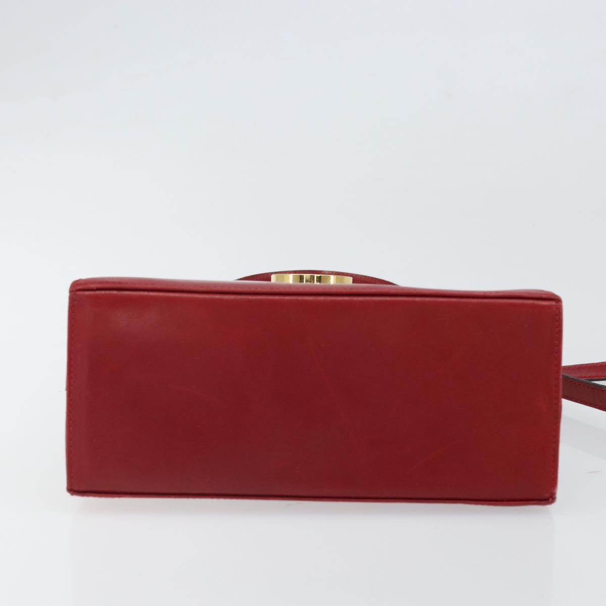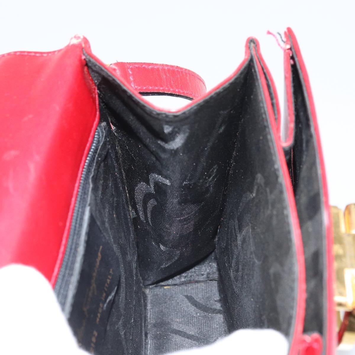 Salvatore Ferragamo Gancini Hand Bag Leather 2way Red Gold Auth bs33142A