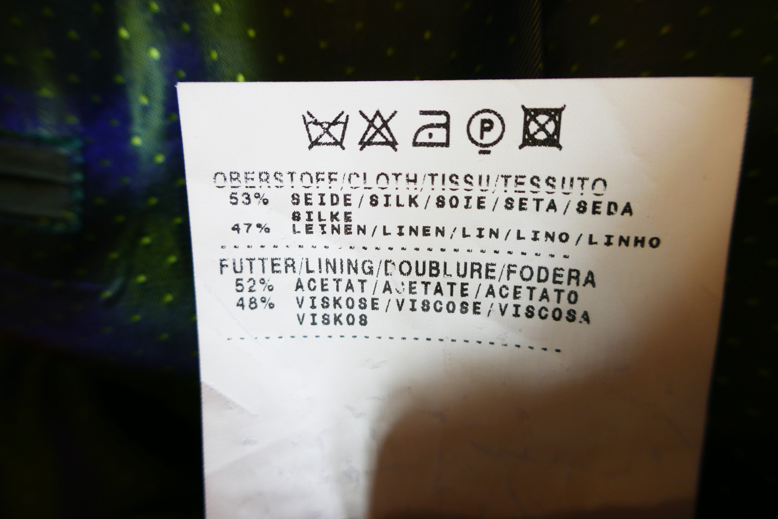 Material: 53% Seide + 47% Leinen. Feinstes Material, leichter Stoff und sehr angenehm zu tragen!