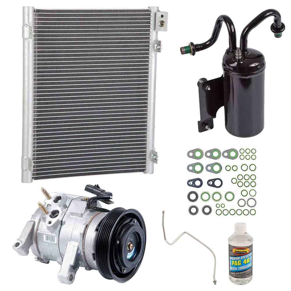This Premium Installers AC Kit includes a new OEM AC compressor, condenser, accumulator/drier, expansion device, a bottle of AC compressor oil and a pack of the correct o-rings for your system to prevent leaks. This kit is designed to include all of the right parts to make the repair process easier and save you money.