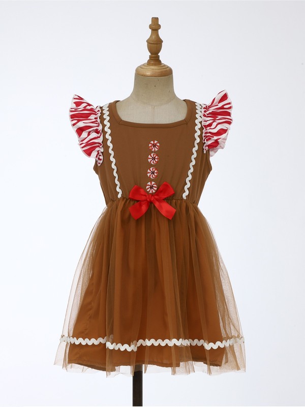 Kids Girls Dress Festival Costume Holiday Skirt Flying Sleeve Square Neck Party