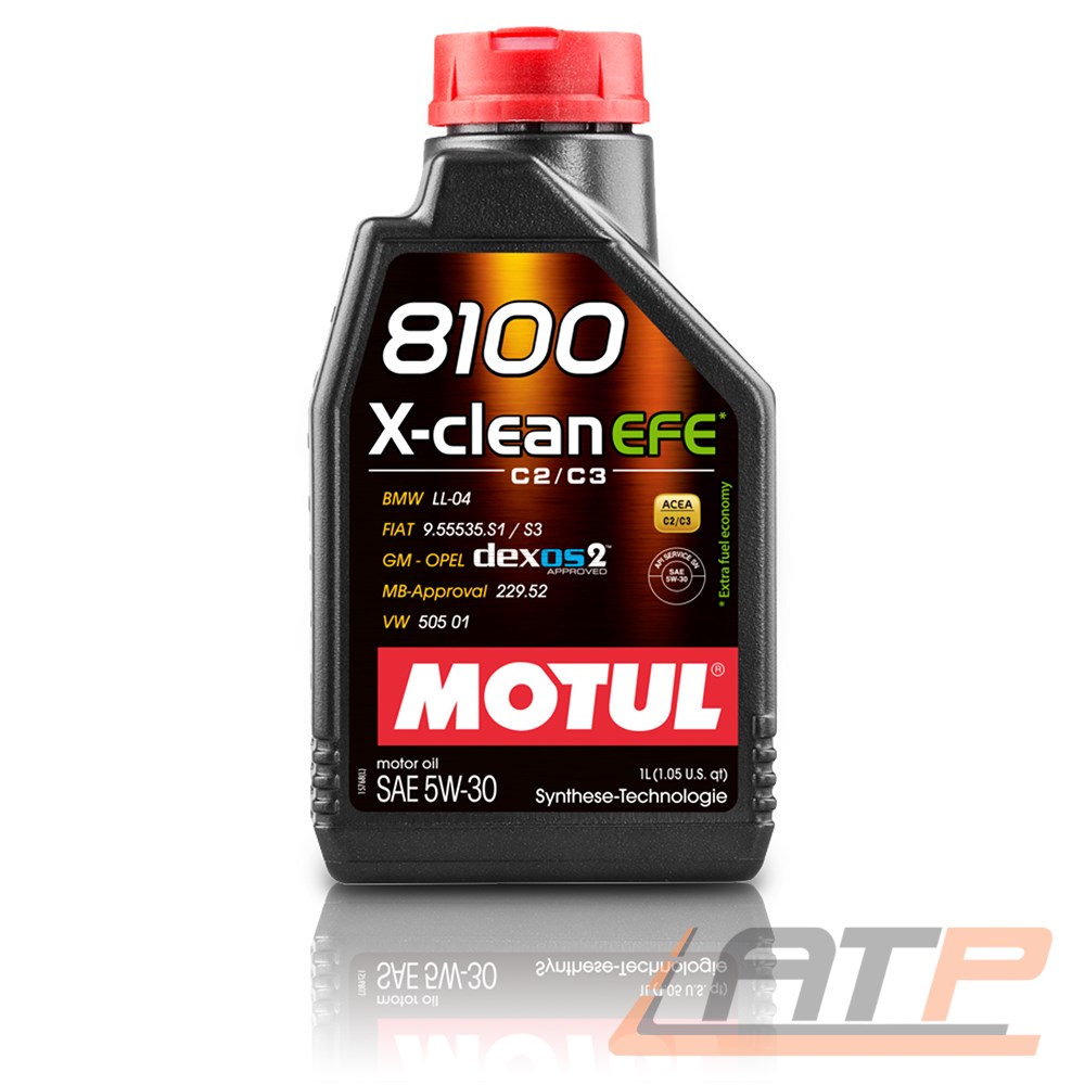 MOTUL 8100 X-clean EFE 5W30 ist ein Hochleistungsmotorenöl - Mid SAPS ACEA C2 & C3 speziell ausgelegt für reduzierten Kraftstoffverbrauch (EFE – Extra Fuel Economy) und maximalen Verschleißschutz in modernsten EURO-4/-5 und EURO-6 Motoren. Empfohlen in Fahrzeugen, wo laut Hersteller ein Motorenöl mit geringem Schwefel- (0,3%), Phosphor- (0,07 – 0,09%) und Sulfatascheanteil (0,8%) nach ACEA C2 oder C3 vorgeschrieben ist.