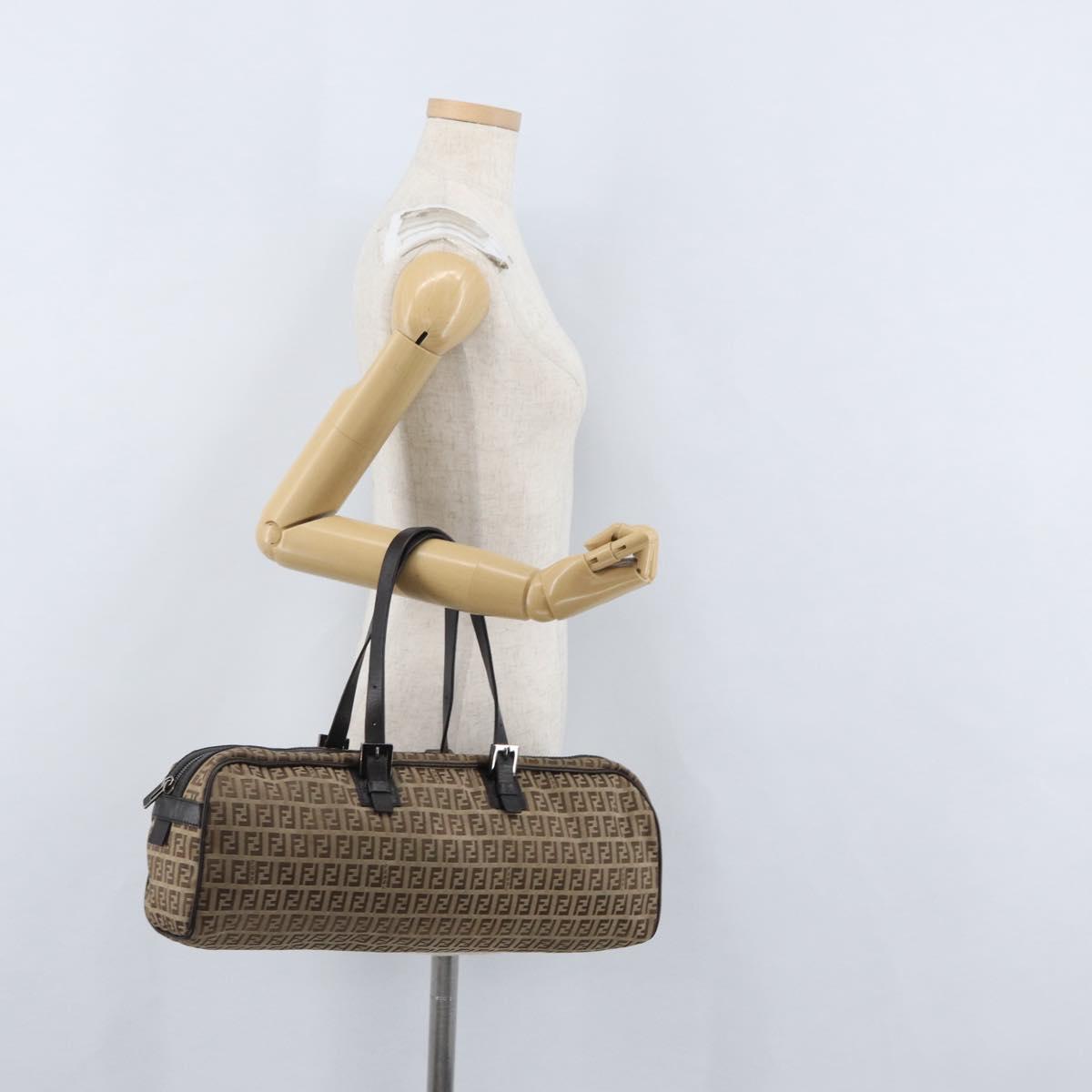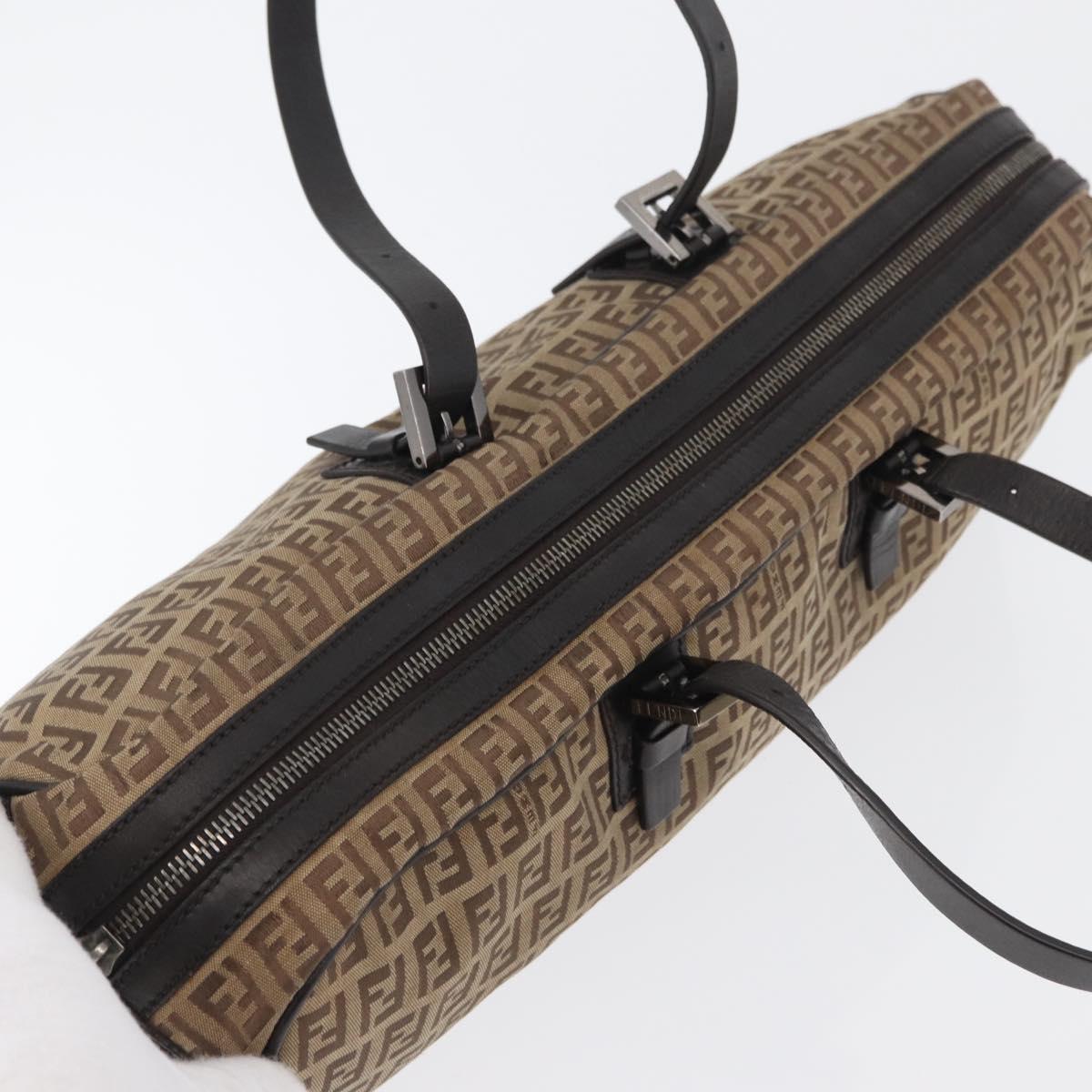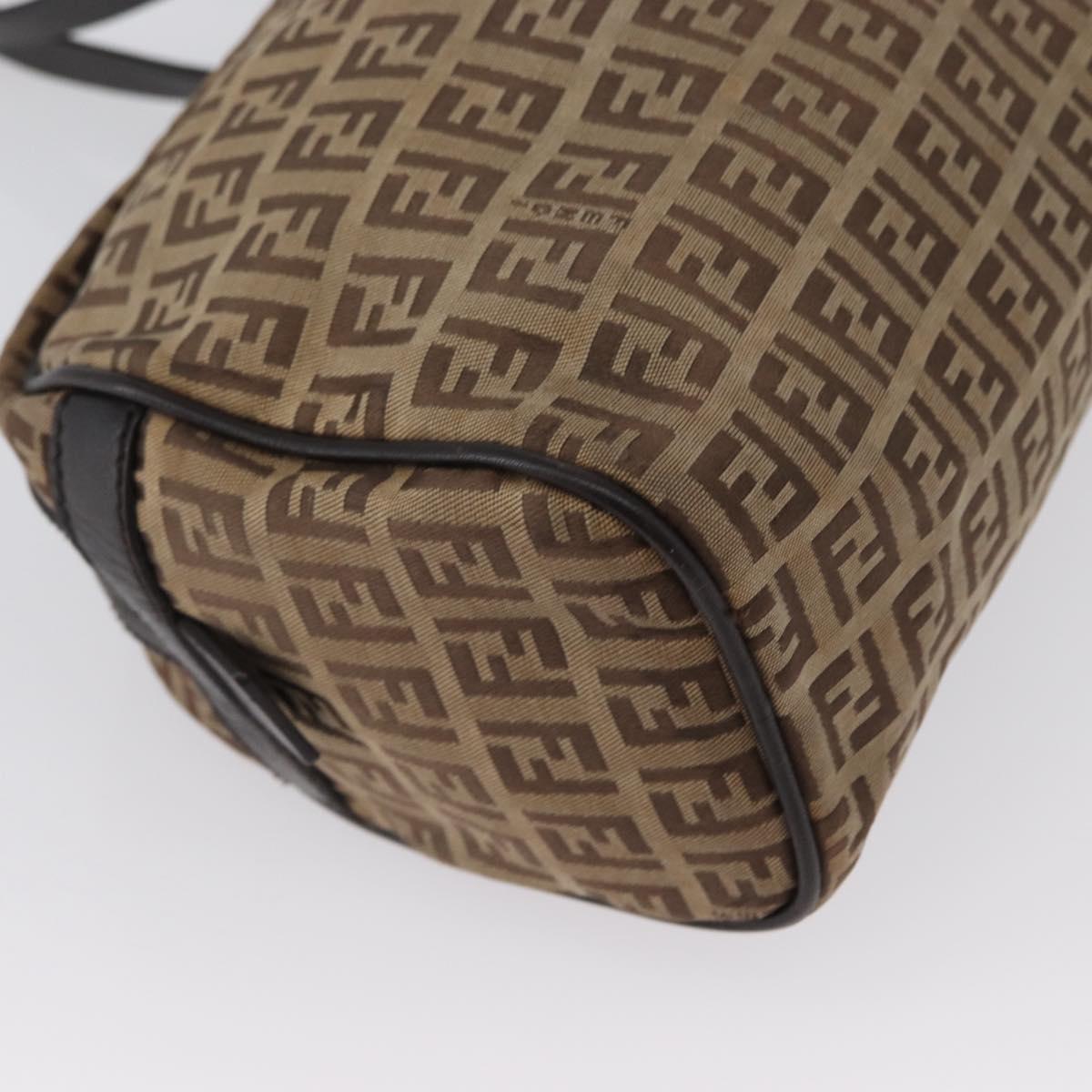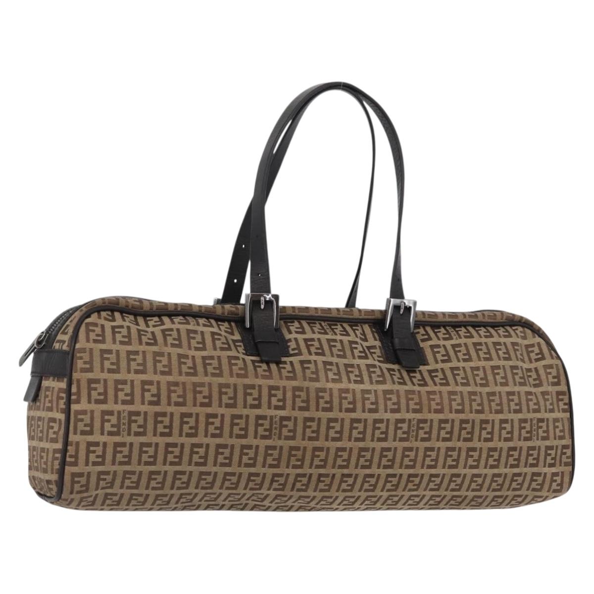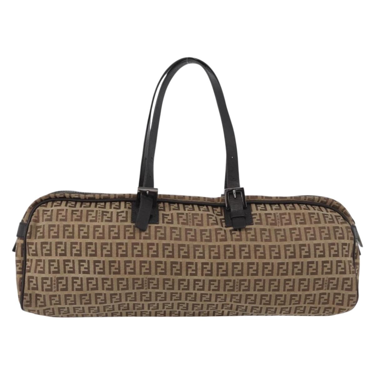 FENDI Zucchino Canvas Shoulder Bag Beige Auth 165504